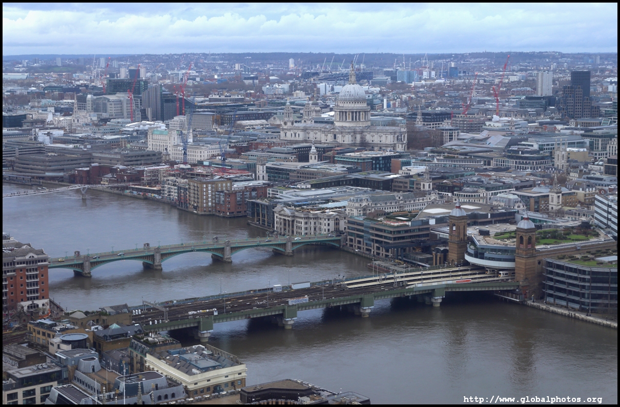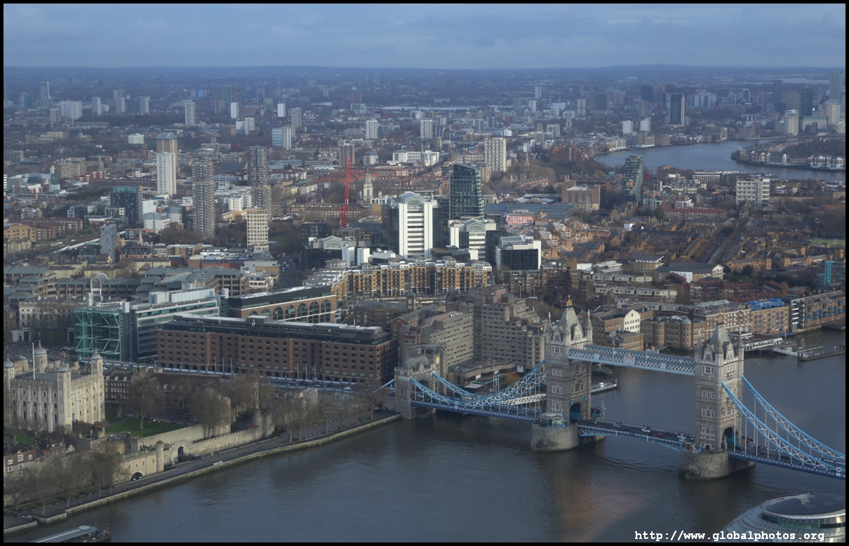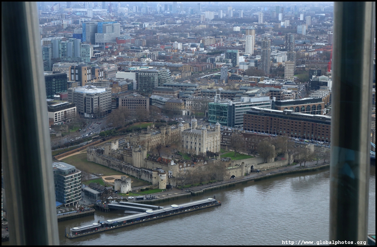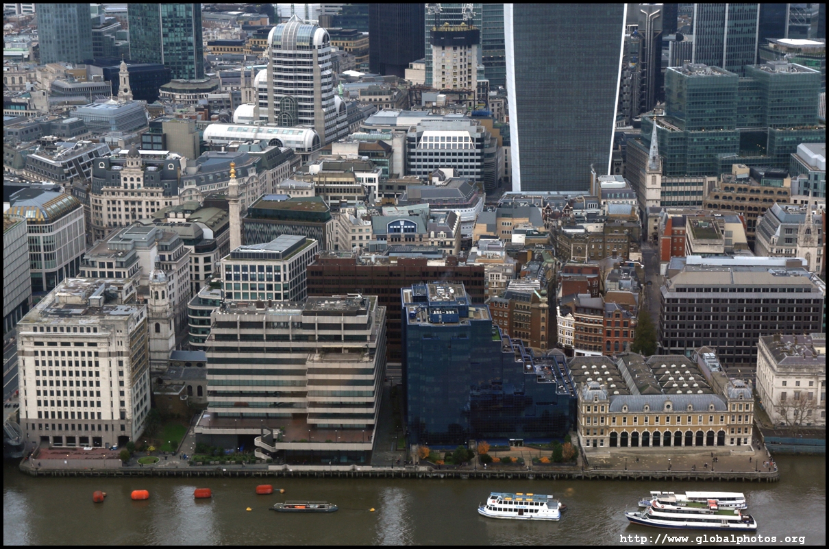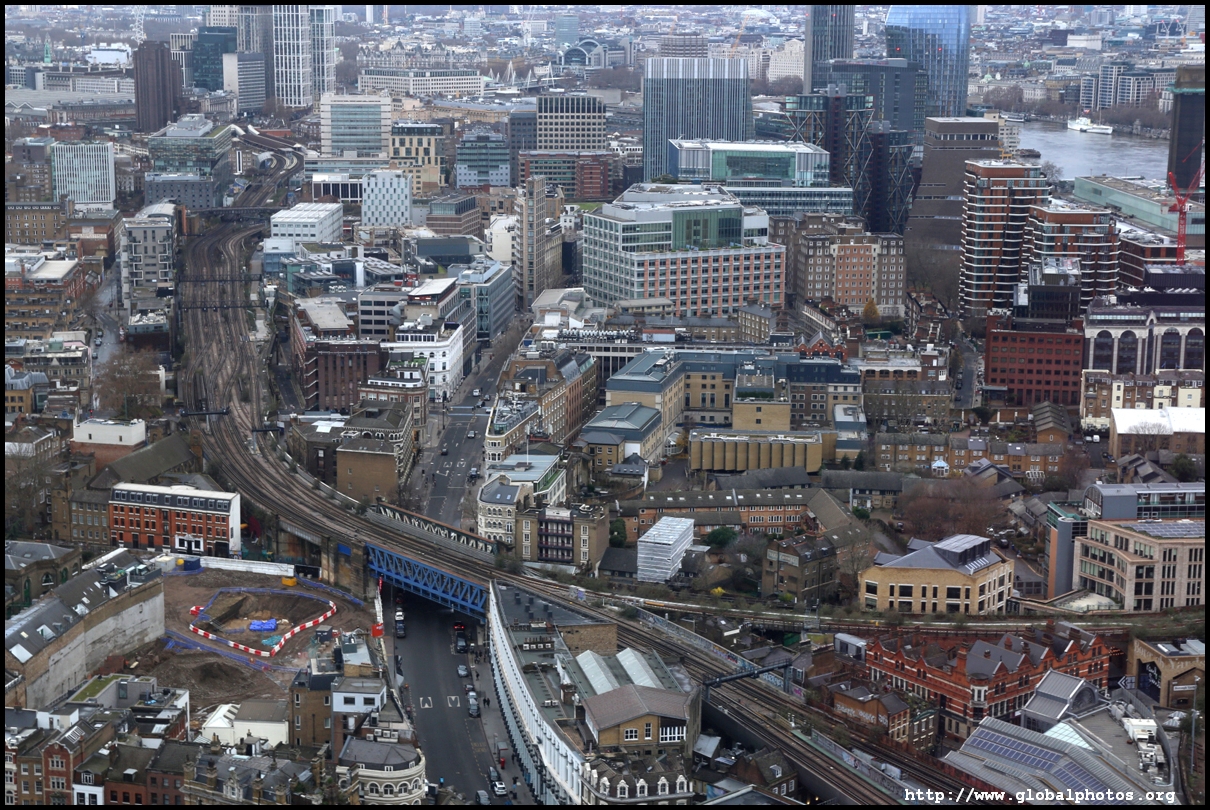 The Shard is located on top of London Bridge station and opened in 2012. Funded by the State of Qatar, Renzo Piano designed the architecture with inspiration from church spires and ship masts.The building has multiple uses, including 26 floors of offices, 3 floors of restaurants, 19 floors of hotel, 13 floors of residences, and London's highest observation deck on the 72th floor. The Shangri-La Hotel occupies the middle section from the 34th to 52nd floors with 202 rooms and several restaurants. I picked the highest one, Gong, which serves Japanese cuisine and is the highest hotel bar in Western Europe. The restaurant's tables face The City and east towards Canary Wharf. At these heights, views in any direction are great.