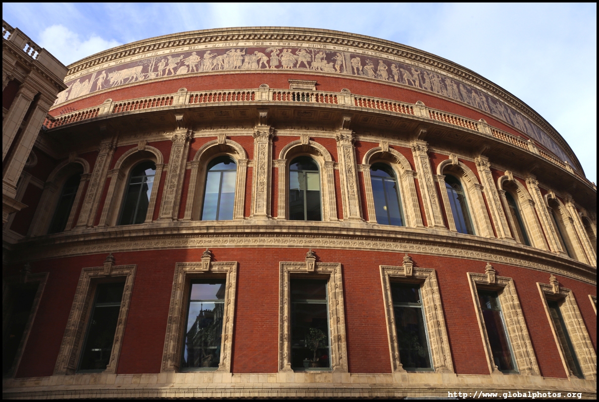 The Royal Albert Hall was built in 1871 with funds from the 1851 Great Exhibition. A mosaic frieze circles around the building, although the original plan was to put up sculptures, which was not adopted after considering both time and costs. The domed roof was a navigation point used by pilots during the World Wars.