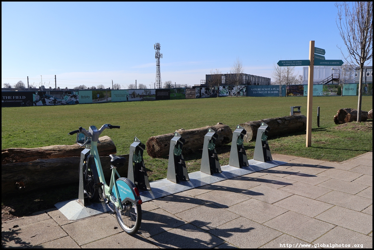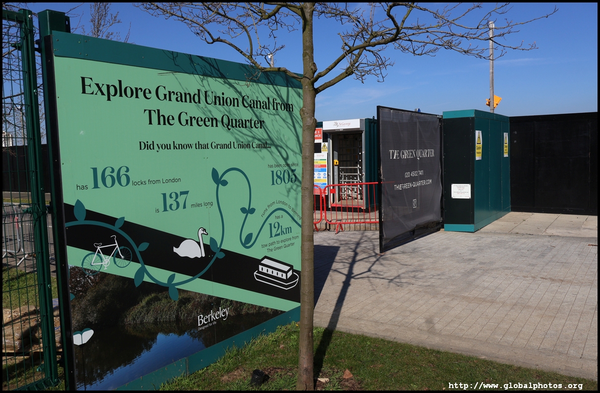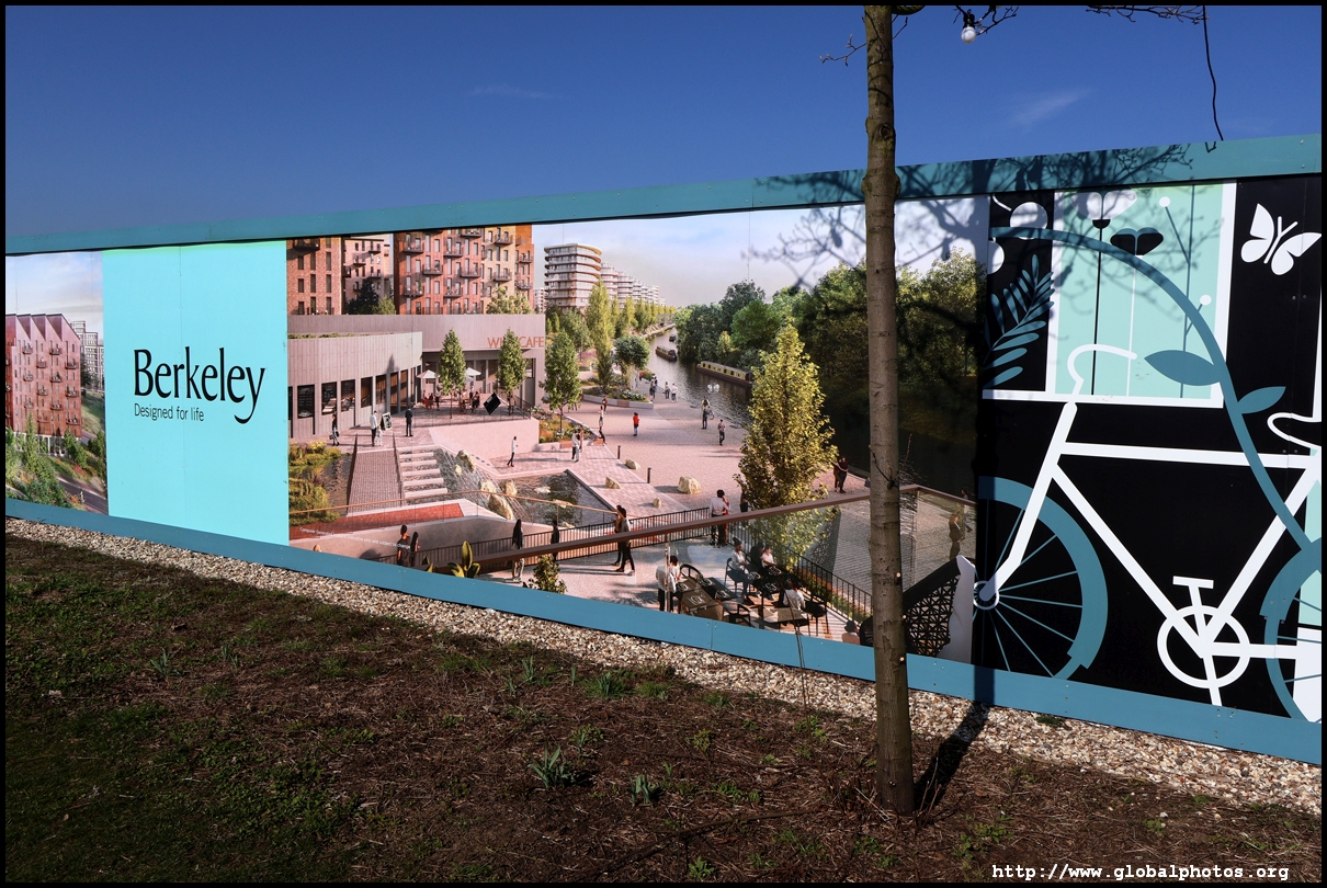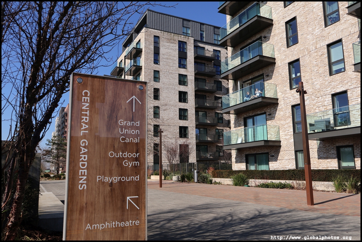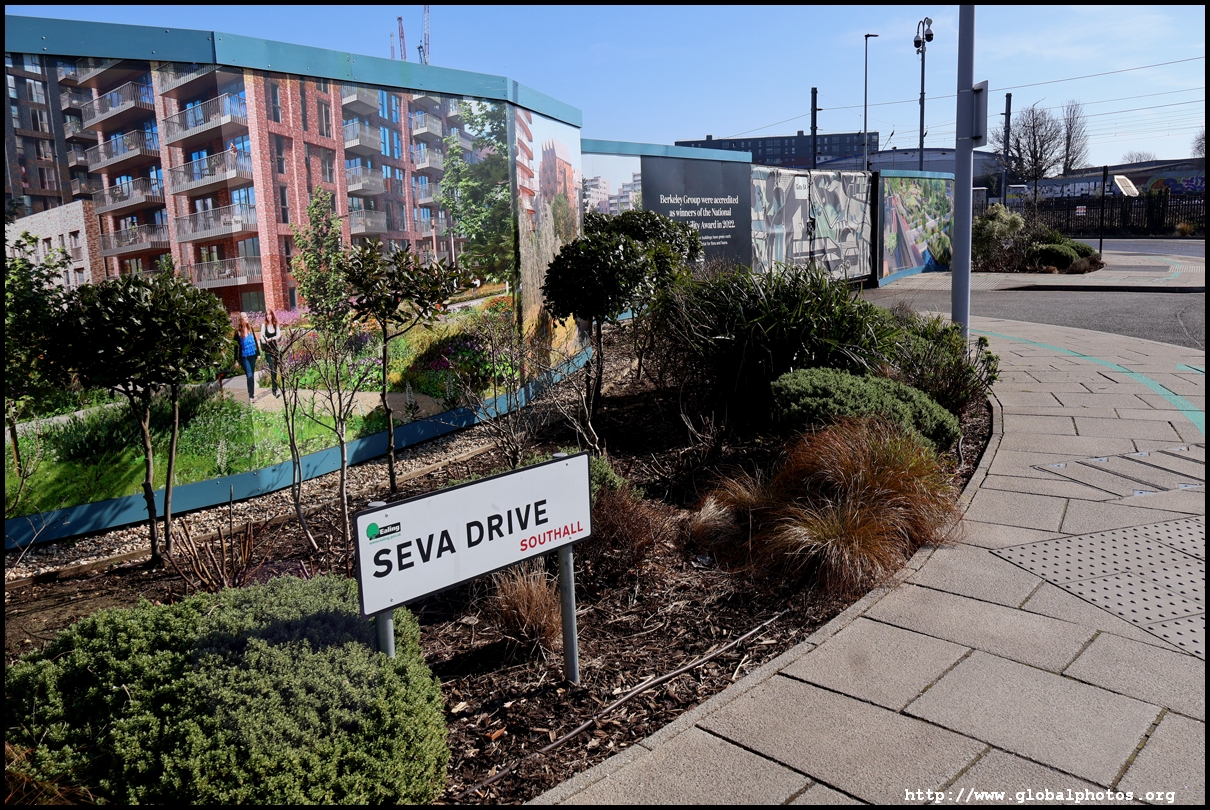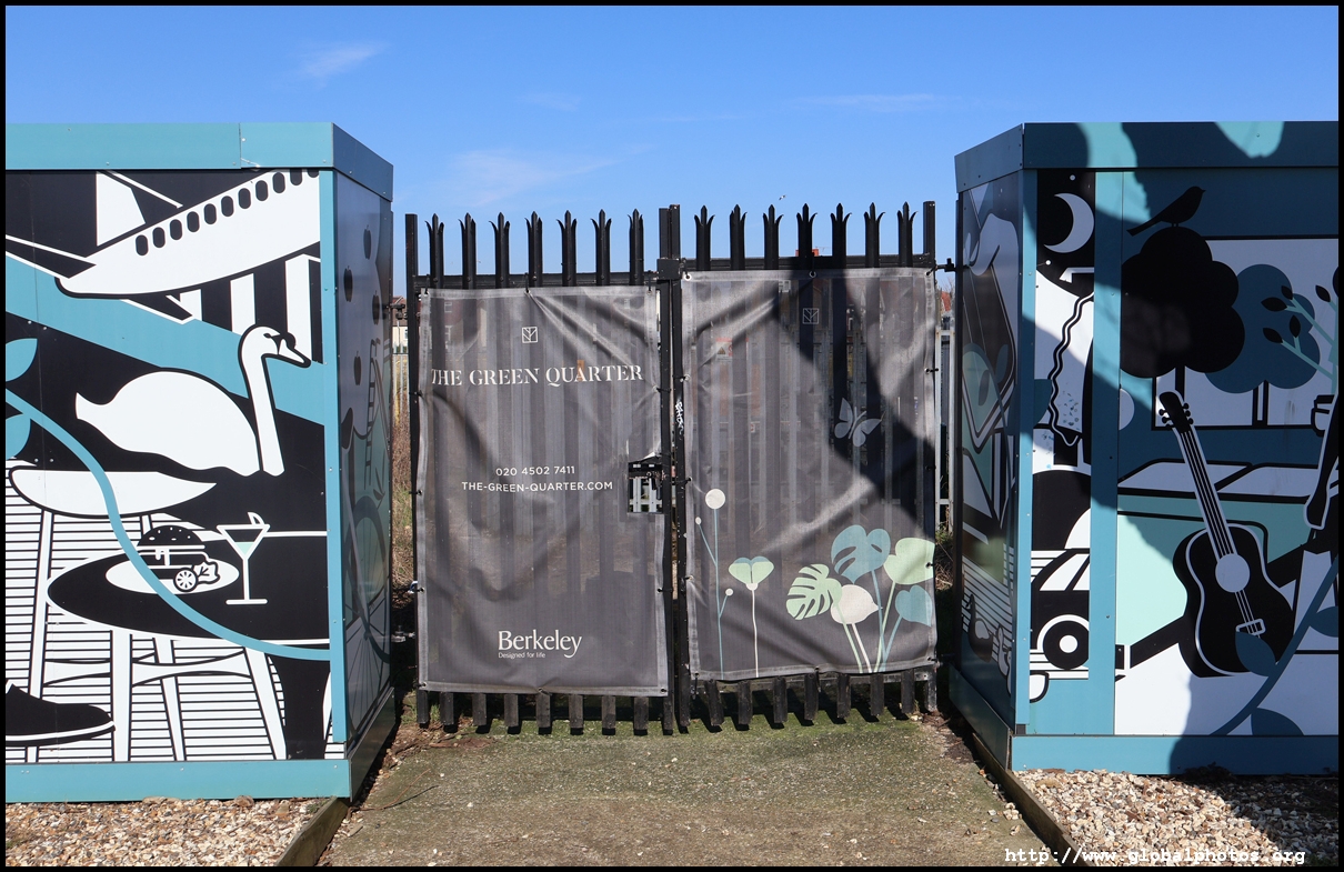 The Elizabeth Line's opening has spurred a lot of construction activity along its stations. Located in the northwestern suburbs in what is dubbed "Little India", Berkeley is embarking on a large regeneration project near Southall station in zone 4. It will include over 3700 new homes.The 88-acre site was previously gasworks from the 19th century until the late 1960s. Transformation began in 2016 that included soil decontamination and now construction of a new community of residentials and parks is under way. Prices for one-bedroom flats starts at just over 380,000 pounds. The eastern end of the site is still boarded up and it is a long walk along The Straight to the residential buildings that have been completed as of March 2025. The Elizabeth Line's trains run parallel to you. A few residential buildings have opened along the middle section of the site with landscaped gardens facing south towards the railroad tracks. This part is dubbed Parkside Yards. The western end of the site towards the Grand Union Canal is still undeveloped, although there is a walkway to the riverfront that is open from dawn to dusk.