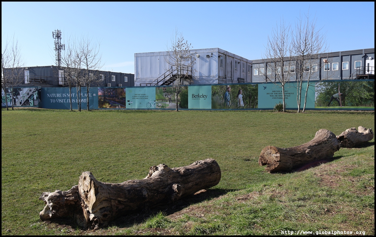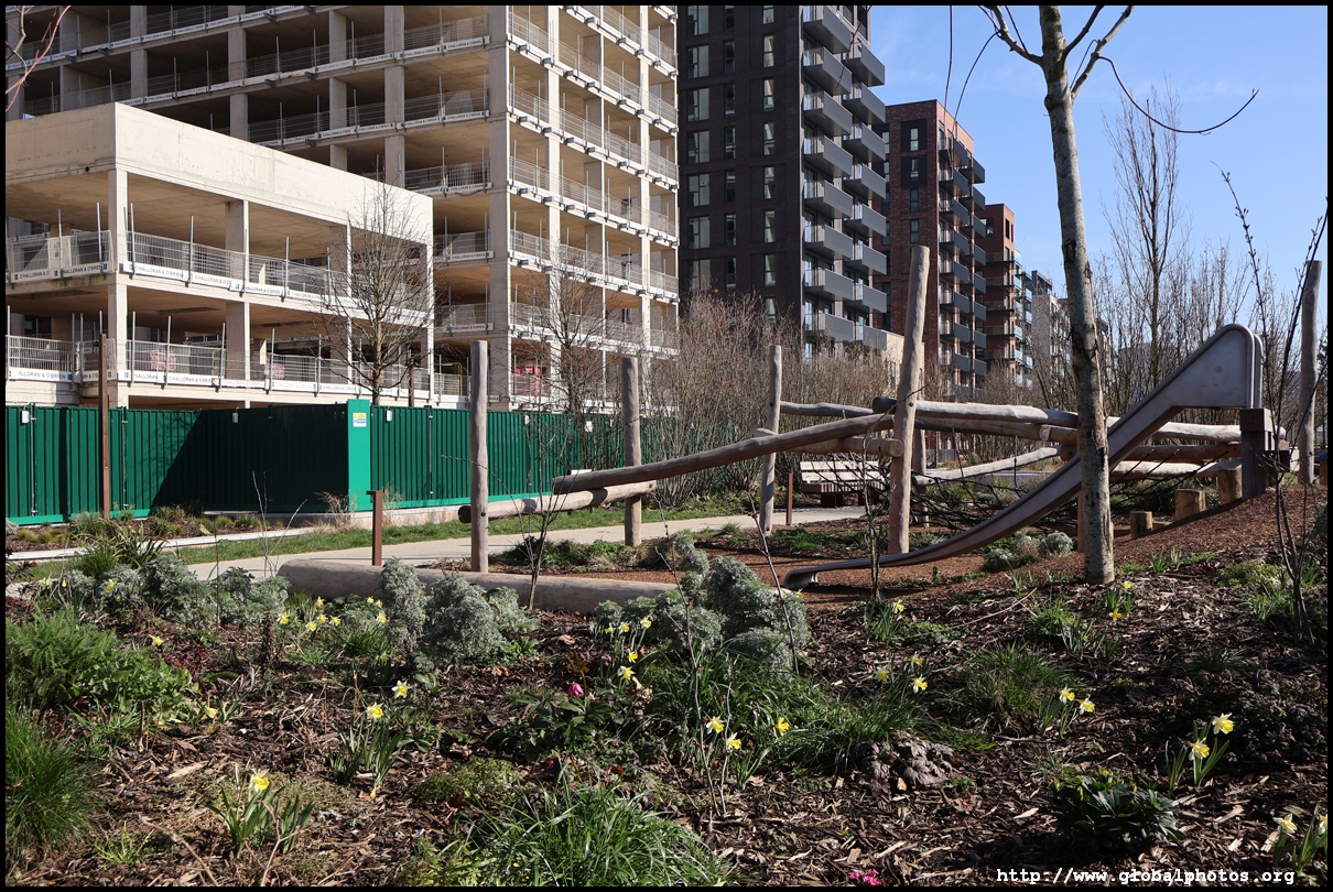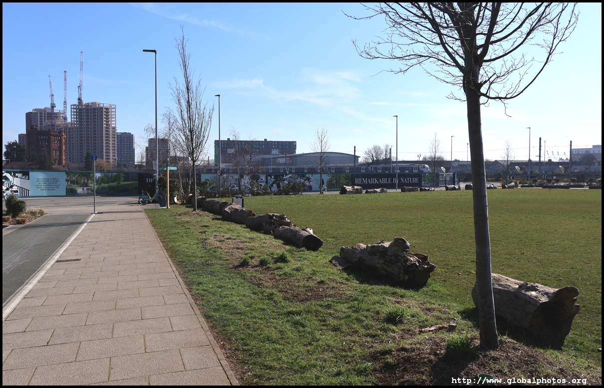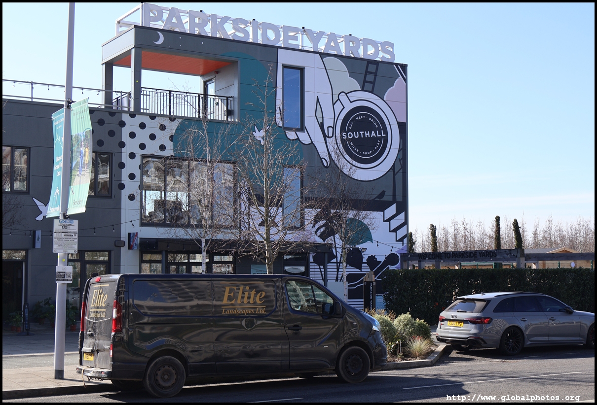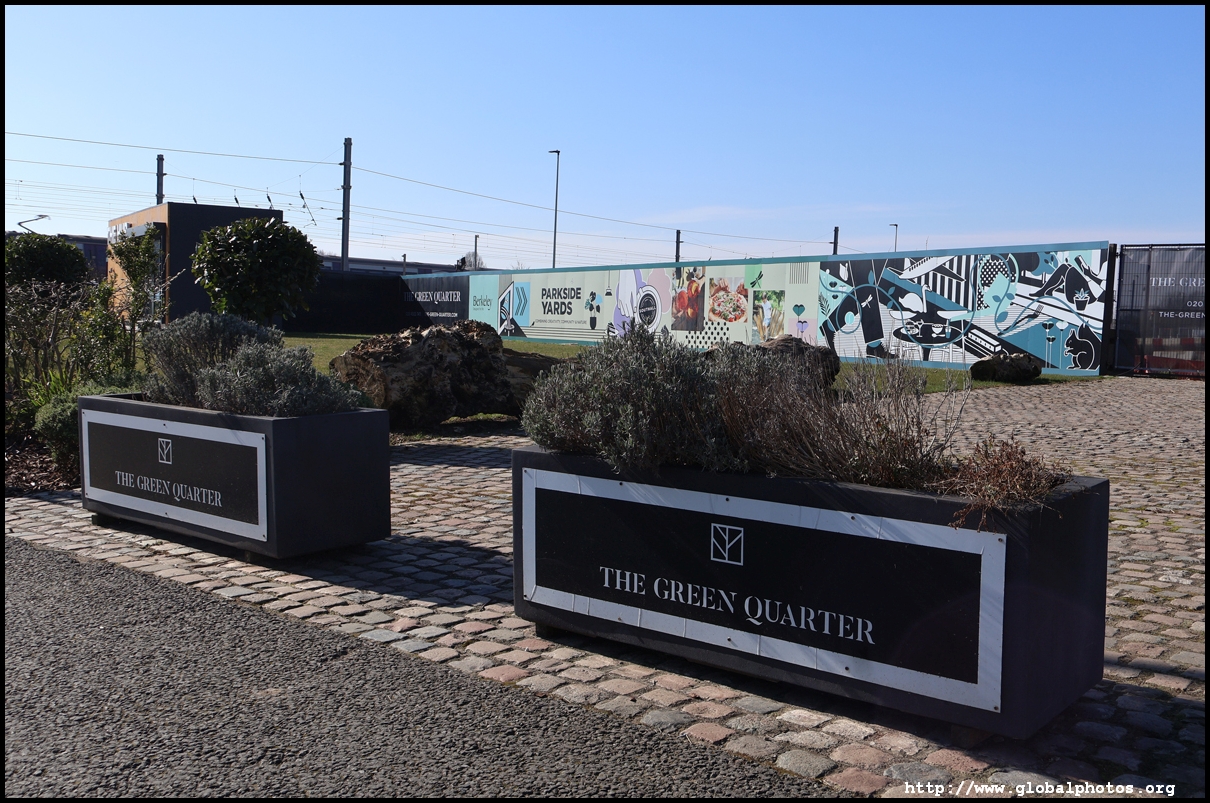The Elizabeth Line's opening has spurred a lot of construction activity along its stations. Located in the northwestern suburbs in what is dubbed "Little India", Berkeley is embarking on a large regeneration project near Southall station in zone 4. It will include over 3700 new homes.The 88-acre site was previously gasworks from the 19th century until the late 1960s. Transformation began in 2016 that included soil decontamination and now construction of a new community of residentials and parks is under way. Prices for one-bedroom flats starts at just over 380,000 pounds. The eastern end of the site is still boarded up and it is a long walk along The Straight to the residential buildings that have been completed as of March 2025. The Elizabeth Line's trains run parallel to you. A few residential buildings have opened along the middle section of the site with landscaped gardens facing south towards the railroad tracks. This part is dubbed Parkside Yards. The western end of the site towards the Grand Union Canal is still undeveloped, although there is a walkway to the riverfront that is open from dawn to dusk.
