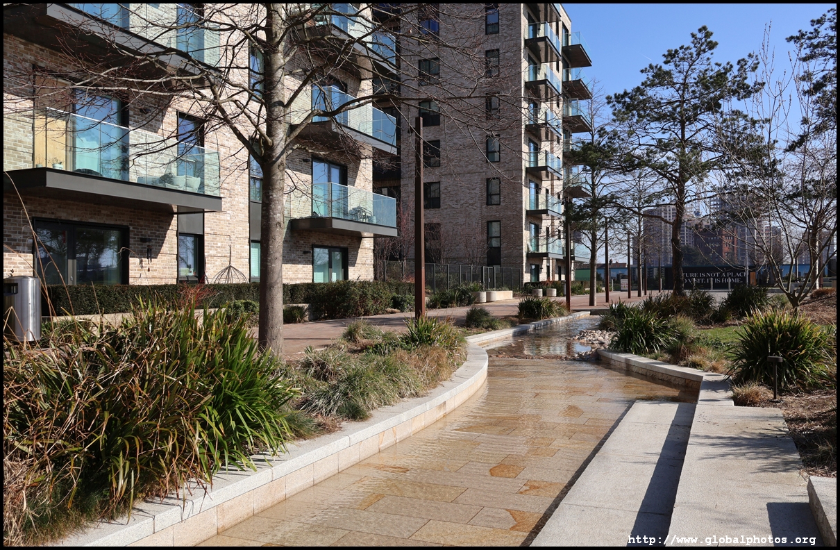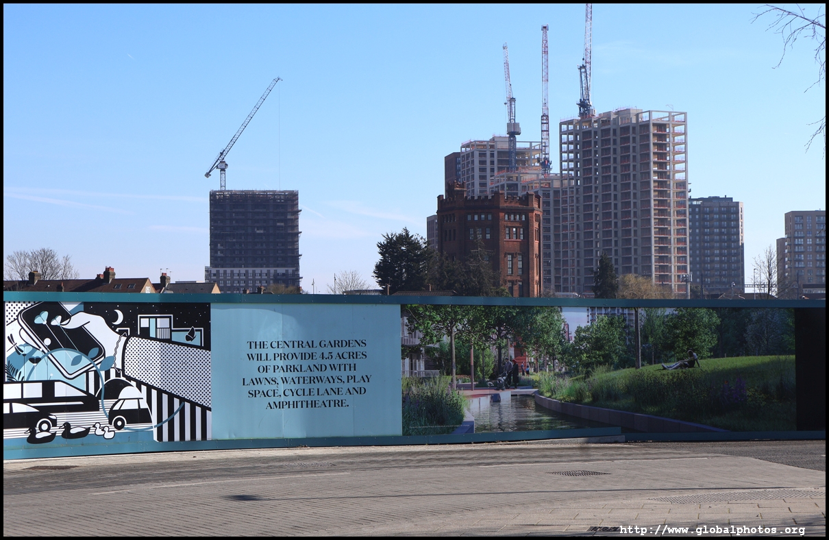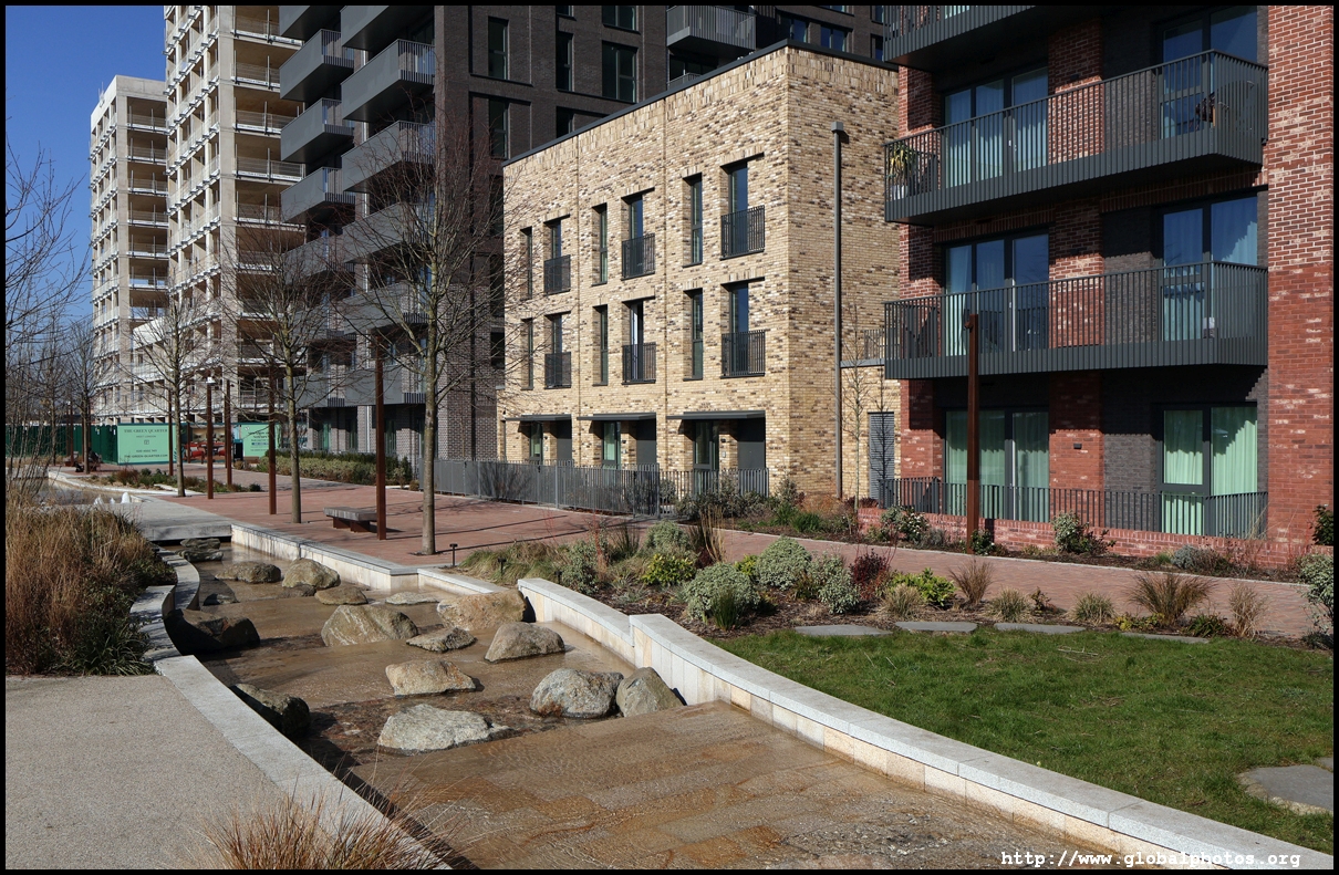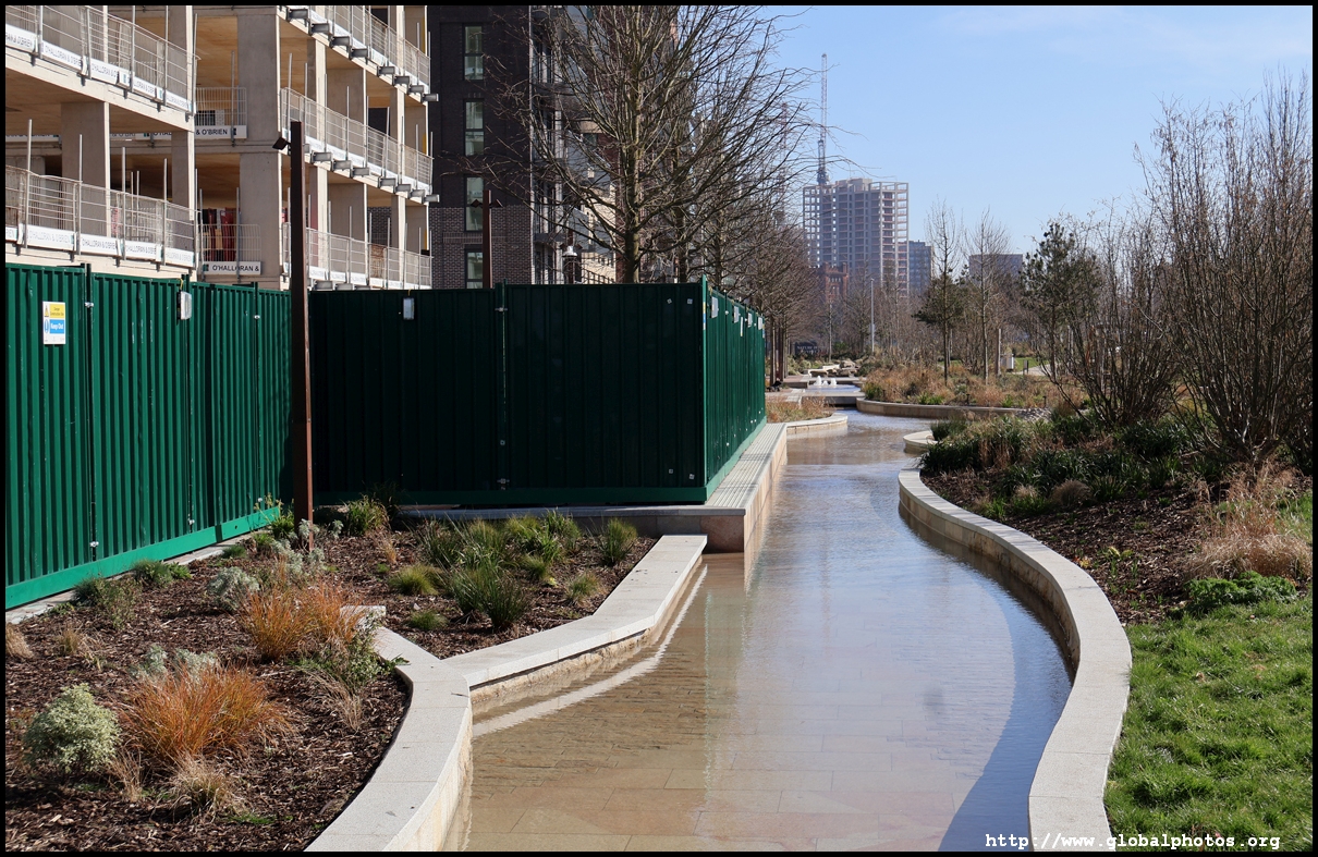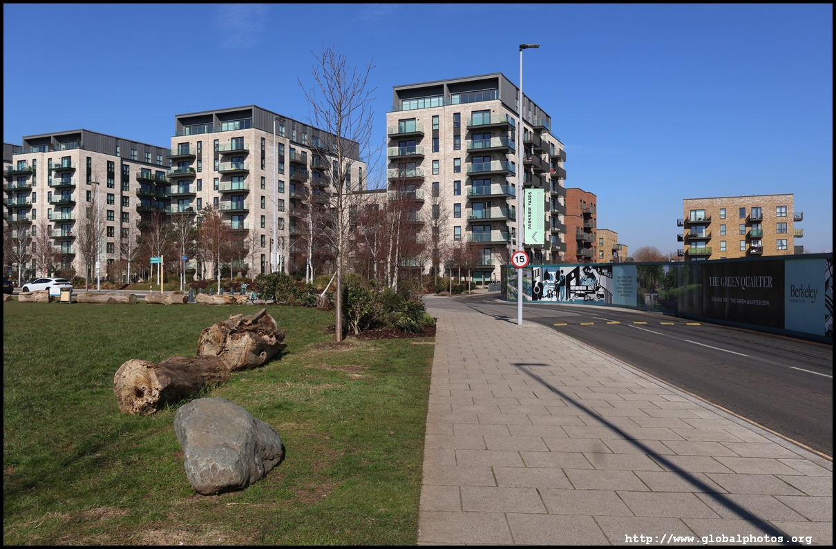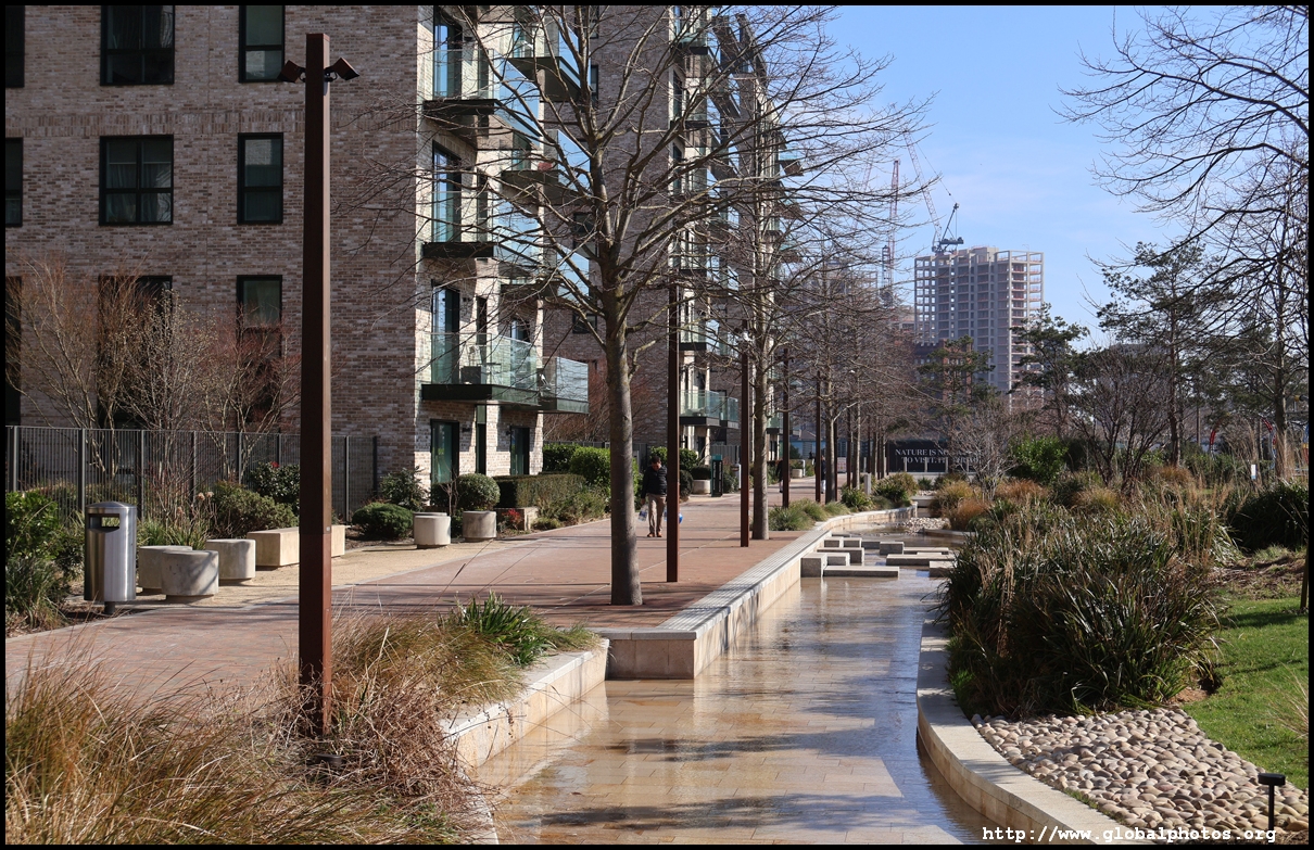 The Elizabeth Line's opening has spurred a lot of construction activity along its stations. Located in the northwestern suburbs in what is dubbed "Little India", Berkeley is embarking on a large regeneration project near Southall station in zone 4. It will include over 3700 new homes.The 88-acre site was previously gasworks from the 19th century until the late 1960s. Transformation began in 2016 that included soil decontamination and now construction of a new community of residentials and parks is under way. Prices for one-bedroom flats starts at just over 380,000 pounds. The eastern end of the site is still boarded up and it is a long walk along The Straight to the residential buildings that have been completed as of March 2025. The Elizabeth Line's trains run parallel to you. A few residential buildings have opened along the middle section of the site with landscaped gardens facing south towards the railroad tracks. This part is dubbed Parkside Yards. The western end of the site towards the Grand Union Canal is still undeveloped, although there is a walkway to the riverfront that is open from dawn to dusk.