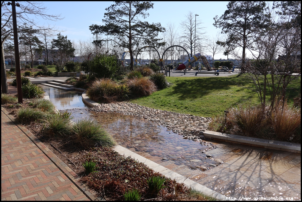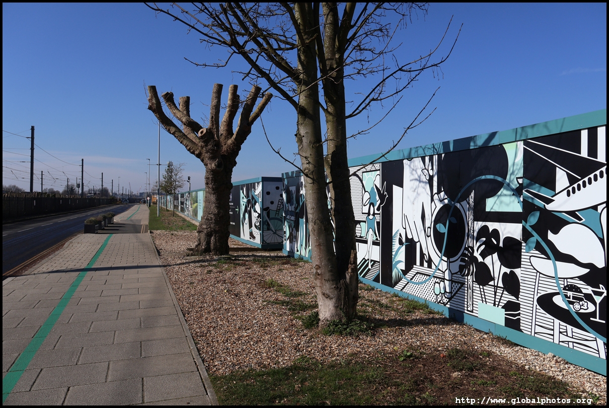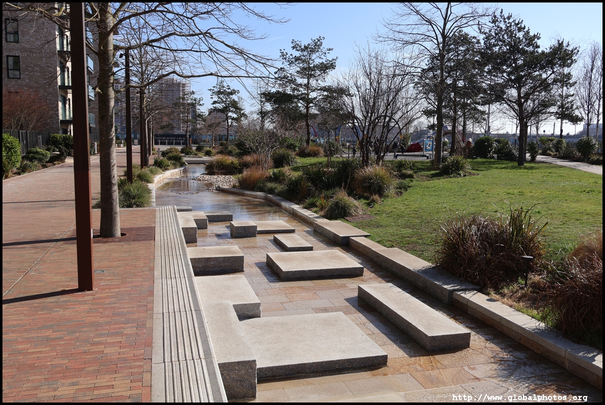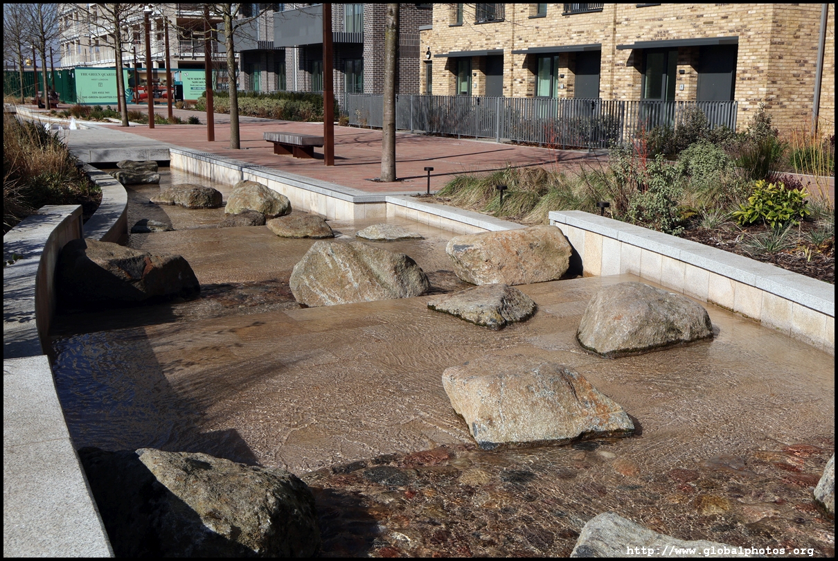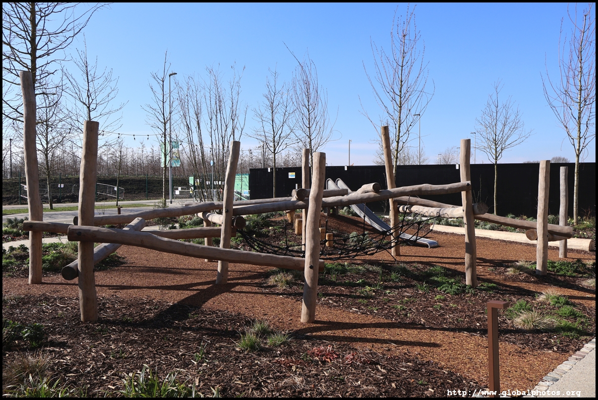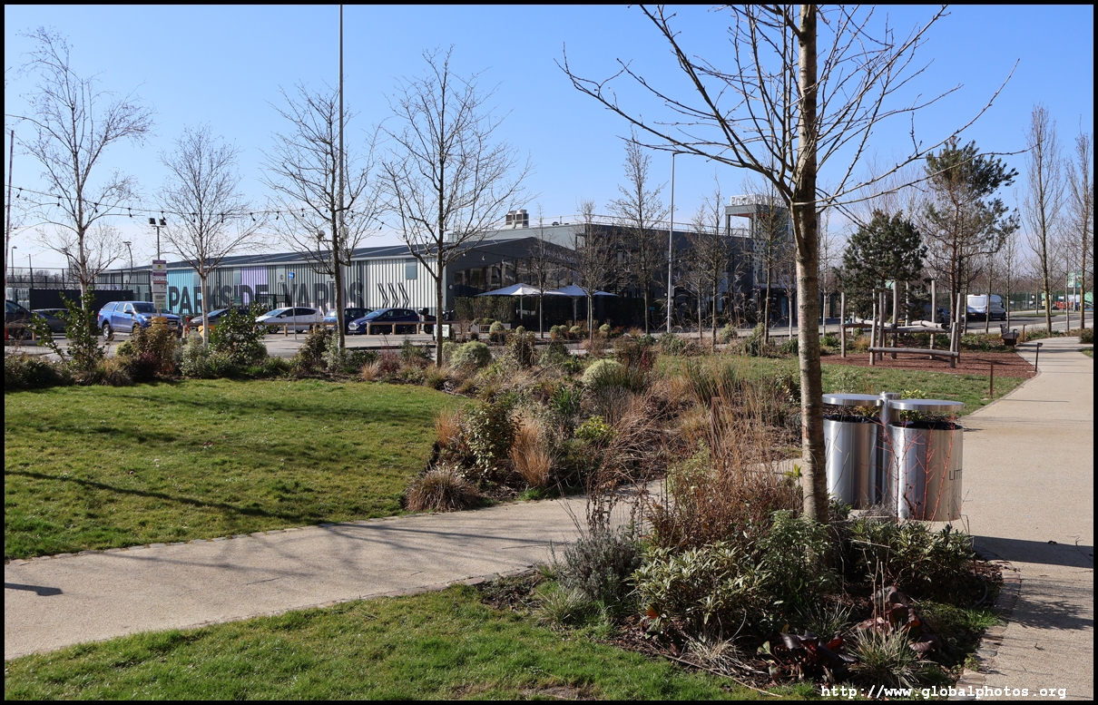 The Elizabeth Line's opening has spurred a lot of construction activity along its stations. Located in the northwestern suburbs in what is dubbed "Little India", Berkeley is embarking on a large regeneration project near Southall station in zone 4. It will include over 3700 new homes.The 88-acre site was previously gasworks from the 19th century until the late 1960s. Transformation began in 2016 that included soil decontamination and now construction of a new community of residentials and parks is under way. Prices for one-bedroom flats starts at just over 380,000 pounds. The eastern end of the site is still boarded up and it is a long walk along The Straight to the residential buildings that have been completed as of March 2025. The Elizabeth Line's trains run parallel to you. A few residential buildings have opened along the middle section of the site with landscaped gardens facing south towards the railroad tracks. This part is dubbed Parkside Yards. The western end of the site towards the Grand Union Canal is still undeveloped, although there is a walkway to the riverfront that is open from dawn to dusk.