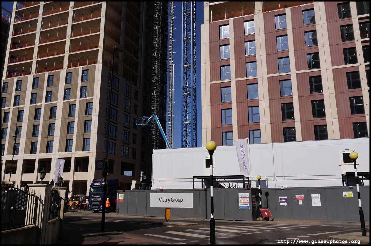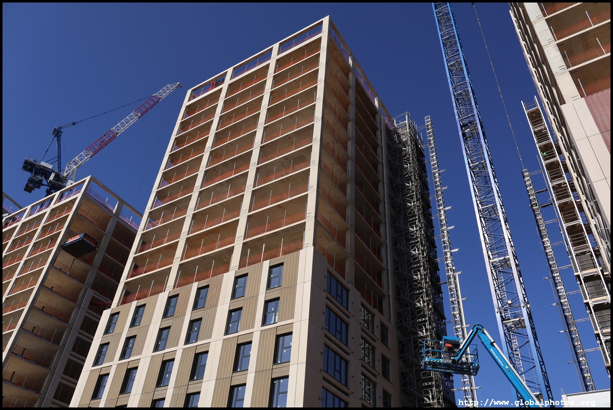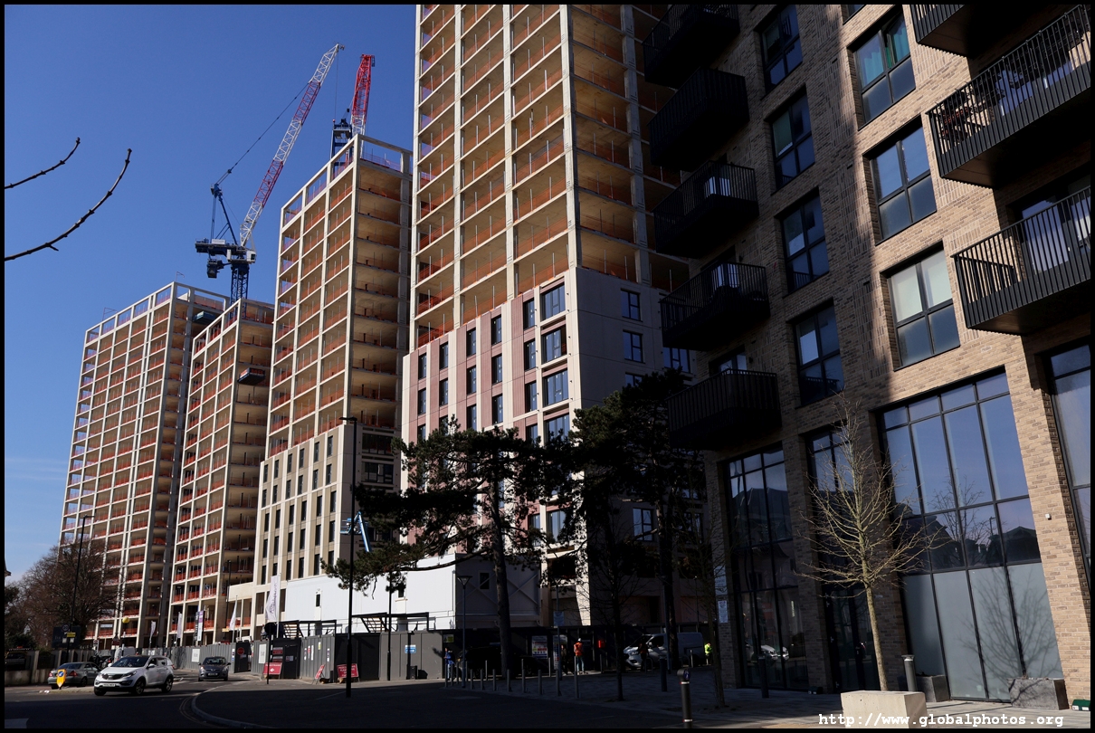 Besides the massive Green Quarter redevelopment, there are also new residential buildings under construction next to Southall station.Merrick Place is on the station's south side and will include 4 buildings from 15-23 storeys to house 575 new homes. Being next to the Elizabeth Line station, there won't be any parking facilities on site but there will be 926 bicycle parking spaces. Completion is expected by 2026. Across the tracks to the northeast of the train station is the Southall Park Avenue redevelopment that will have 5 blocks of 5-25 storeys. Before these new buildings, this neighbourhood is mostly lowrise residential, so the population density will soon substantially increase.