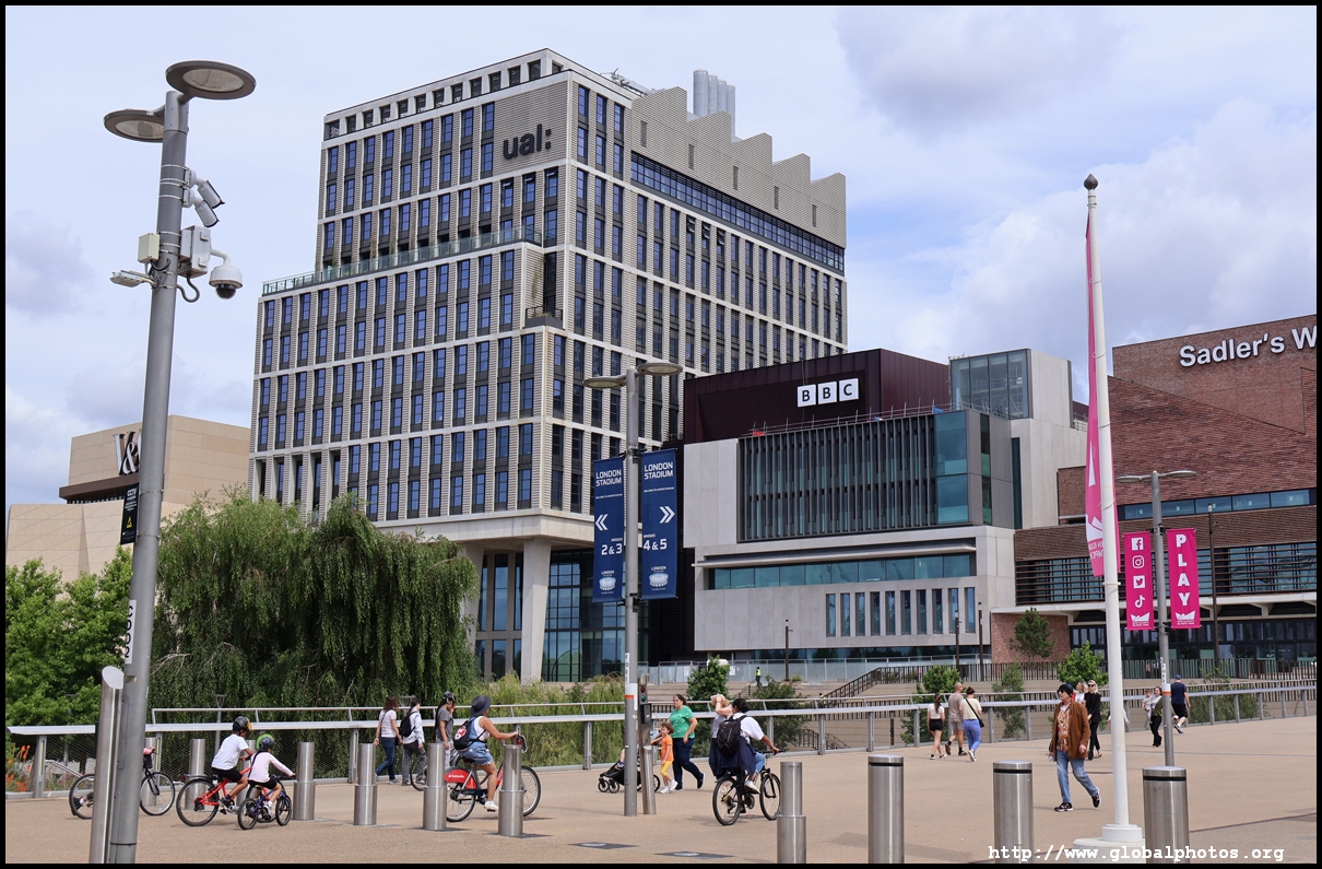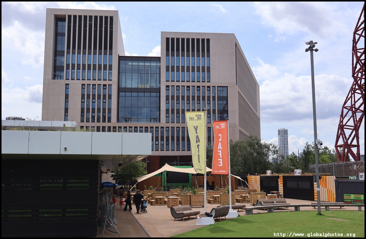 At the eastern end of the park near the Westfield is the appropriately-named East Bank, a new cultural quarter home to several institutions such as the Sadler's Wells East theatre, BBC, London College of Fashion, and the V&A's new museum.