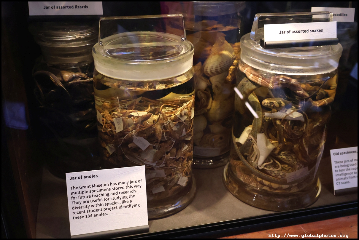 The Grant Museum of Zoology was established in 1828 for teaching purposes and now has about 68,000 zoological specimens that includes fluid-preserved creatures, wax animal models, and fossils. It closed in March 2023 and re-opened in early 2024 after a 300,000 pound improvement program. Although they don't have a large physical space, it is packed with exhibits in a beautiful setting.