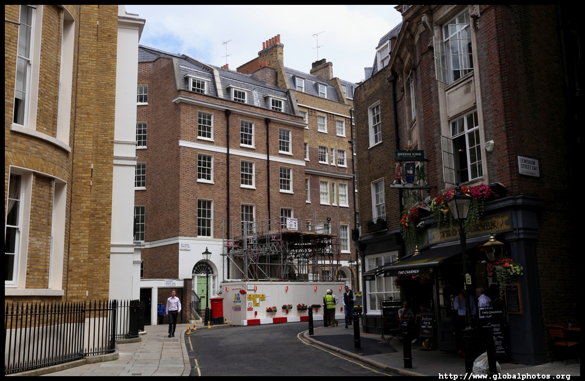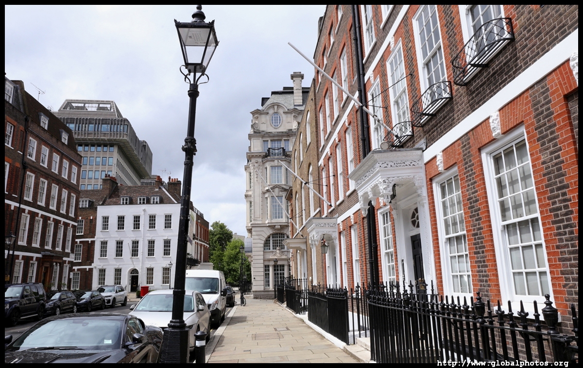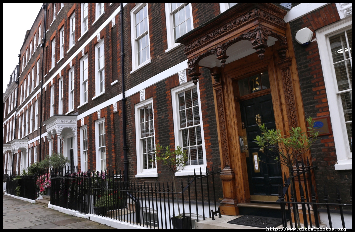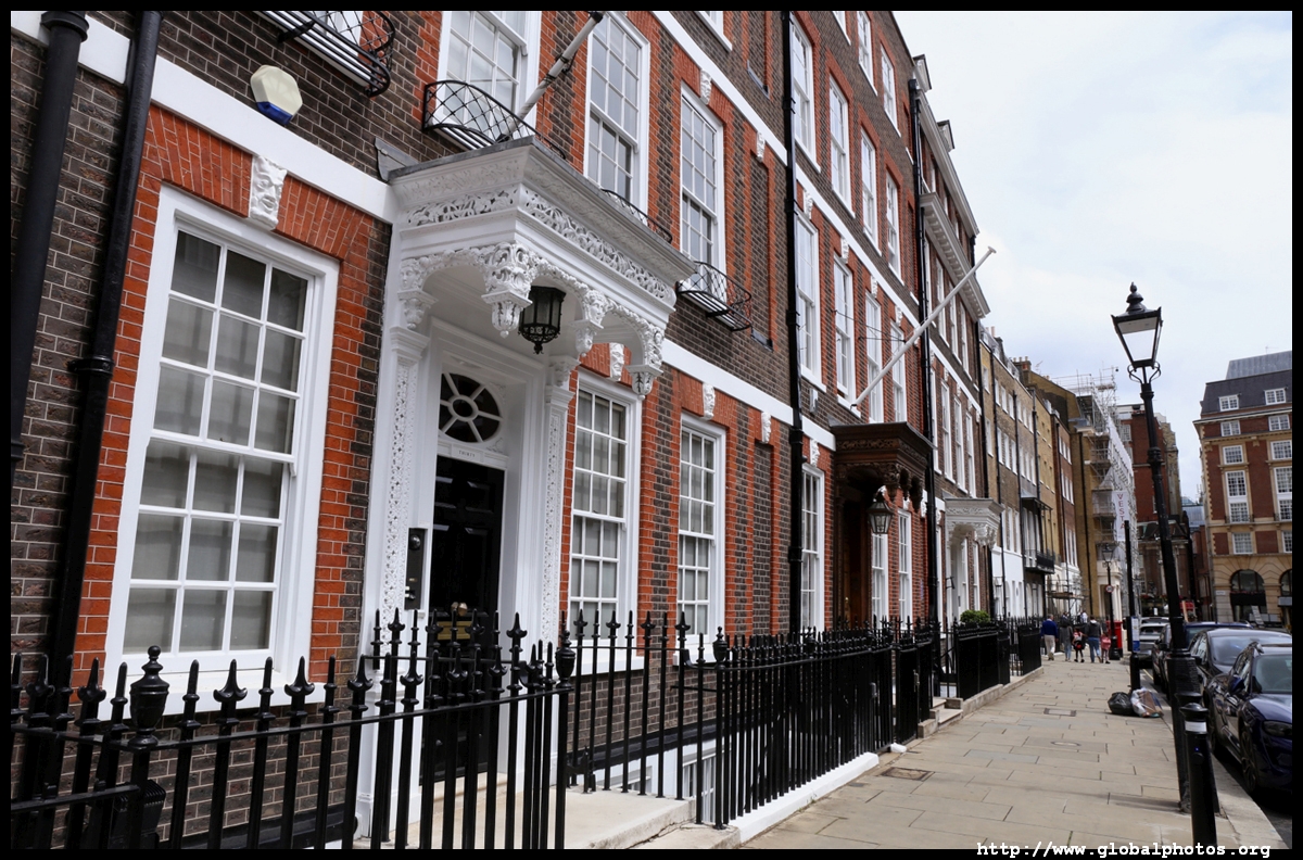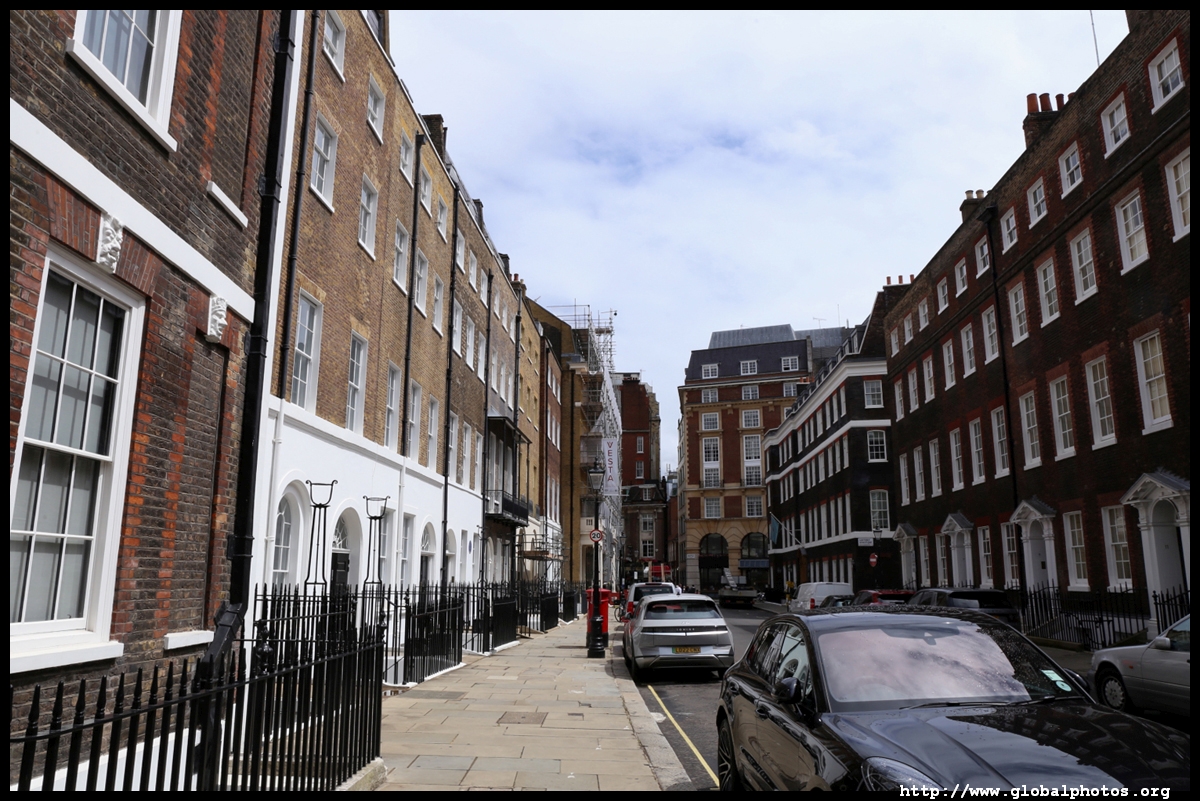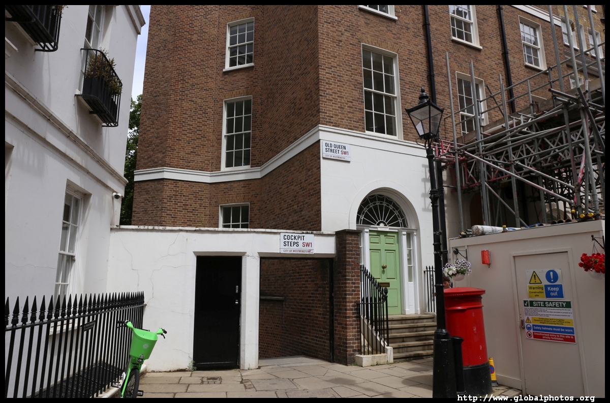 Queen Anne's Gate is a quiet side street with grand homes in Queen Anne architectural style. Their backs face into St. James's Park, and the street's tidiness suggests it's not a cheap area to live in.