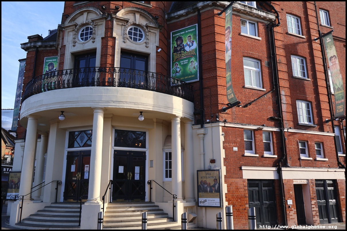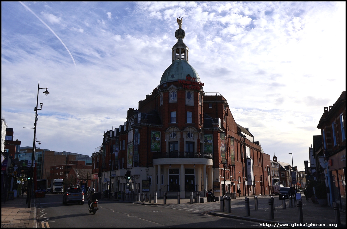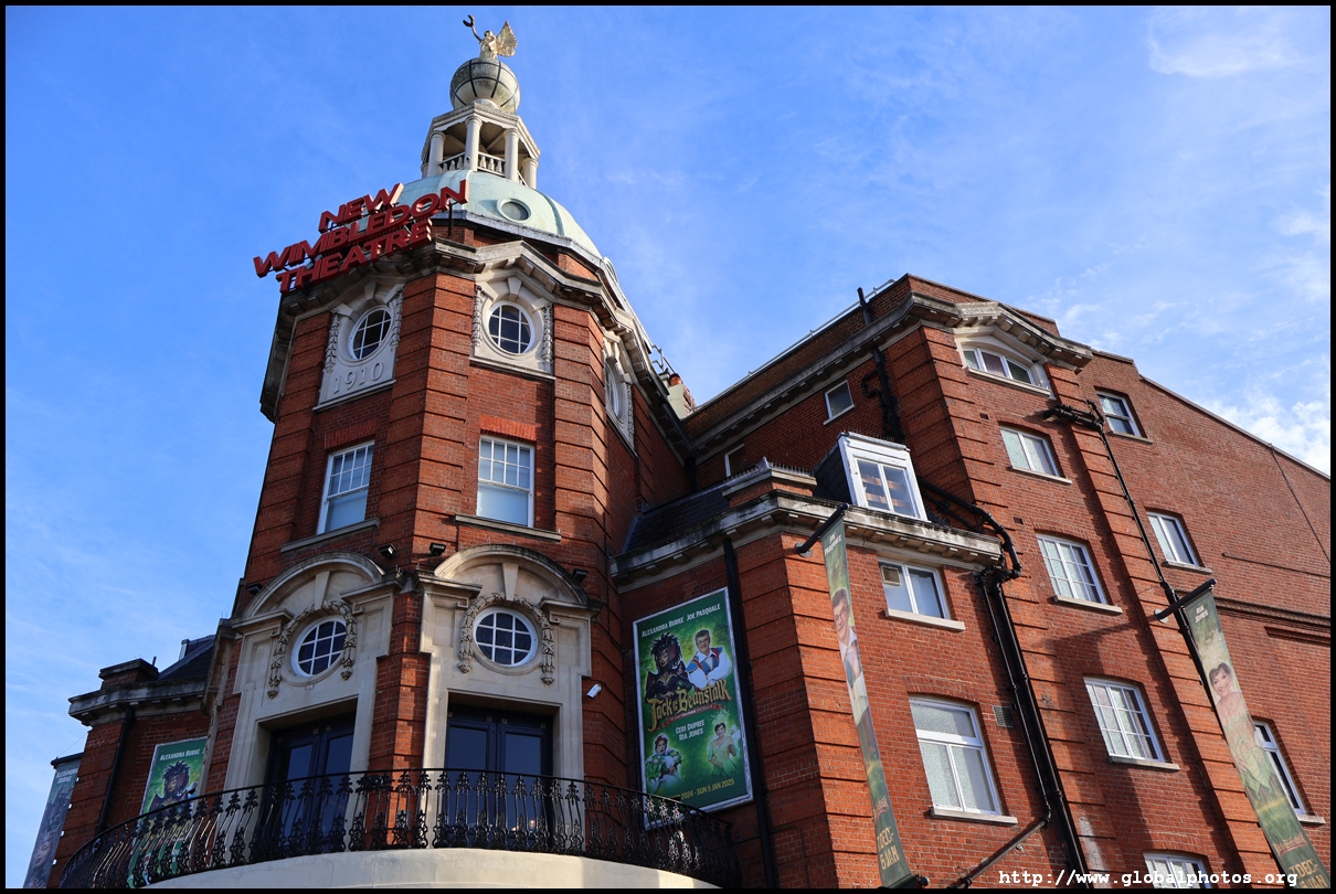 New Wimbledon Theatre dates from 1910 and is easily recognizable with its red bricks, copper dome, and octagonal tower.