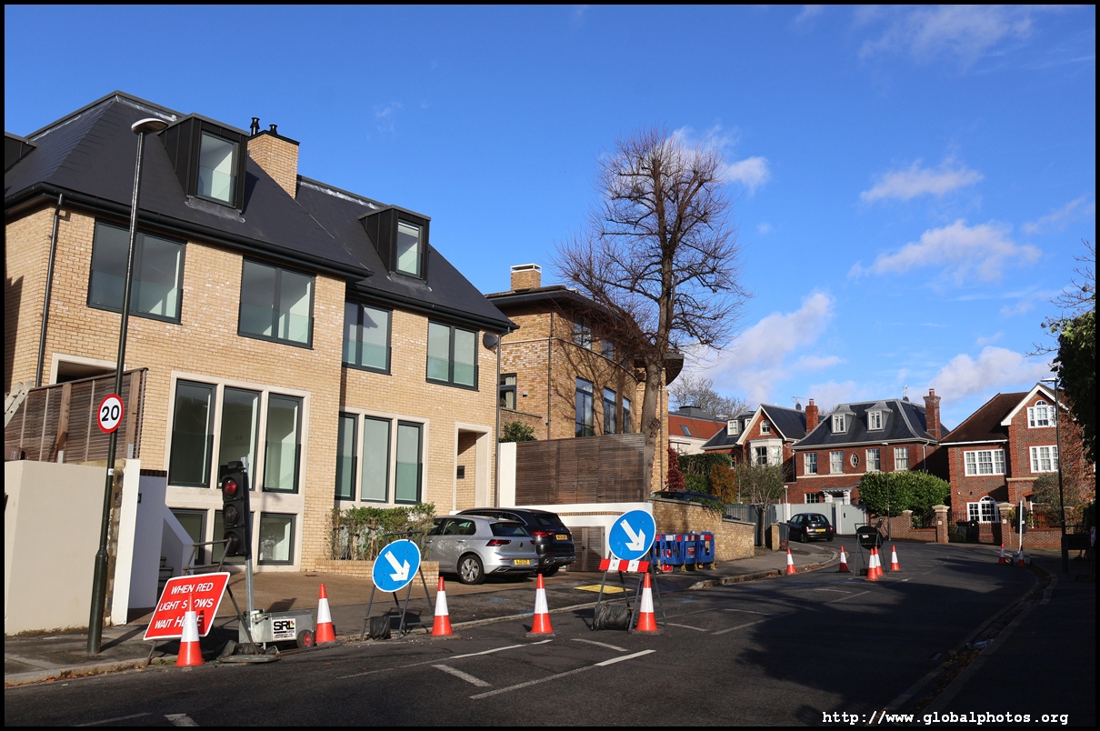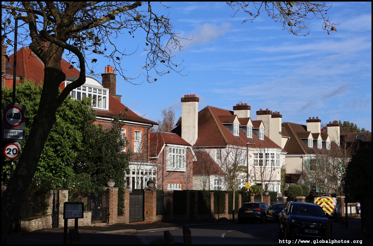 The residential side streets are quiet with many grand homes that suggest a very wealthy stature.