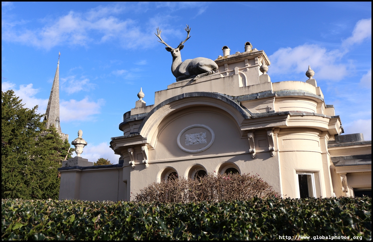 At the church's entrance, you can see the deer atop the Stag Lodge, a mid-19th century building.