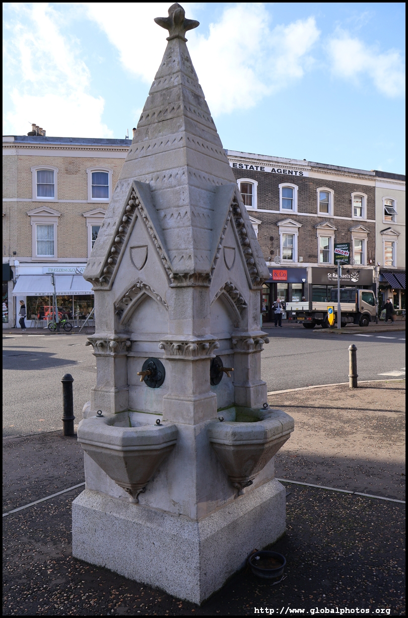 This drinking fountain from 1868 is built with Portland stone in the Gothic style with a stone spire.