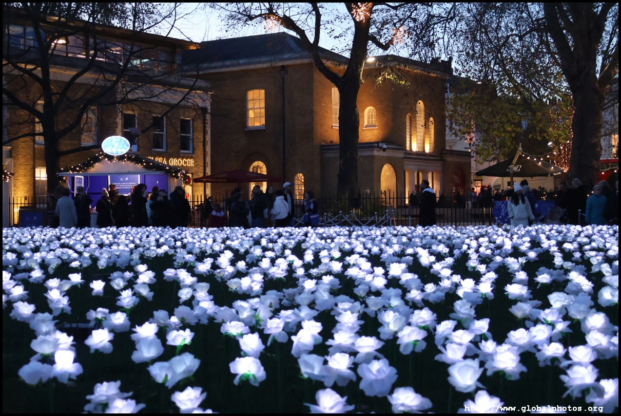 London's major train stations are good places to spot Christmas trees. King's Cross has a Harry Potter theme, rightfully chosen as it is home to the infamous platform 9 3/4. At the base is a shop and display windows.Neighbouring St. Pancras station International has a 12m-tall tree themed "Powered by Dreams" that explores a child's imagination with musical booths at the base. 30 craftspeople spent over 1800 hours to create this piece of work, which is decorated with 158 baubles and 180m of fairy lights. At Coal Drops Yard, there is a Norwegian spruce Christmas tree as well as a 11m-tall lighting installation at Lewis Cubitt Square behind it. There is a circular skating rink and Christmas market at Leicester Square, which has unique marshmallow roasting stations that double up as warming huts. There is also a skating rink at Somerset House inside its courtyard, with a 40-foot Christmas tree to remind you it's the festive season. Burlington Arcade has the grandest displays of the arcades along Piccadilly. All along its stretch are different decorations hung above you. Upscale retailers and the nicer malls also put in an extra effort on their storefront displays. The big luxury brands were not shy to outdo each other in extravagance all along New Bond Street, so be sure to drop by after checking out the holiday windows at the big department stores on Oxford Street. Ralph Lauren has decorated Sloane Square into a miniature Christmas market with lights, drinks, and more. In support of a cancer charity, you can also dedicate a star on their tree to honour a loved one. The Duke of York Square nearby has been decorated with over 30,000 illuminated white roses. Also in support of cancer charity, you can dedicate a rose in the Ever After Garden with a recommended 15 pound donation. The first such garden was founded in 2019 at Grosvenor Square, and since then, over 1.2 million pounds have been raised for the charity. Neighbouring streets around Chelsea and Victoria also have lights above the streets as well.