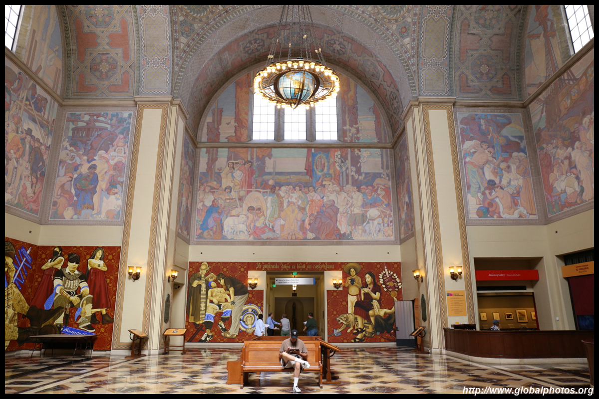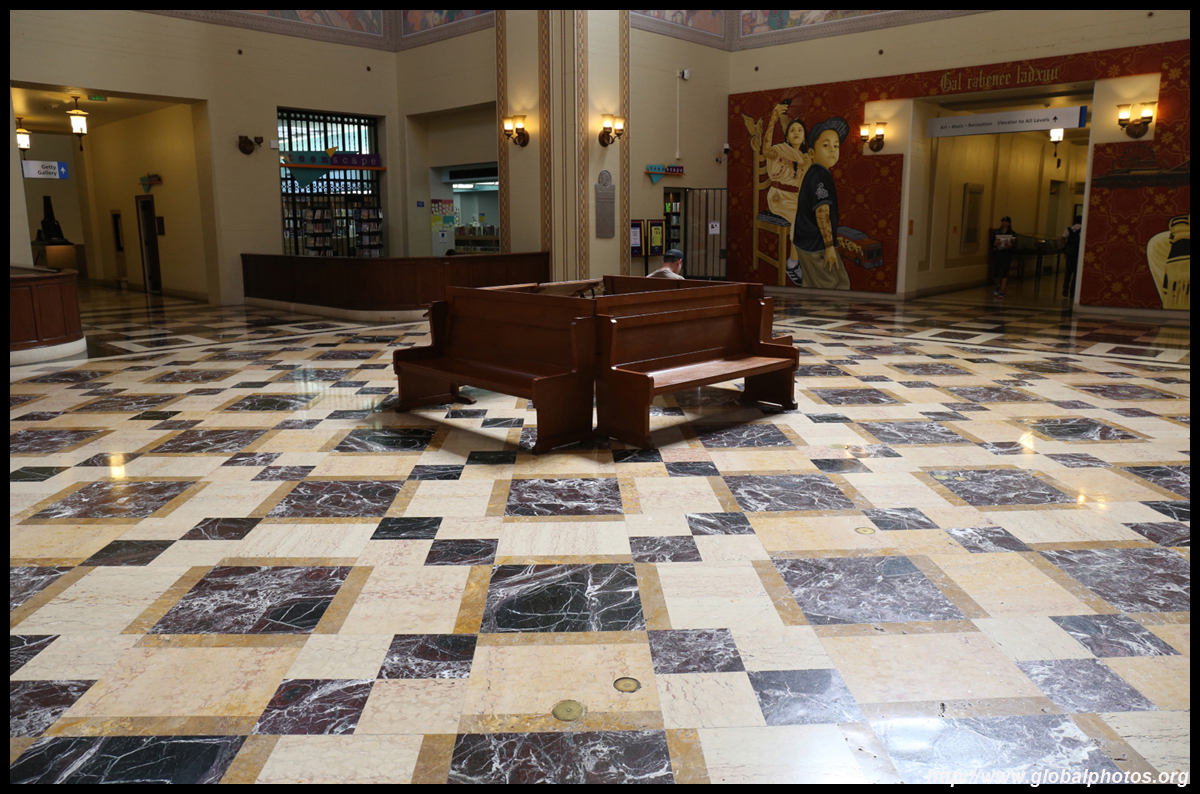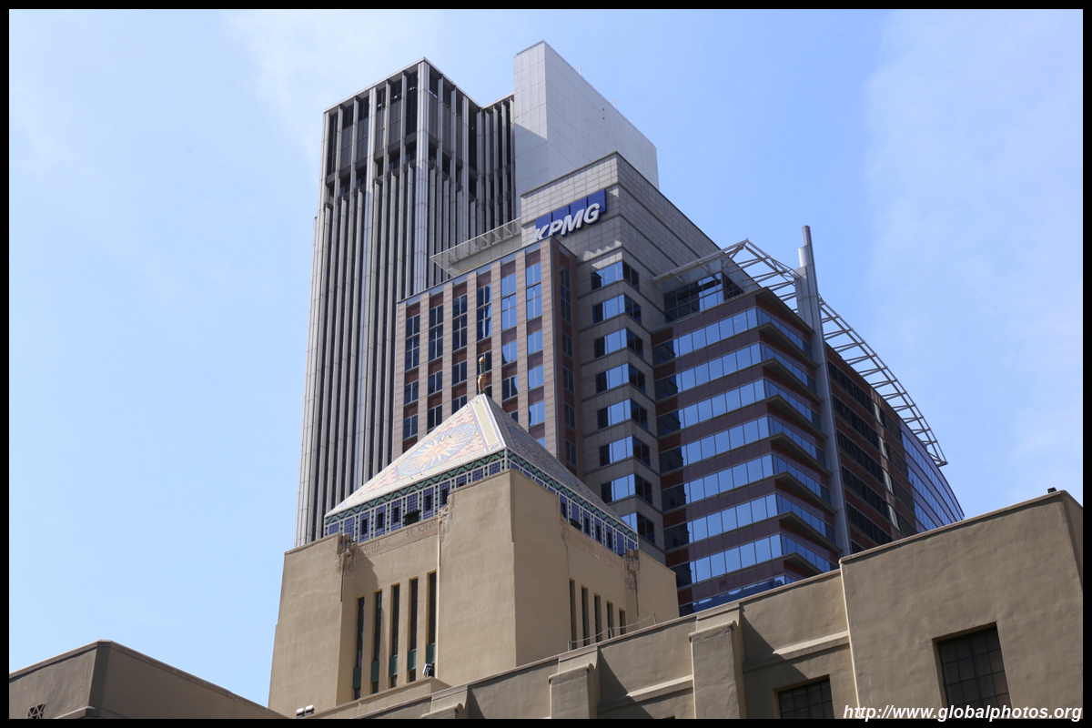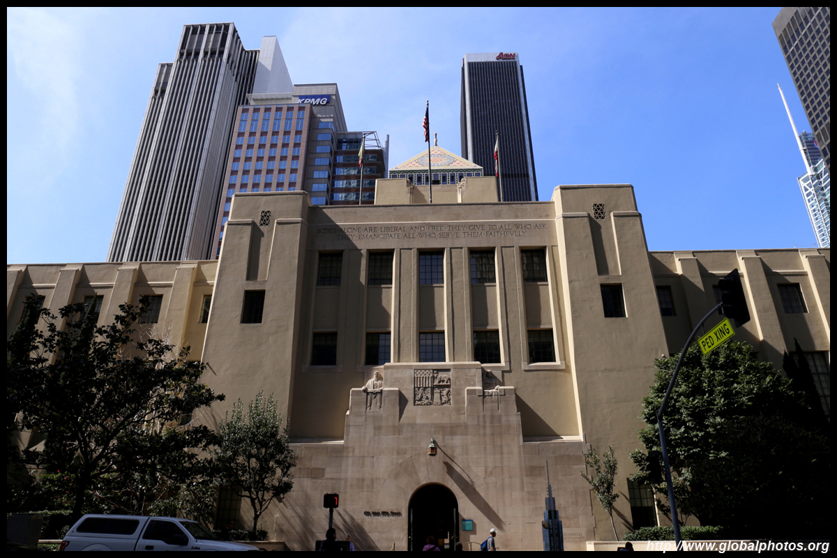 LA Central Library occupies a stately block, surrounded by much taller buildings. Originally opened in 1926, fire nearly destroyed it in 1986, but it has since been restored, giving nearby office workers a great place to relax.