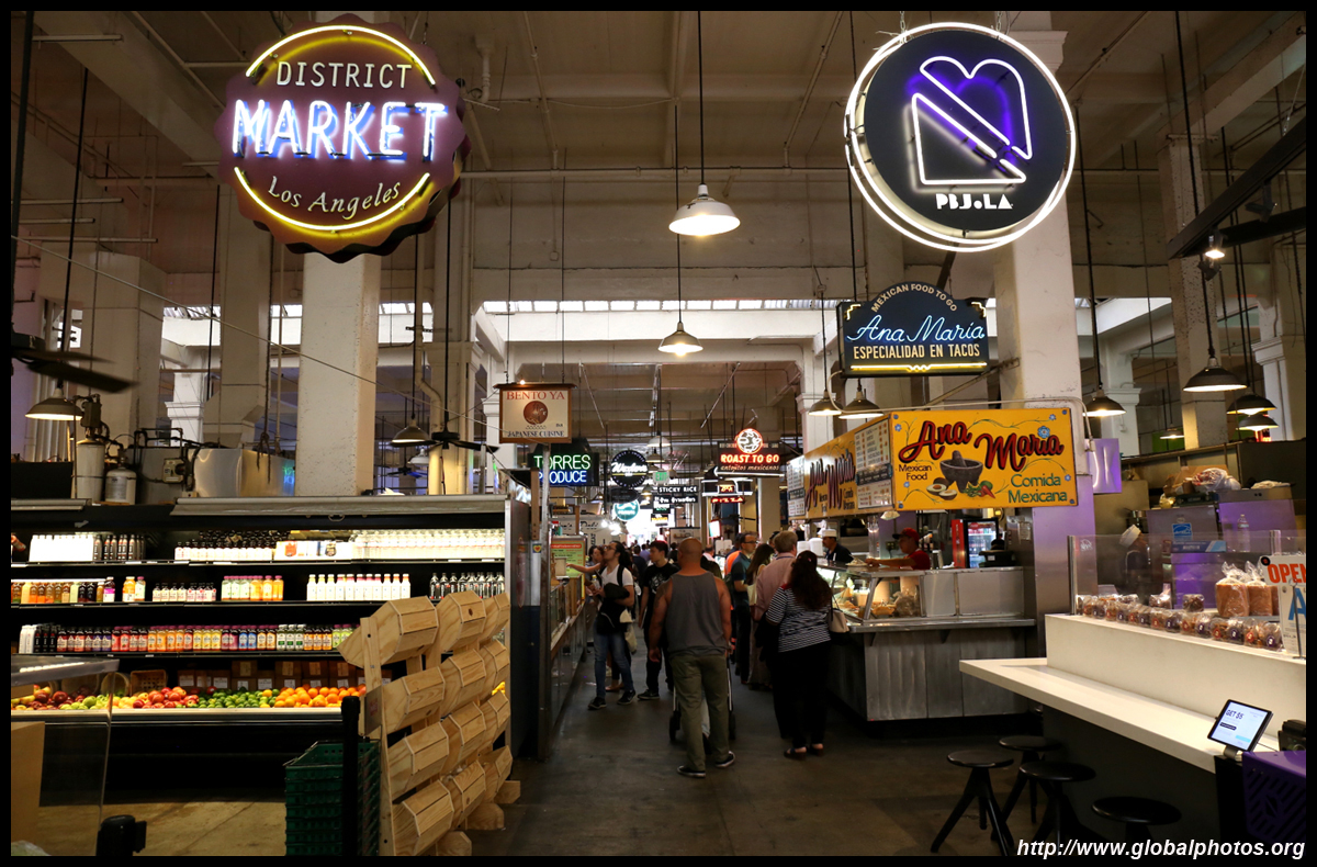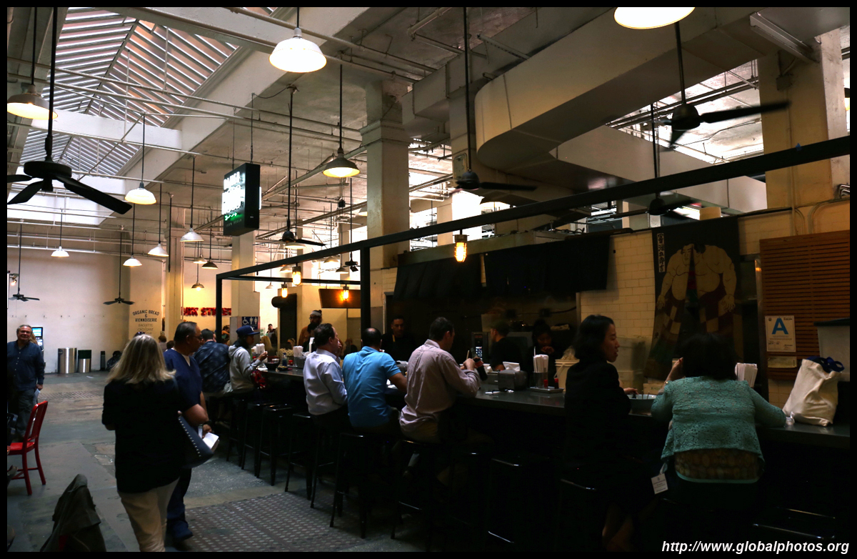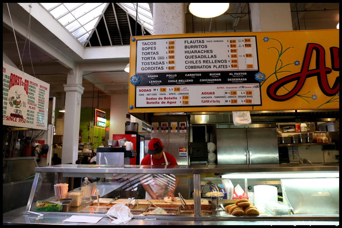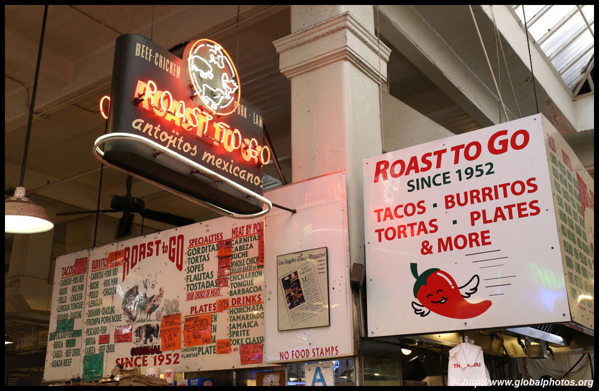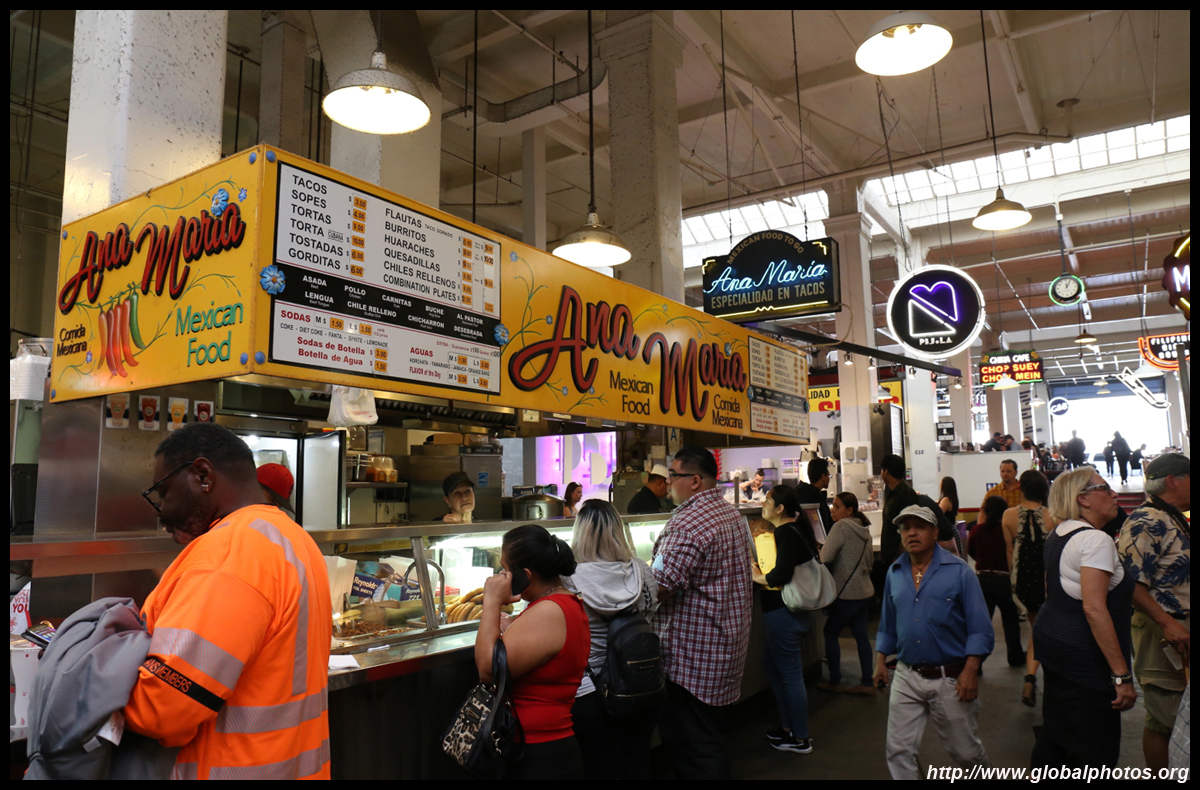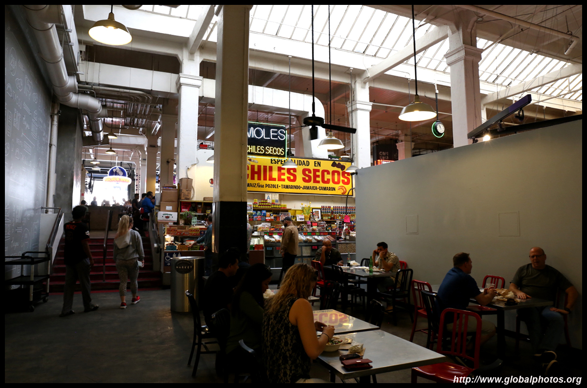 Renovated in 2013, Grand Central Market is quite busy with the lunch crowd. If you can't find a seat near your stall, head downstairs for more tables.