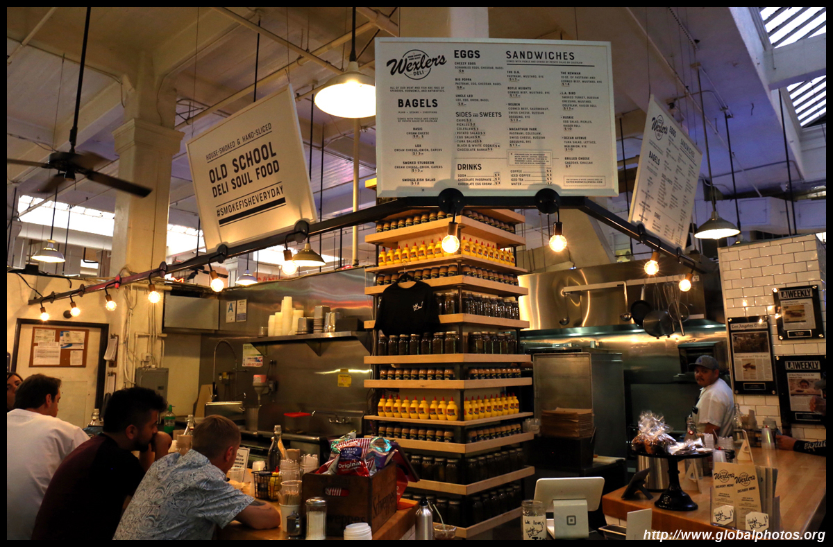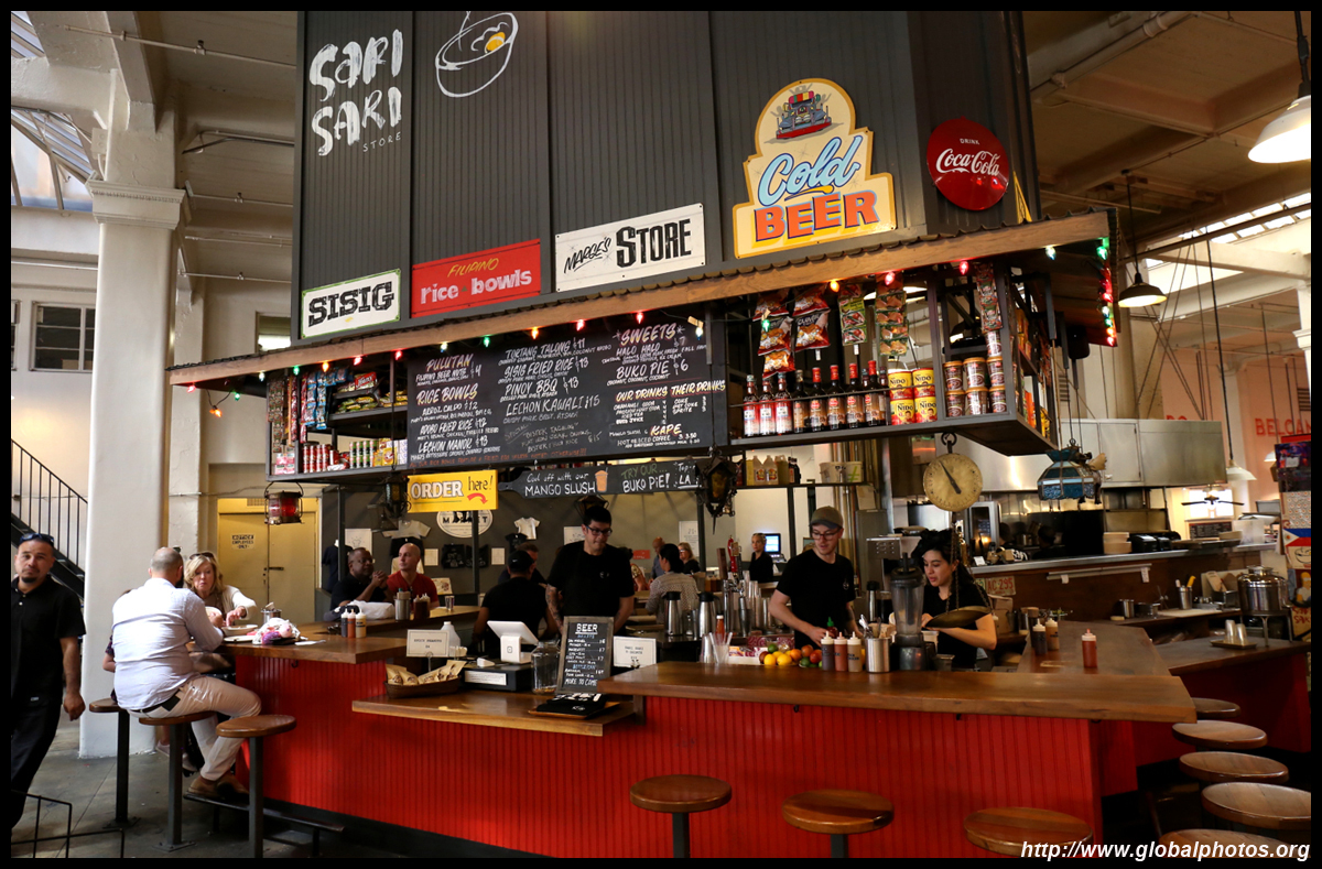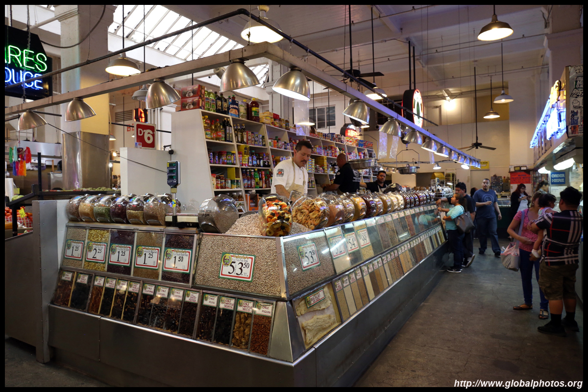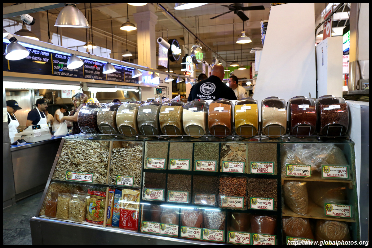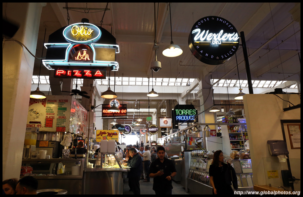 Renovated in 2013, Grand Central Market is quite busy with the lunch crowd. If you can't find a seat near your stall, head downstairs for more tables.
