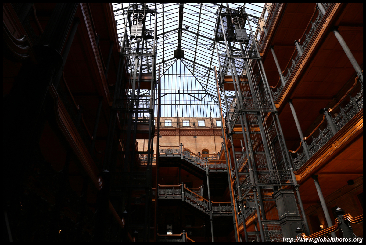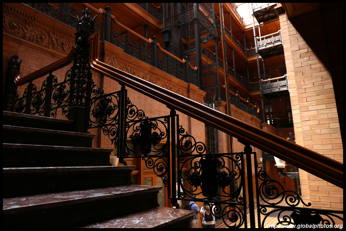While the Bradbury Building across the street looks nothing special, go inside and be amazed. They are used to seeing tourists so there are signs everywhere telling where you cannot go, which is pretty much anything above the ground floor, although the staircases are fine. Gaze at the interior courtyard, stair railings, and birdcage elevators for their details.