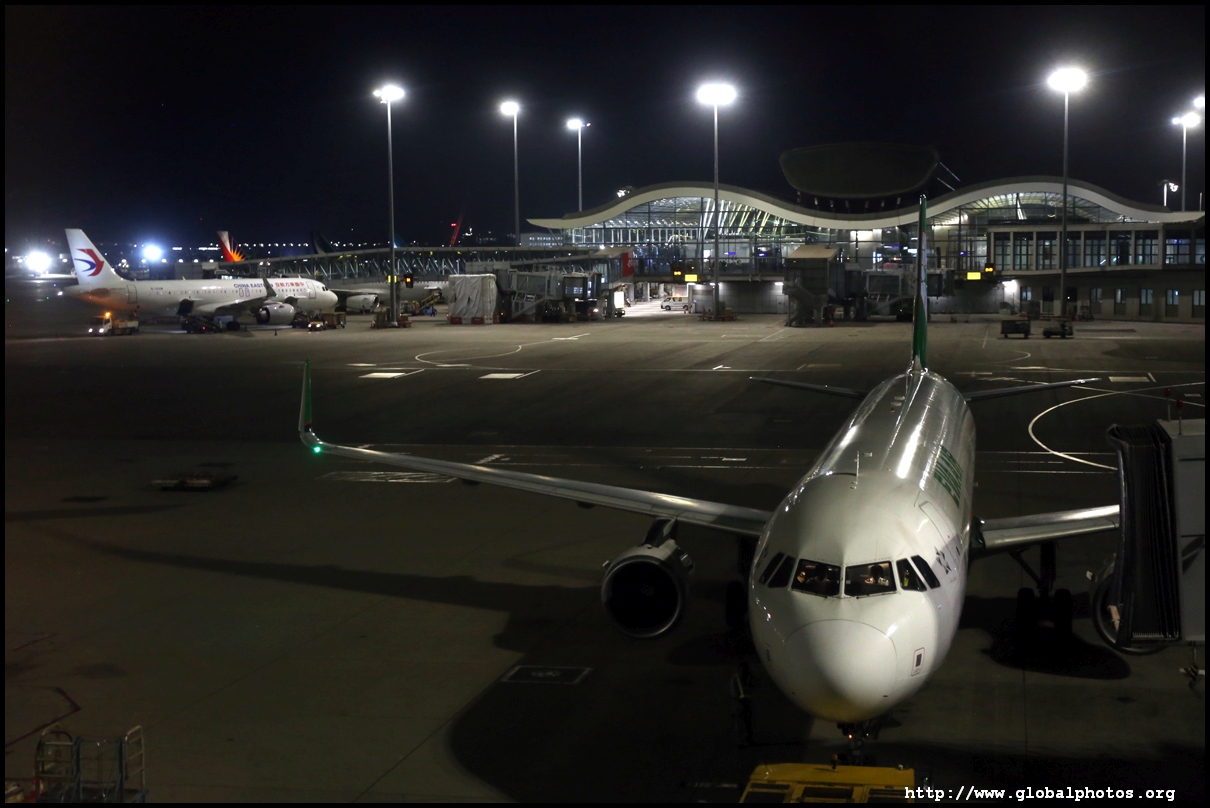 I could barely see the ground as we came in and was surprised we met the minimums. We landed at 6:09am and pulled into the E gates. The temperature hovered around freezing and it was very foggy. The sun had not yet risen and it felt like a world away from Hong Kong's warm winter.