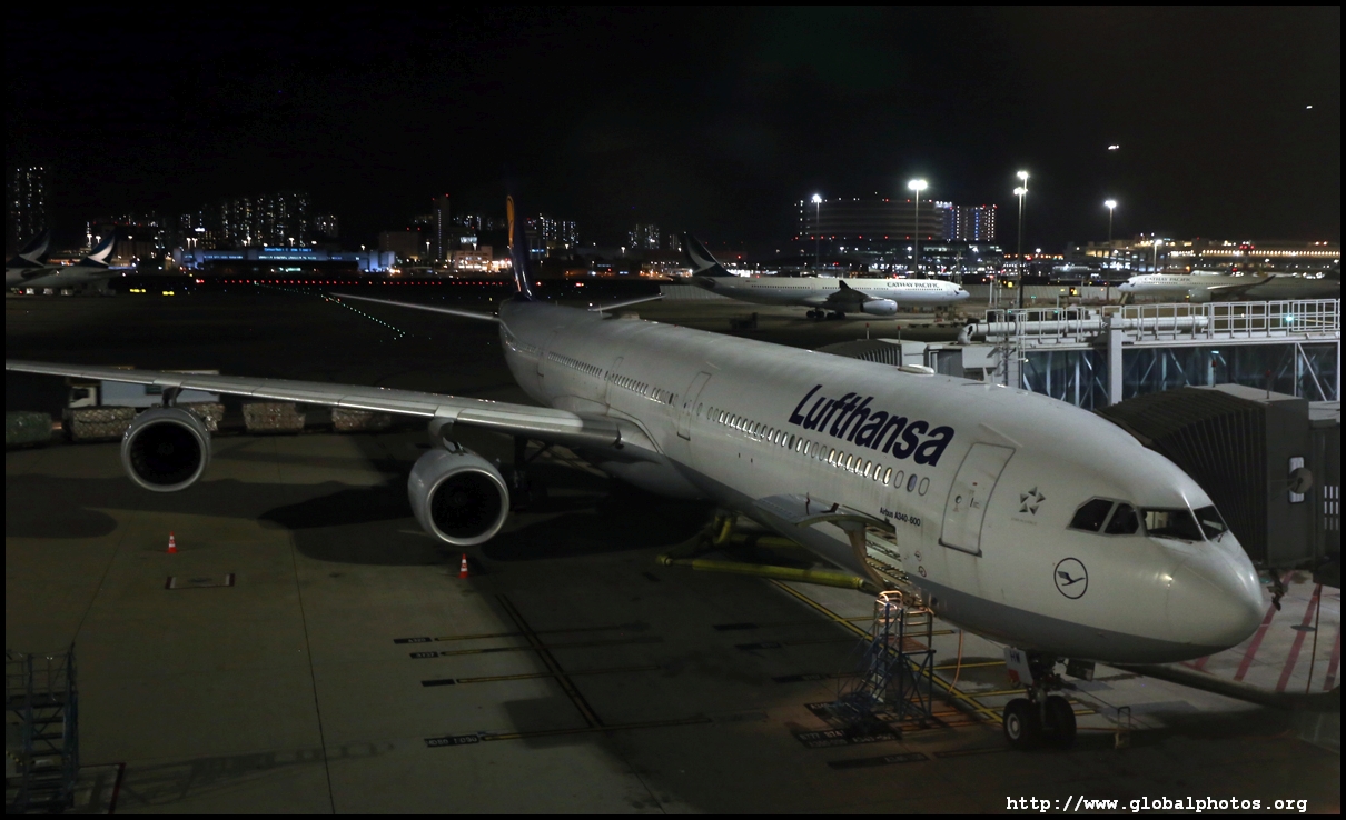 Both Swiss and Lufthansa fly their A340 jets to Hong Kong and are parked next to each other tonight. The gate area was quite busy with a lot of people seated.