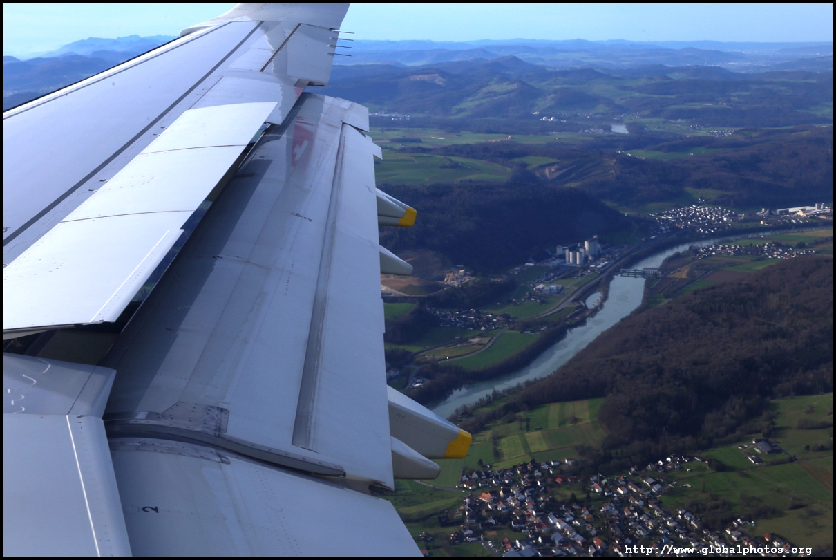 The hour and a little bit passed by uneventually and soon we started to descend into a sunnier sky. I could see snow-capped mountains in the distance, which suggests Switzerland is within grasp!