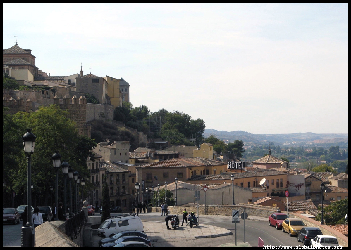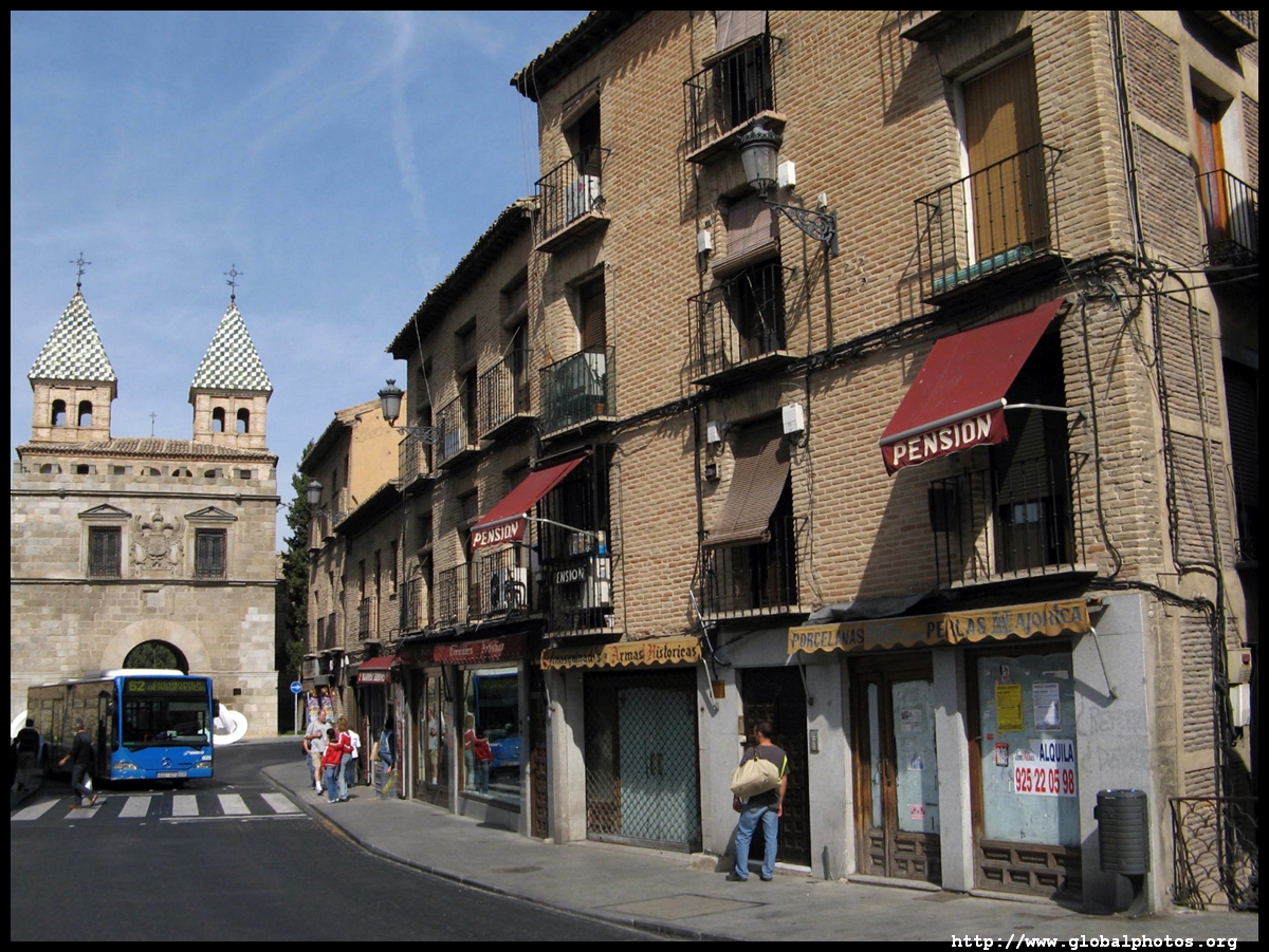 The Puerta del Sol dates from the 14th century and is somewhat overshadowed by the road next to it today.