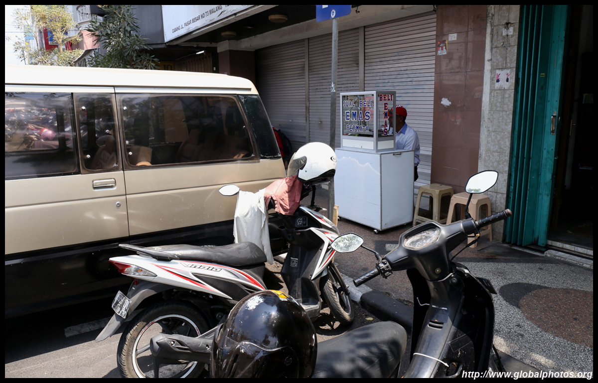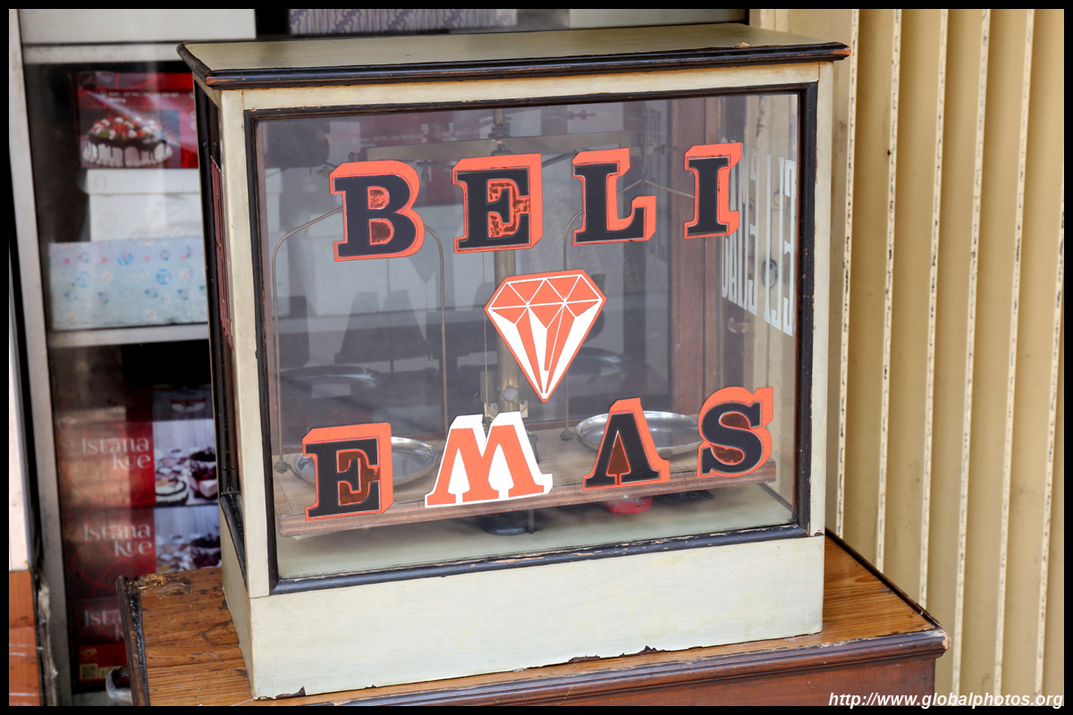 Outside, there is a lot of commercial activity on the main street, including a number of gold merchants with weights.
