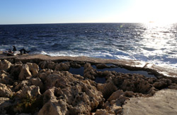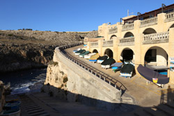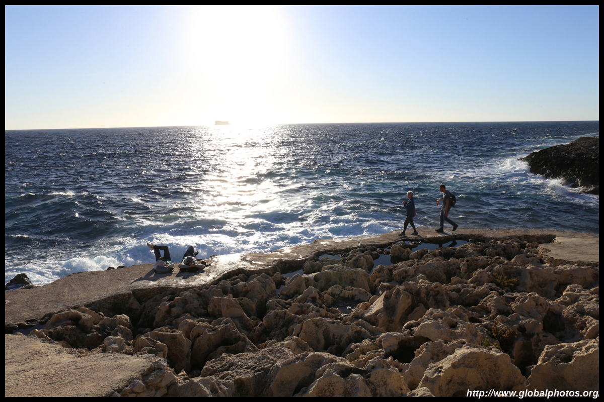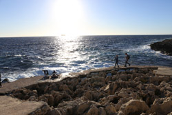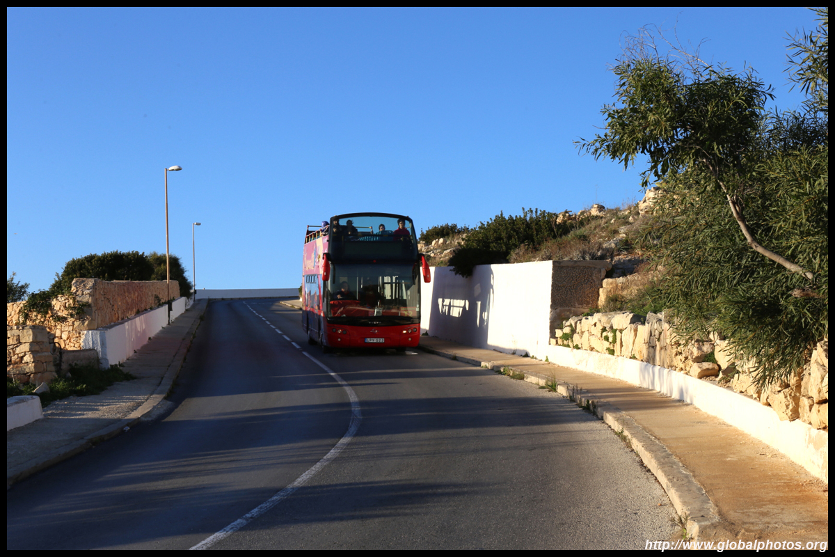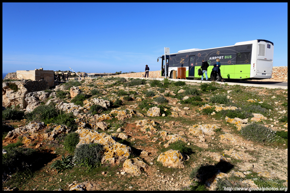 By now, it was late afternoon. Bus 74 continues from the temples to Blue Grotto, a beautiful natural attraction for the sunset. Boat tours depart from the small town down the hill, but you can enjoy views from above at the Panorama bus stop further uphill.