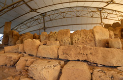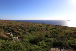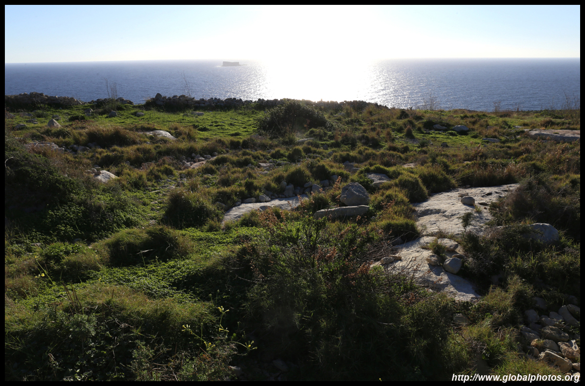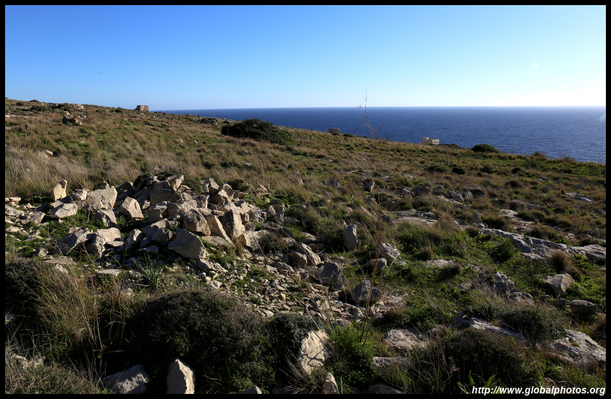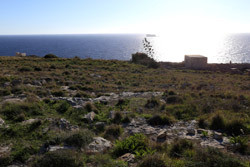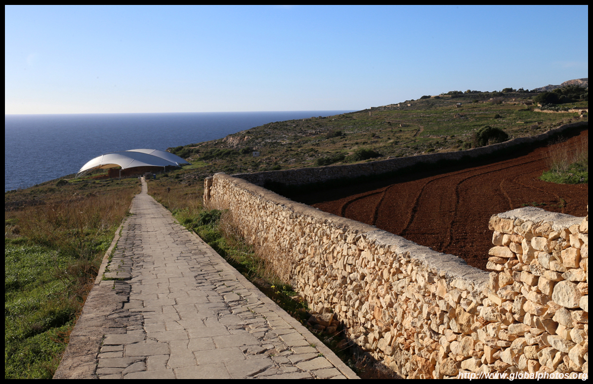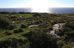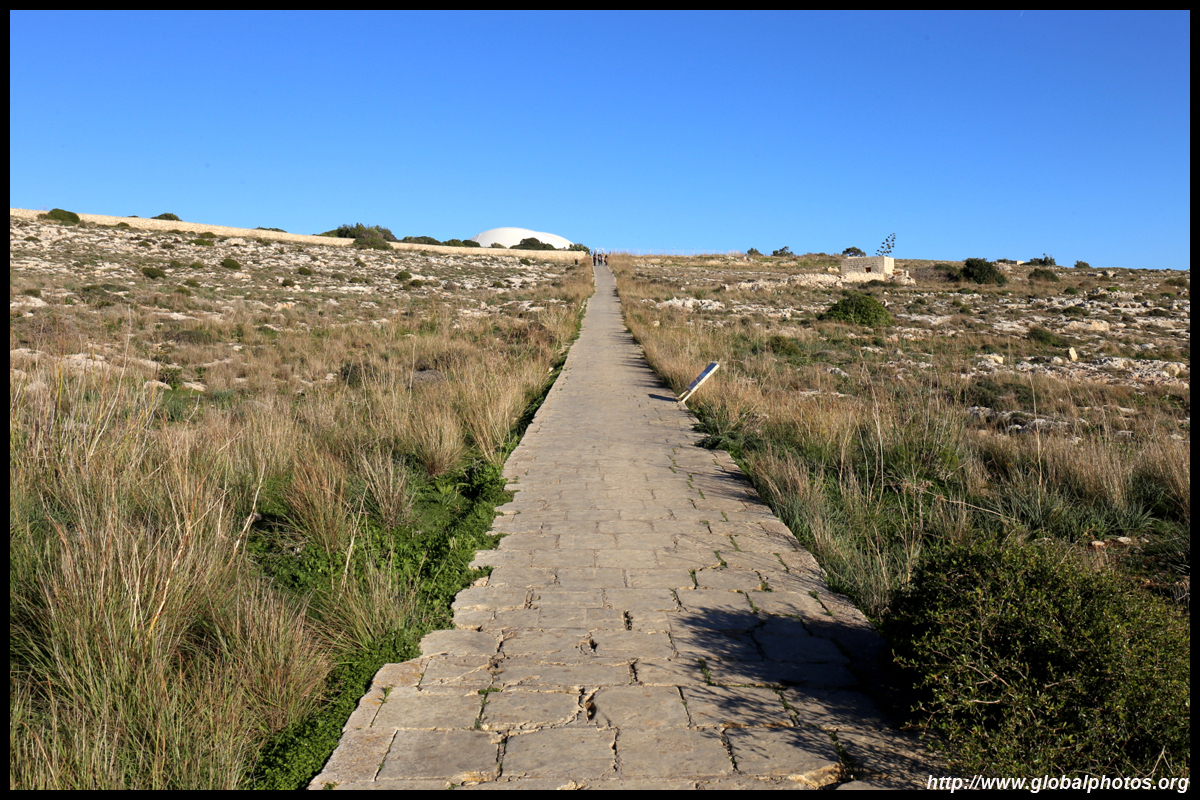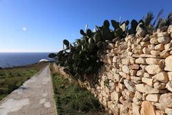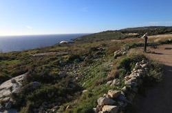 Both temples overlook the sea. From Hagar Qim, a paved path heads downhill to the second temple, Mnajdra.