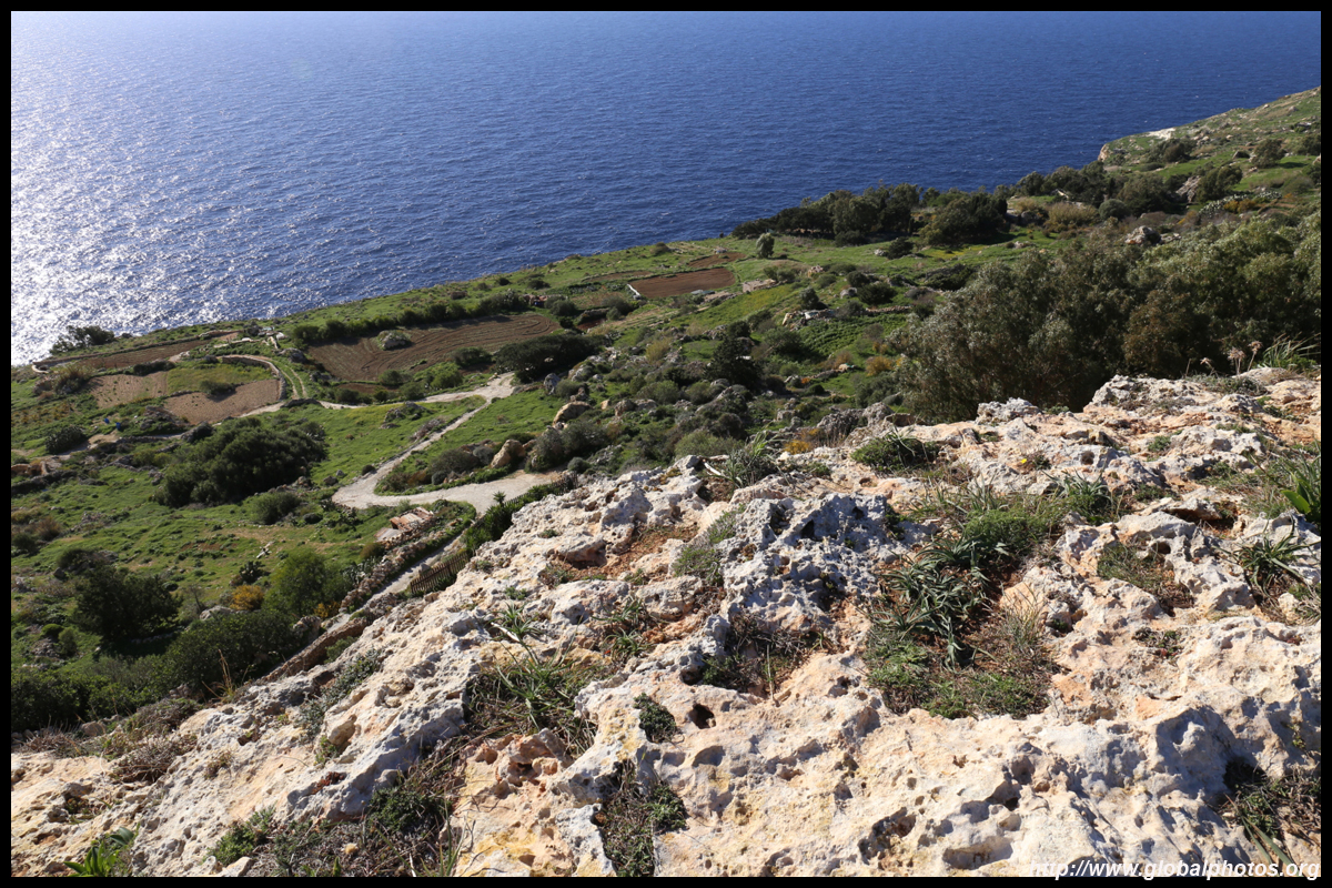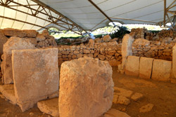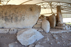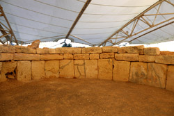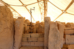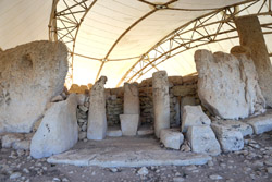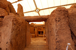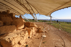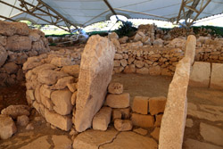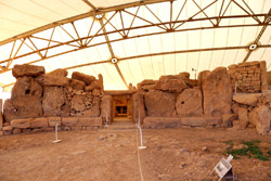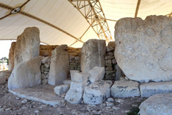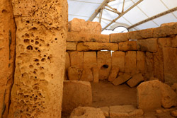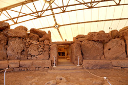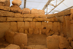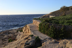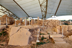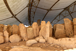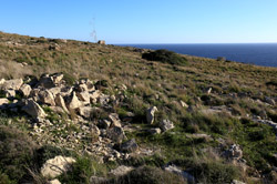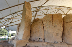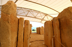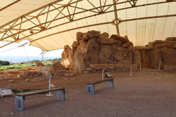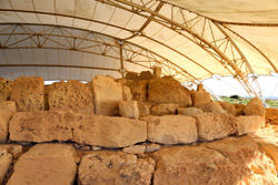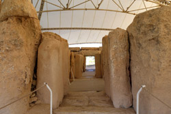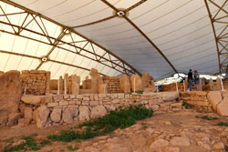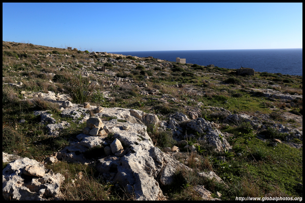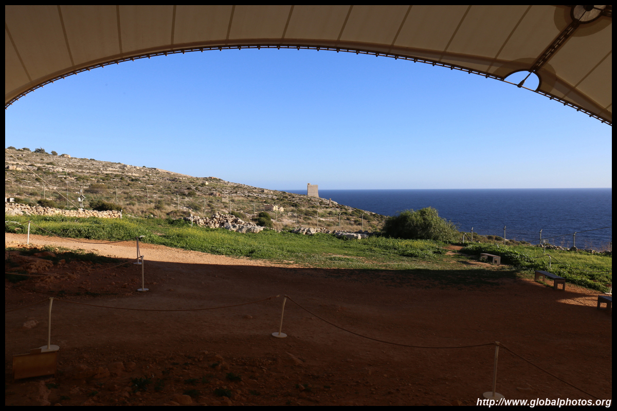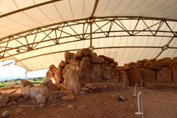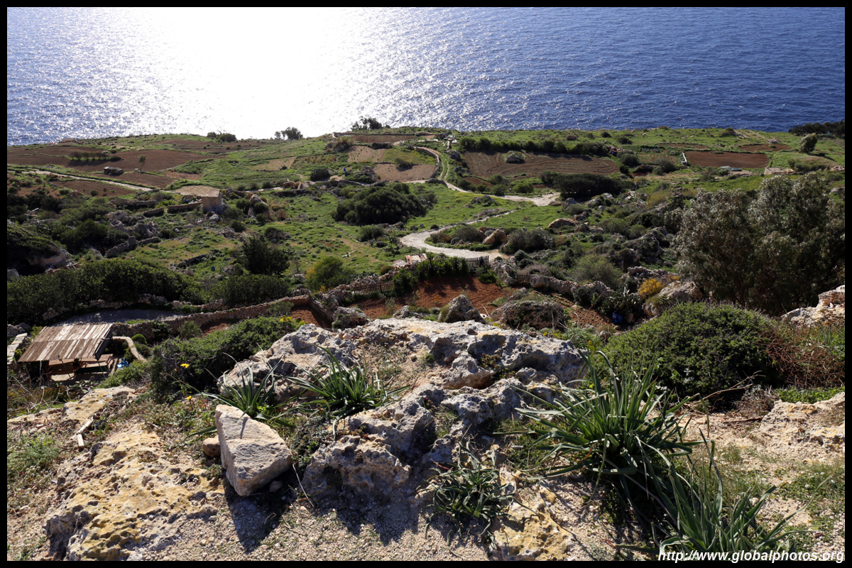 Both temples overlook the sea. From Hagar Qim, a paved path heads downhill to the second temple, Mnajdra.