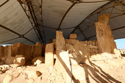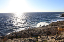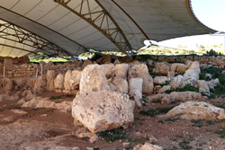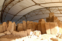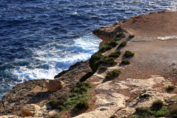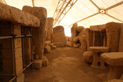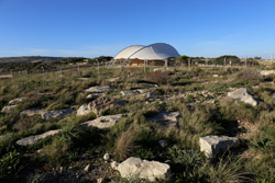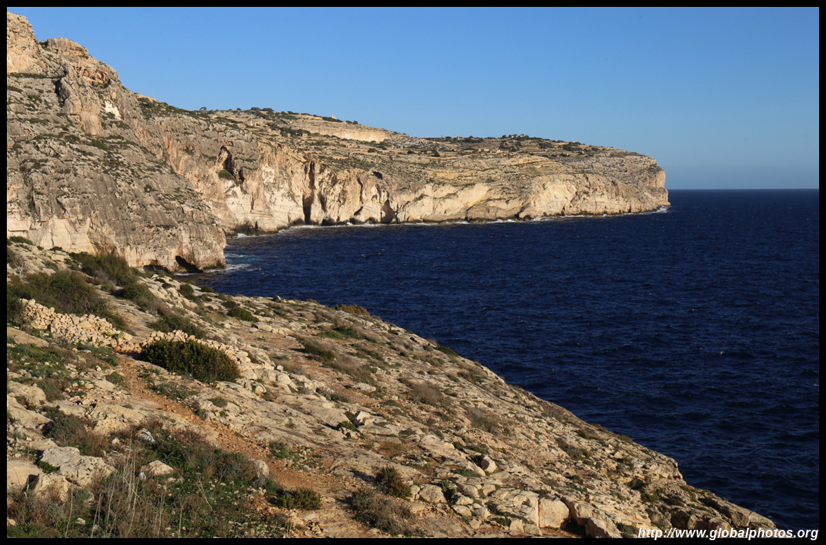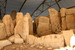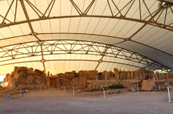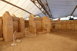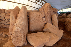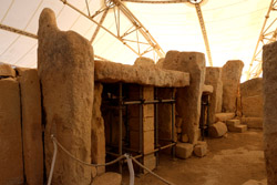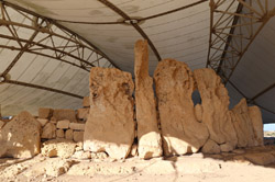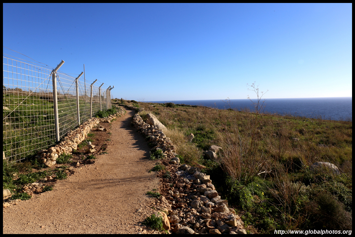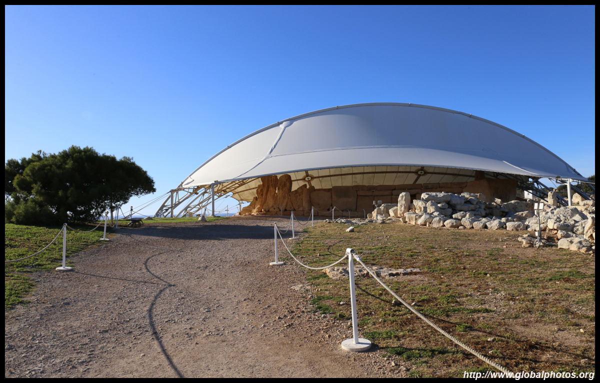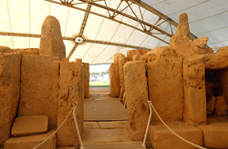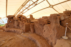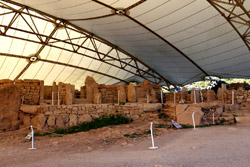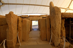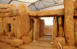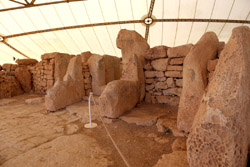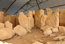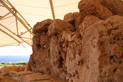 Both temples overlook the sea. From Hagar Qim, a paved path heads downhill to the second temple, Mnajdra.