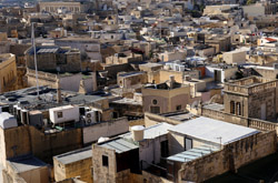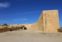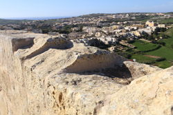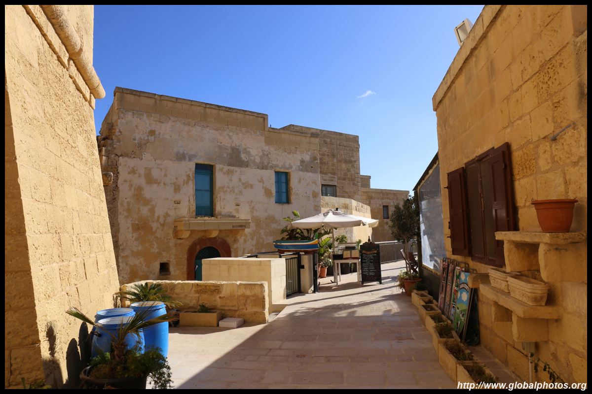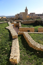 The Citadel is located on a flat-top hill, and has been fortified since the Bronze Age at least. It was so large that in the mid-13th century, the island's population of 366 families could stay inside it. These are the oldest inhabited buildings on the island.