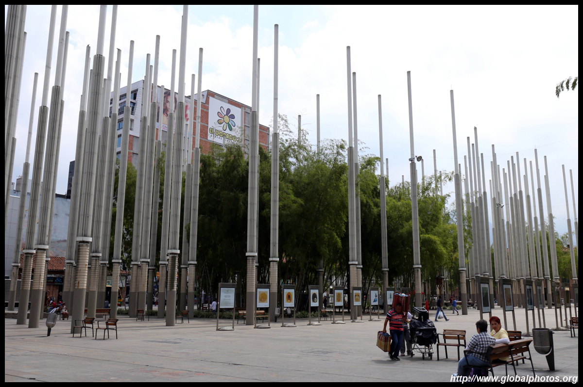 Across the street, Parque de las Luces has a striking assembly of poles, fronted by a large library. It is far more warm and inviting. As part of the city's rebirth, libraries have been built throughout the city, and also in the poorer neighbourhoods, to let knowledge bring people out of poverty.