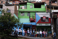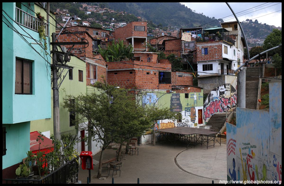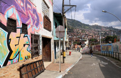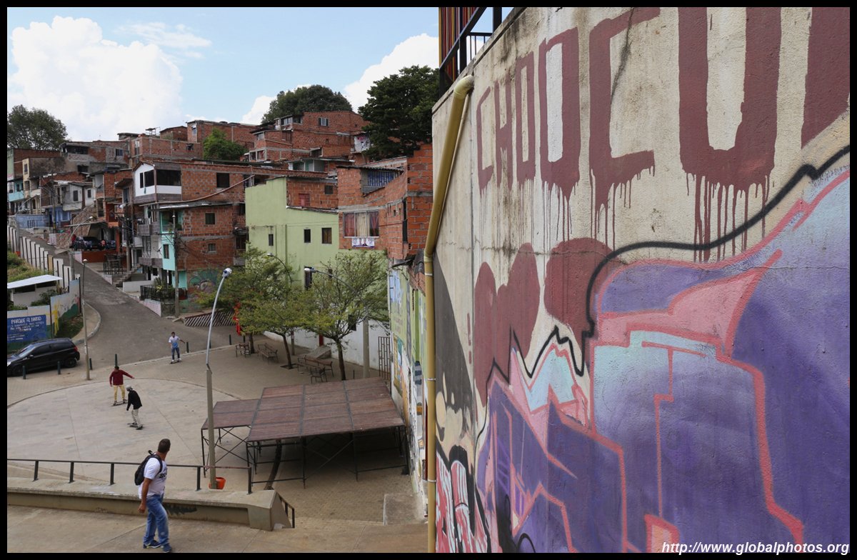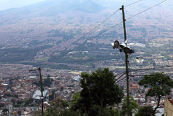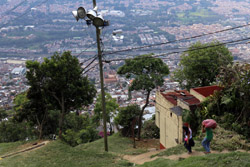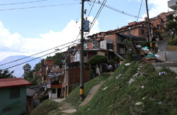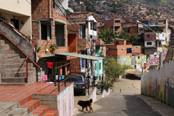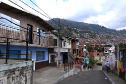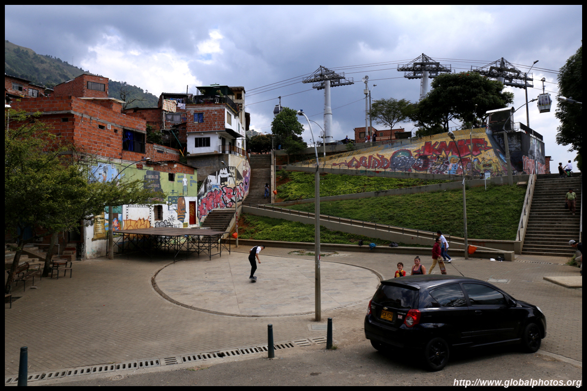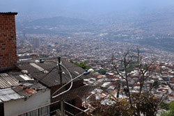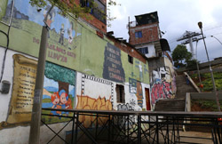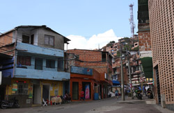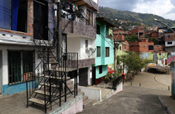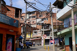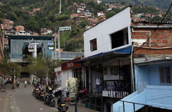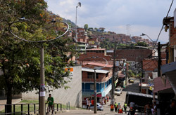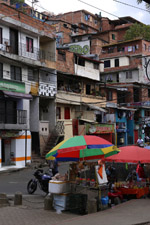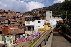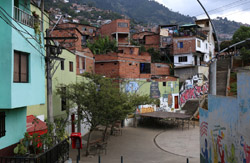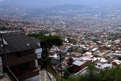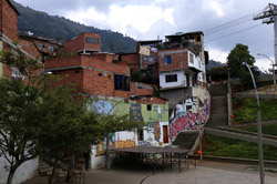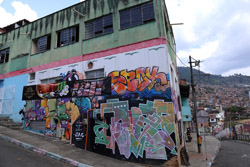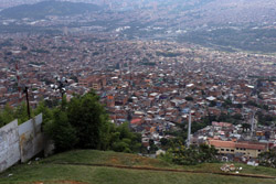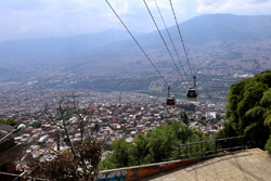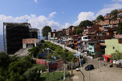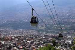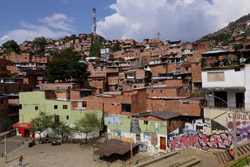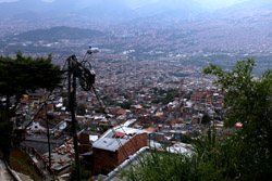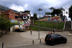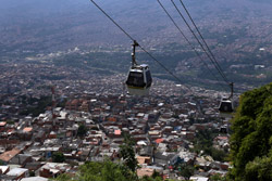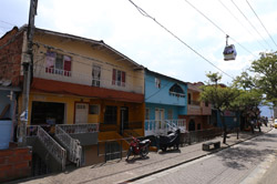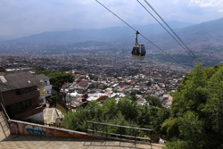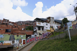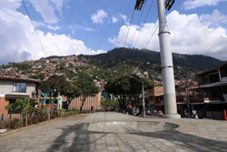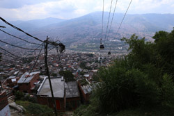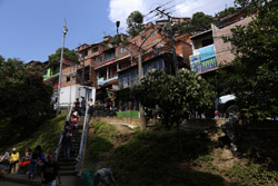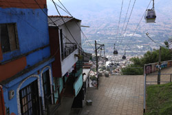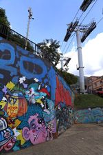 In many cities, hillside locations with city views are prestigious districts where the wealthy call home. This isn't the case for Santo Domingo, which was once a crime-ridden barrio. As part of its rejuvenation, a cable car was built to connect the area with the metro line downhill, hoping better transport will allow residents to find jobs in the city. Having jobs meant less reliance on the drug trade. A library funded by Spain was opened in 2007 near the cable car terminus, although it was closed when I visited.