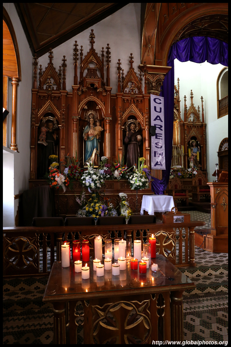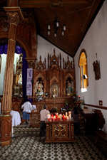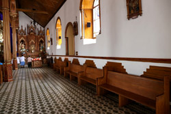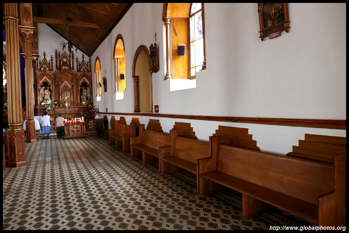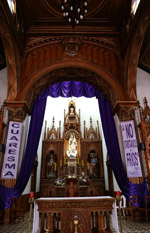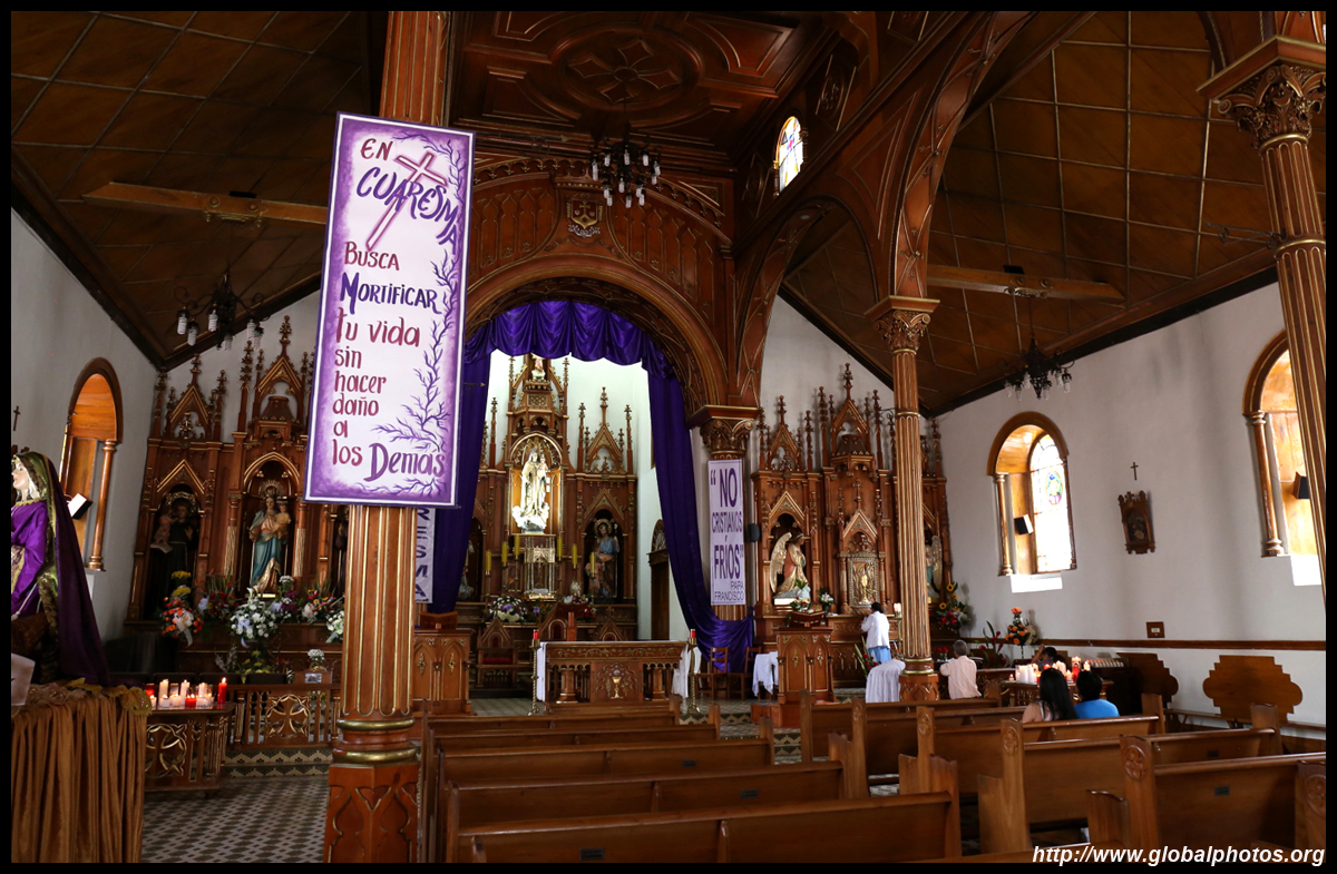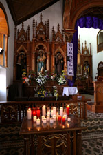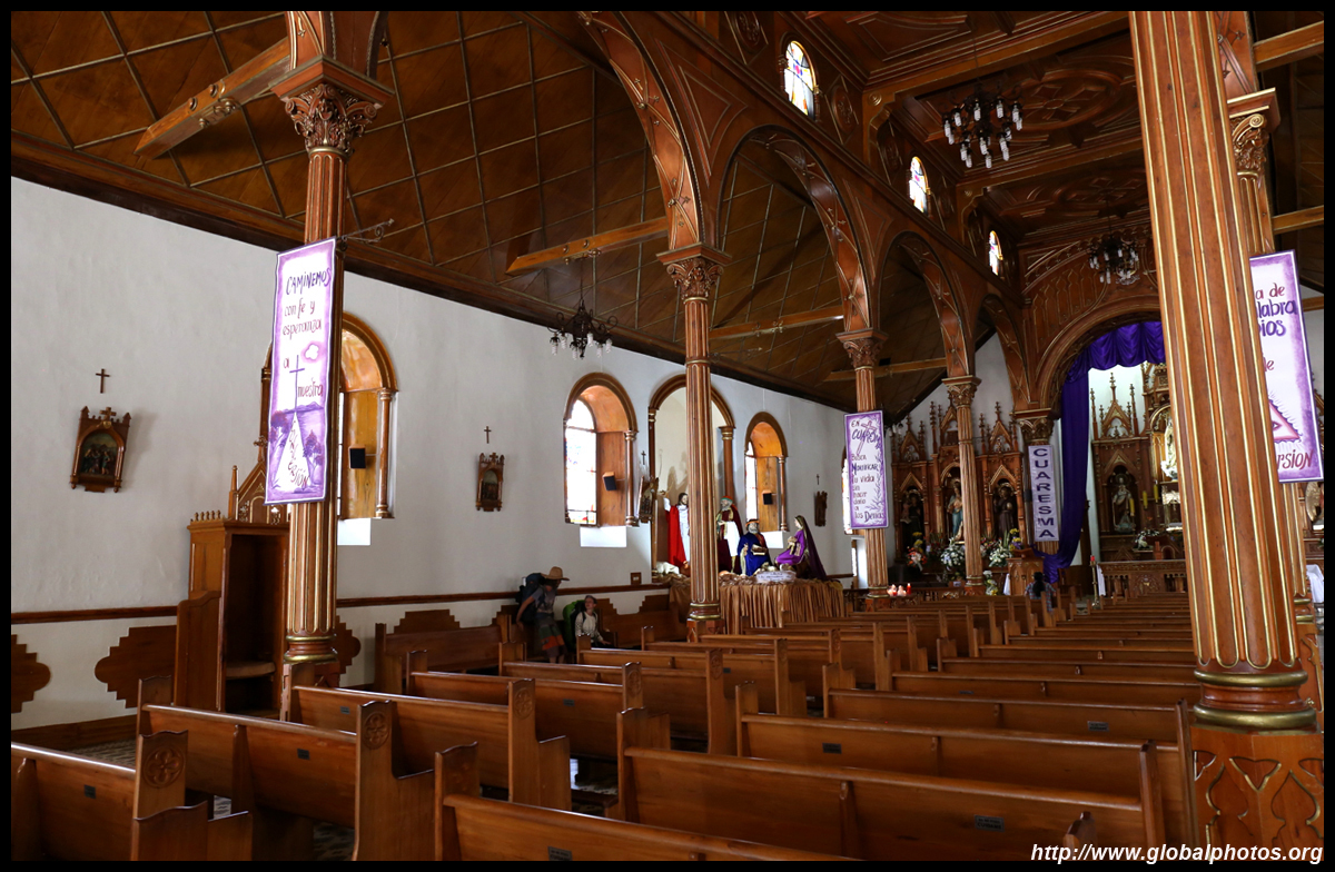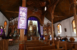 The red and white Greco-Roman Parroquia Nuestra Senora del Carmen sits in the centre of town. Its interiors are heavily decorated in wood.