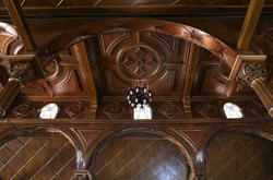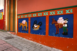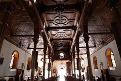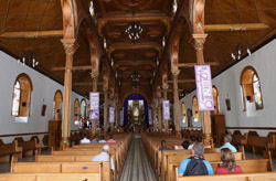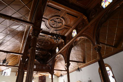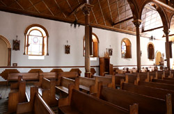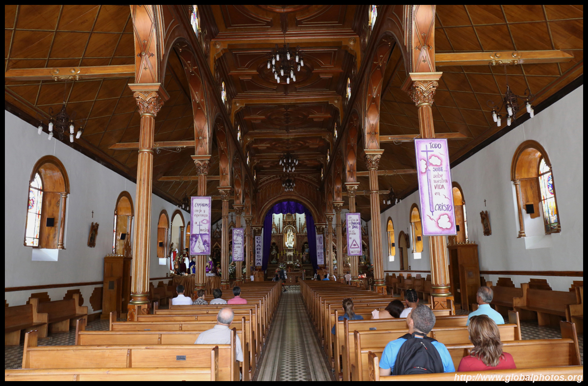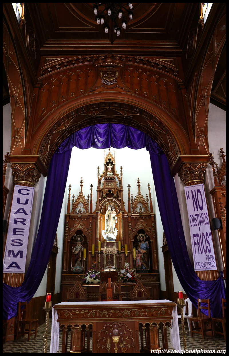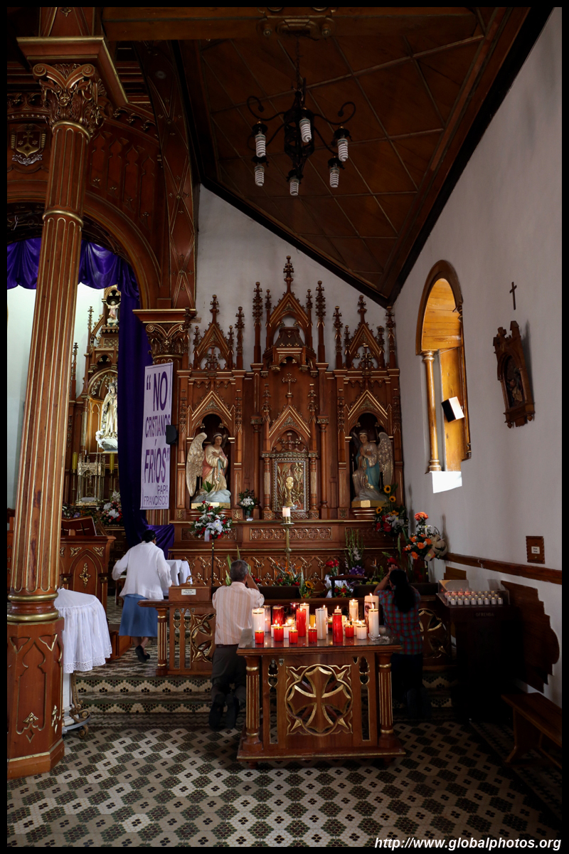The red and white Greco-Roman Parroquia Nuestra Senora del Carmen sits in the centre of town. Its interiors are heavily decorated in wood.