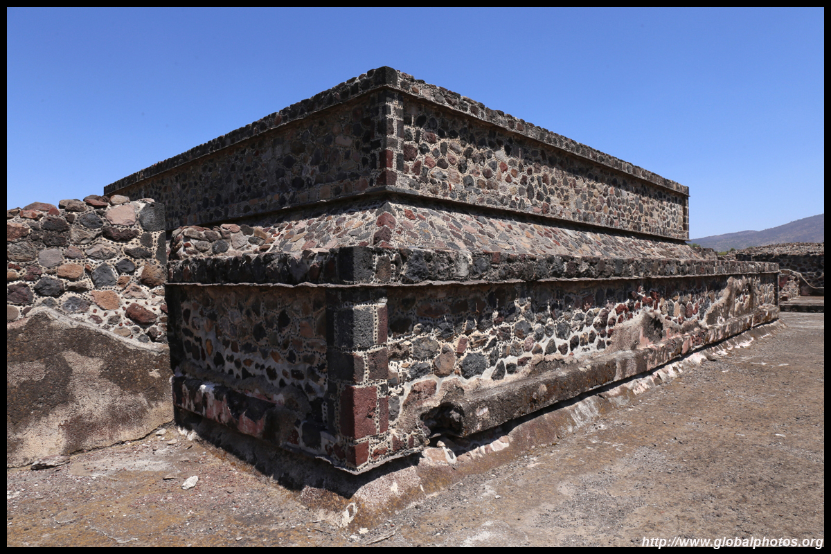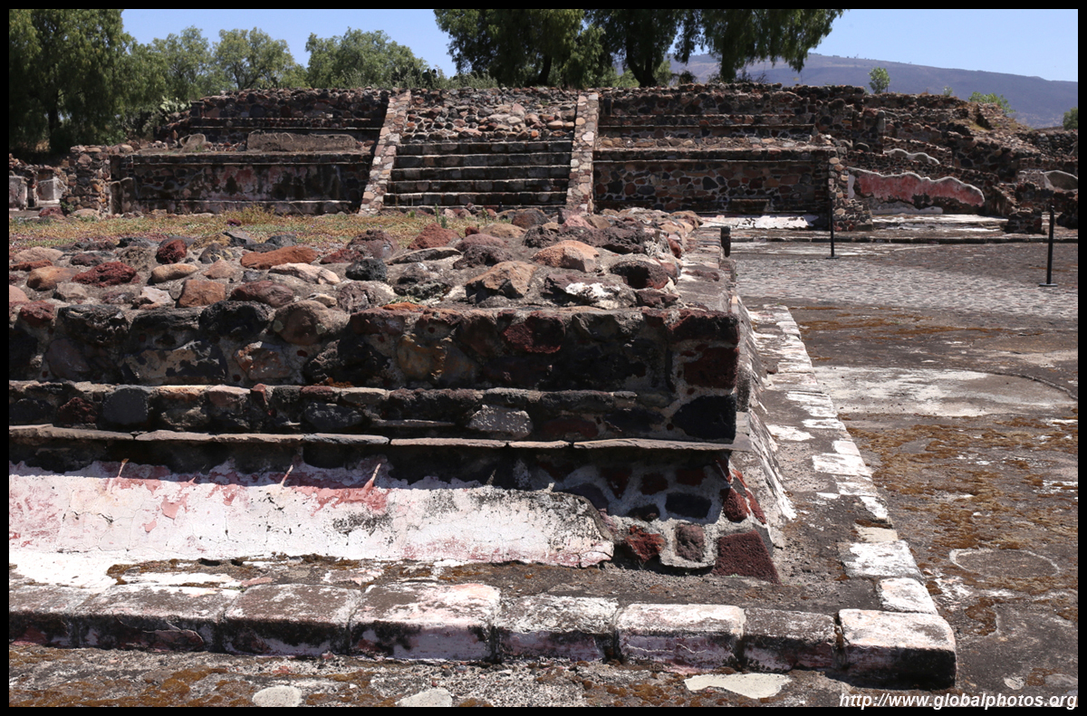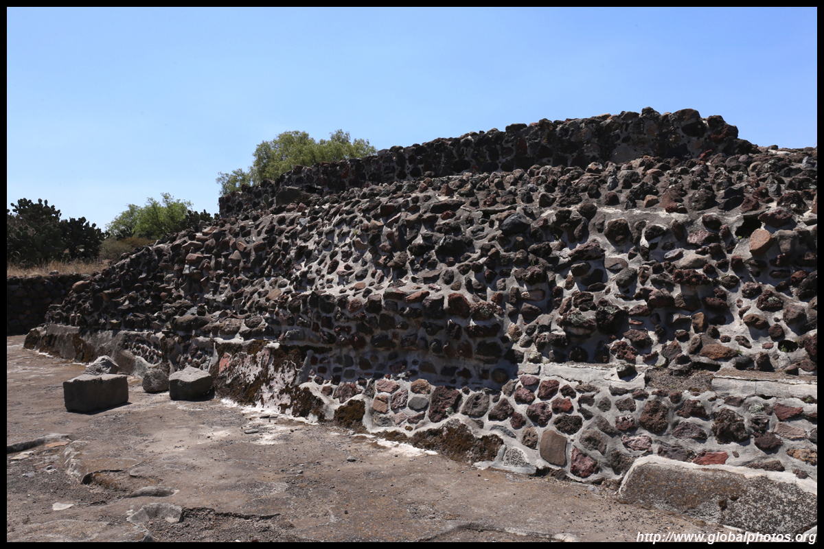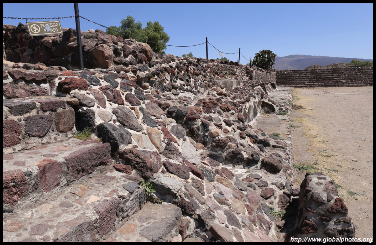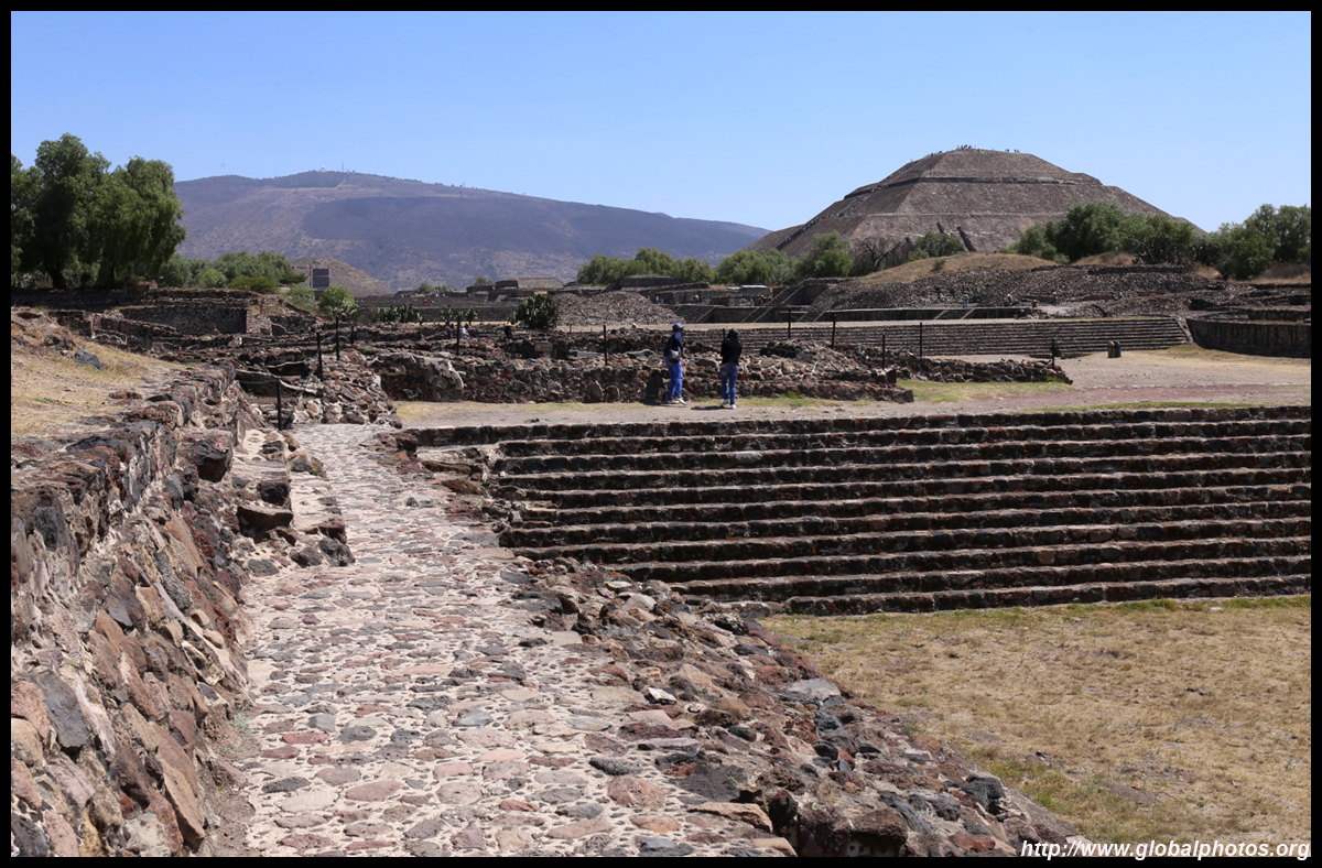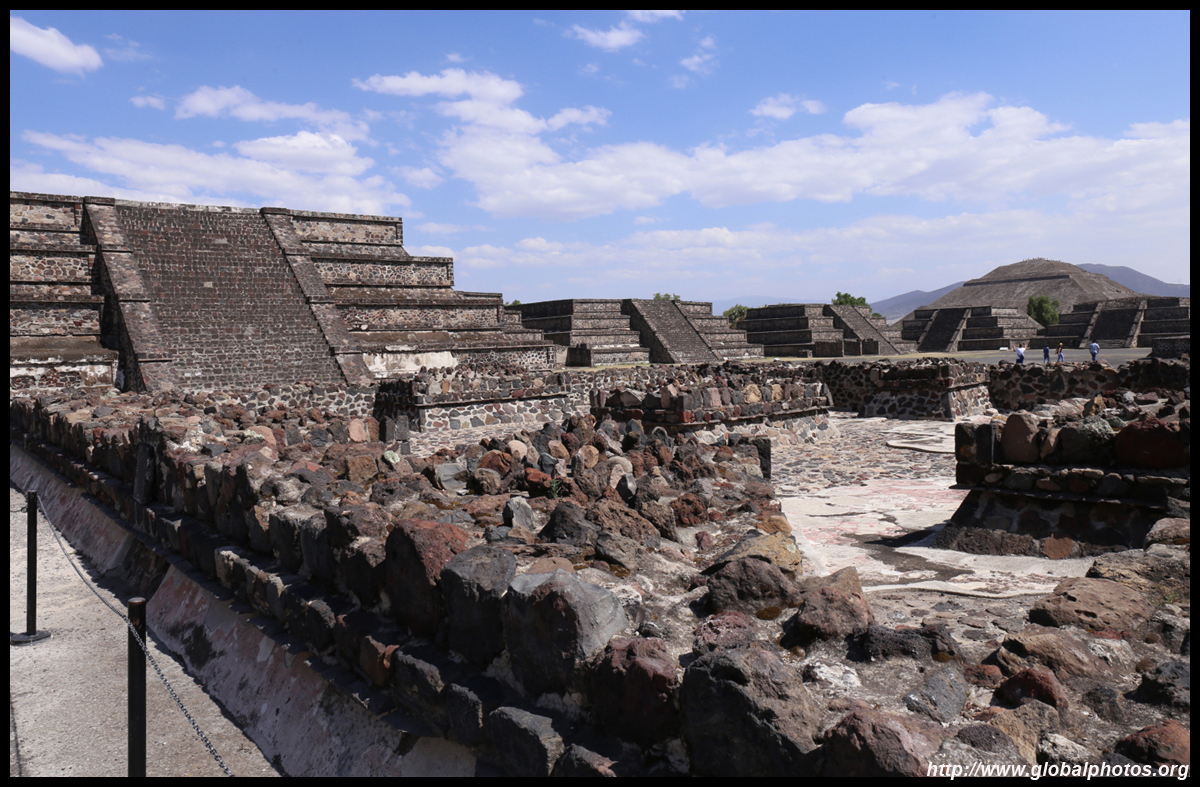 The Piramide de la Luna marks the end of the causeway and a long walk under the sun. Although a shorter pyramid, due to its higher elevation, the top is actually level with the Piramide del Sol.