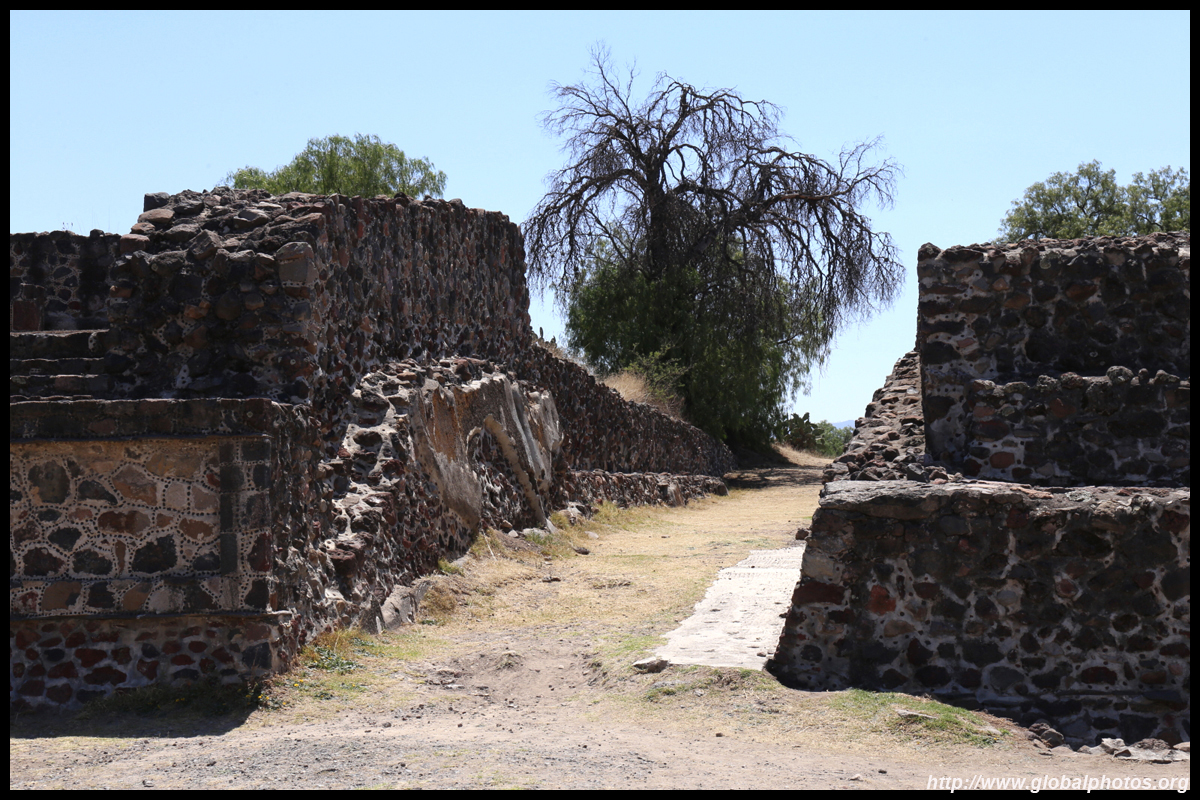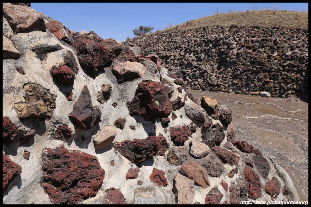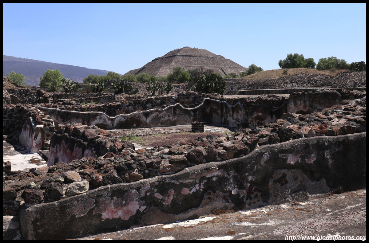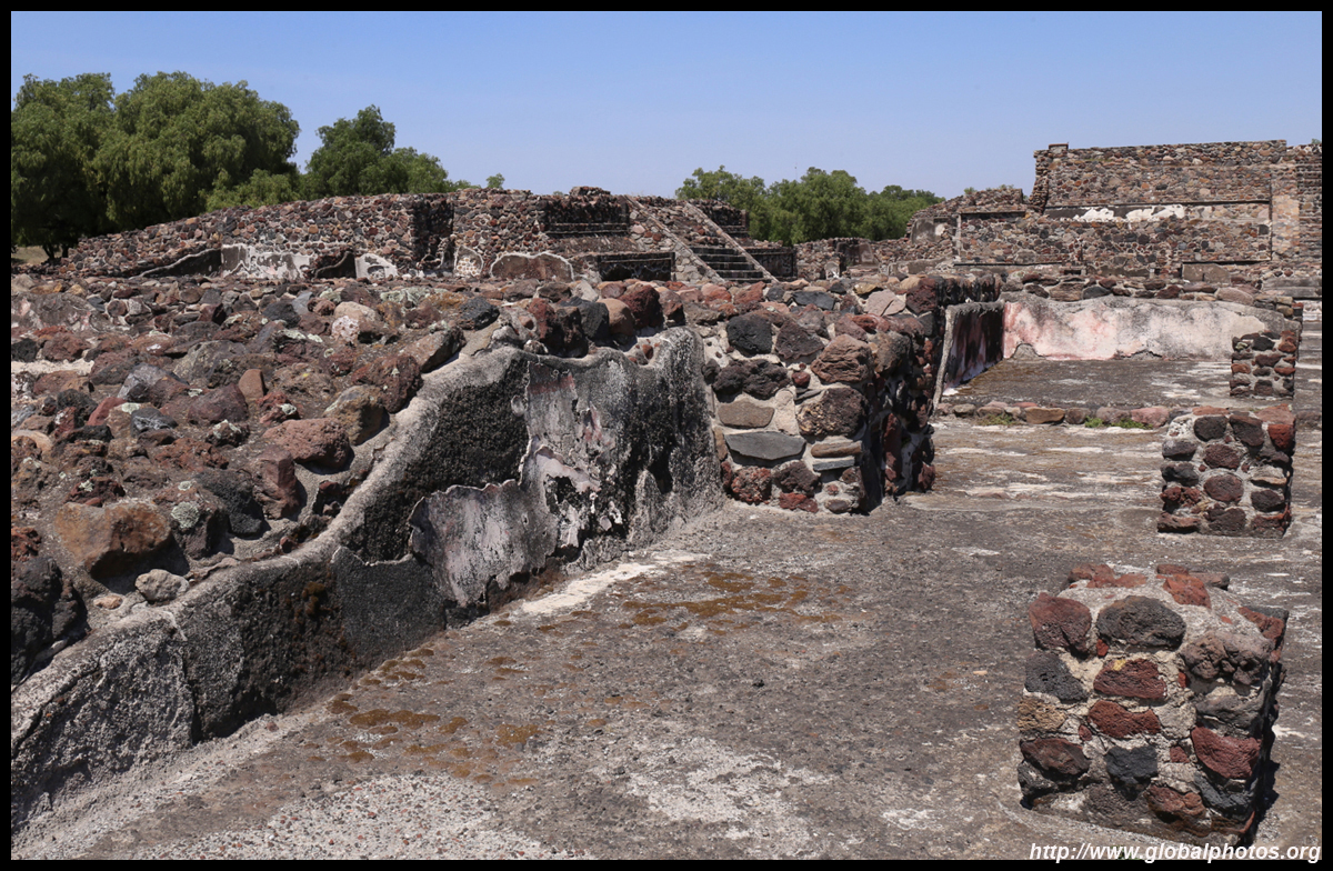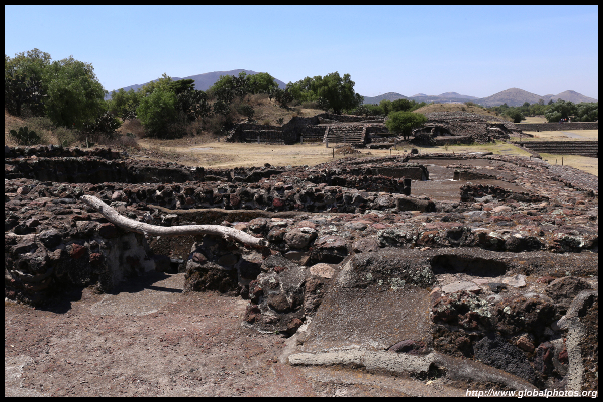 The Piramide de la Luna marks the end of the causeway and a long walk under the sun. Although a shorter pyramid, due to its higher elevation, the top is actually level with the Piramide del Sol.