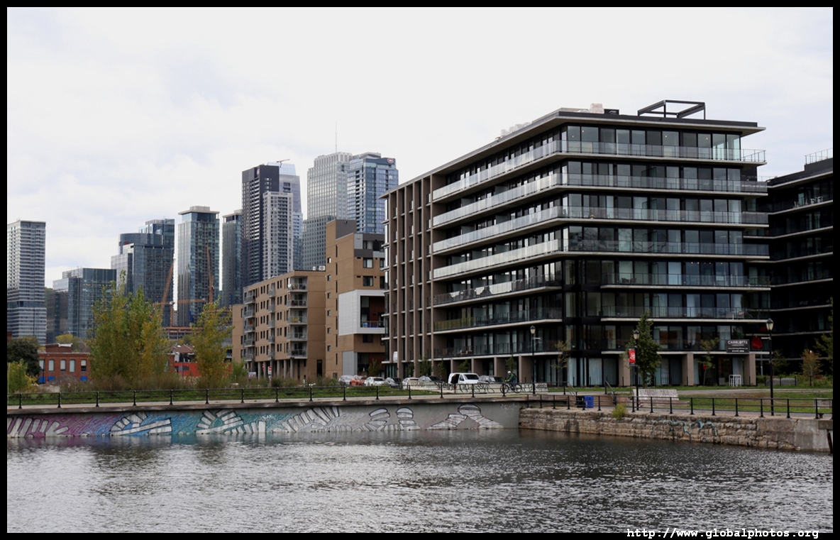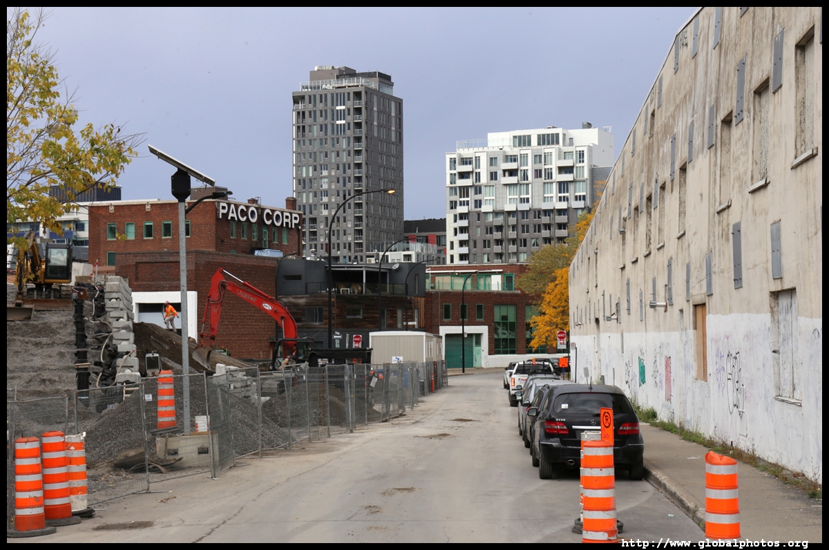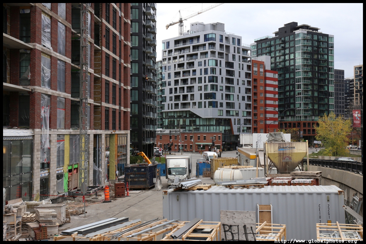 Griffintown grew in the early 19th century and was once home to many Irish labourers. Lately, young professionals have moved in, with the 2-storey workman's houses being replaced by tall condo towers.