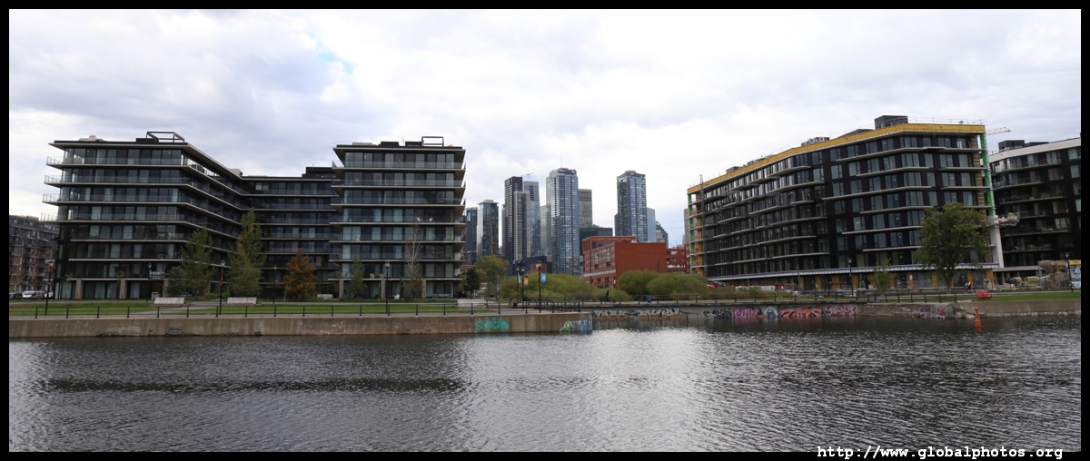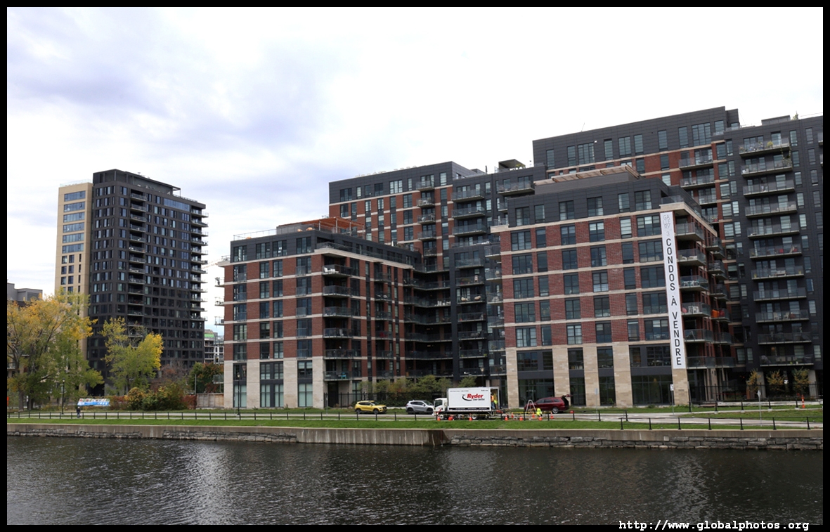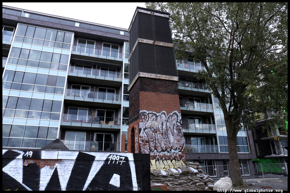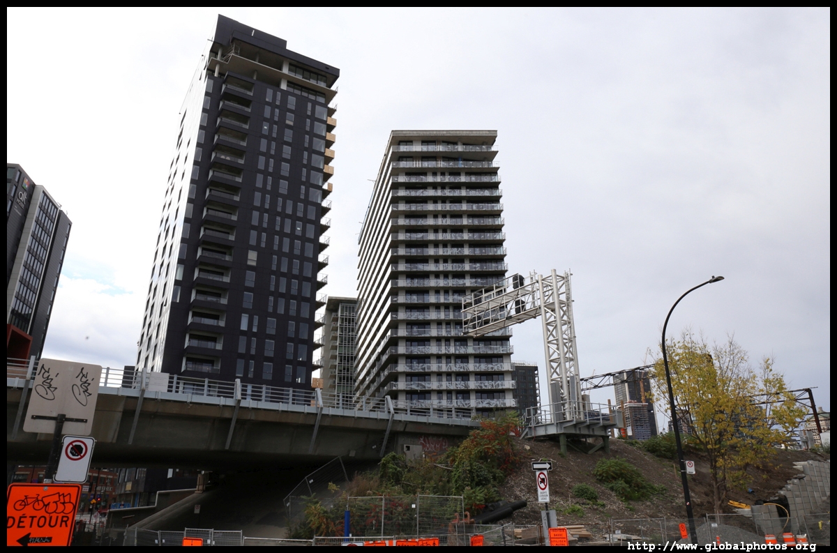 Griffintown grew in the early 19th century and was once home to many Irish labourers. Lately, young professionals have moved in, with the 2-storey workman's houses being replaced by tall condo towers.