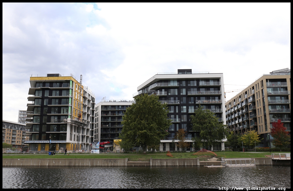 The redevelopment stops past Wellington as the canal opens up into the Bassin Peel.