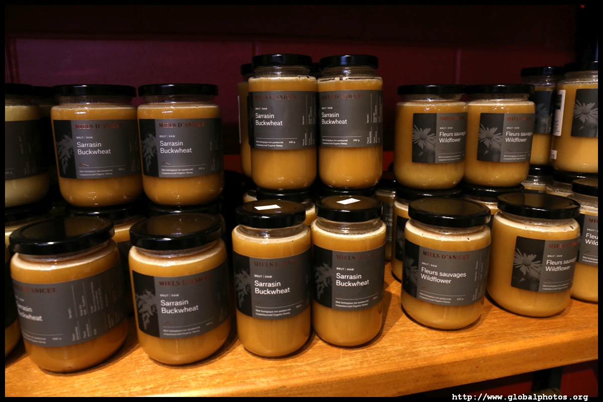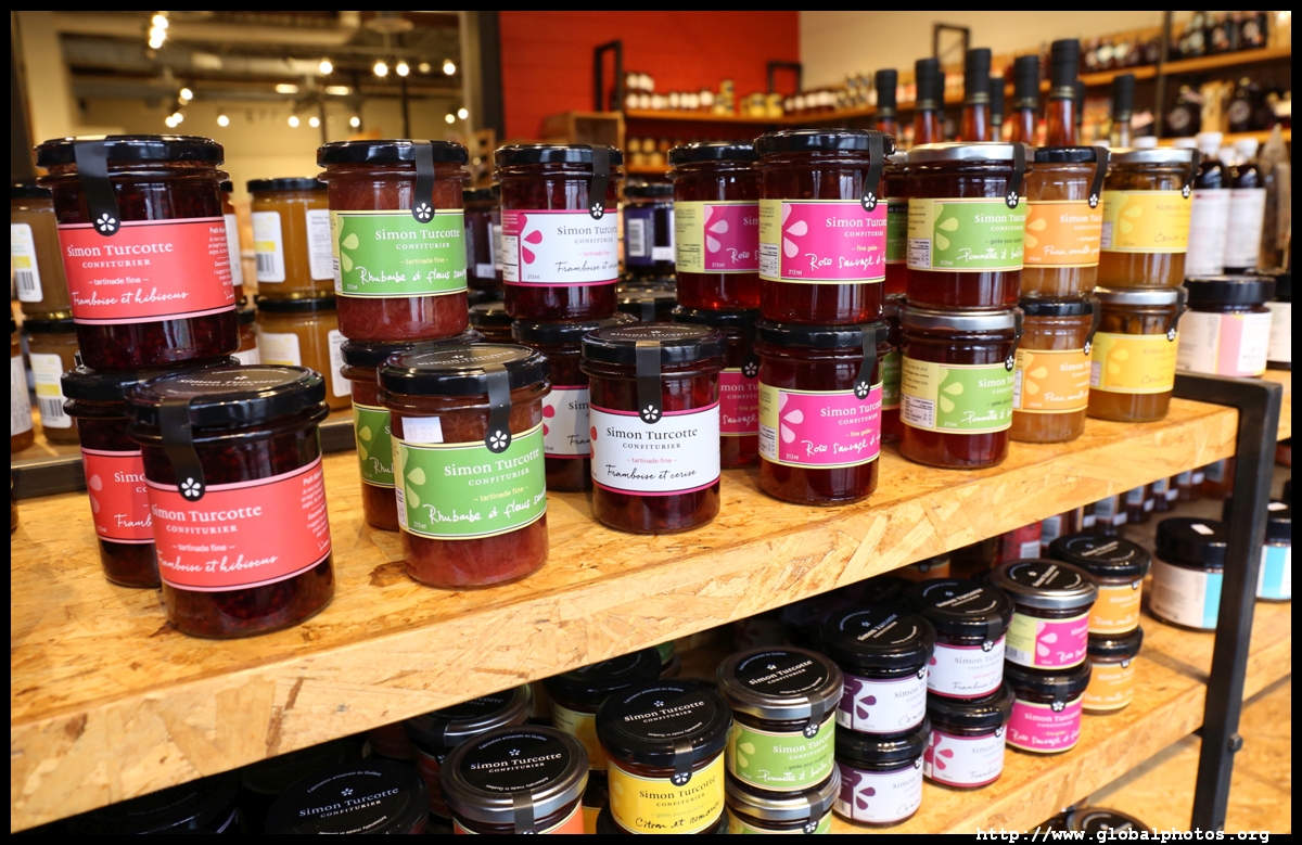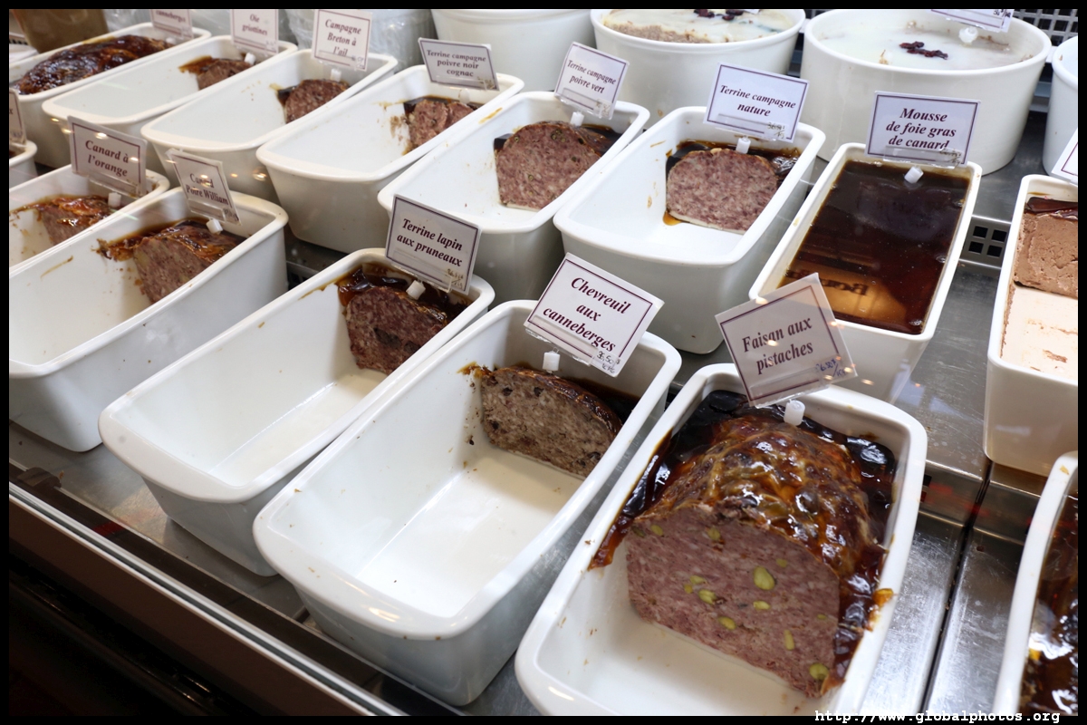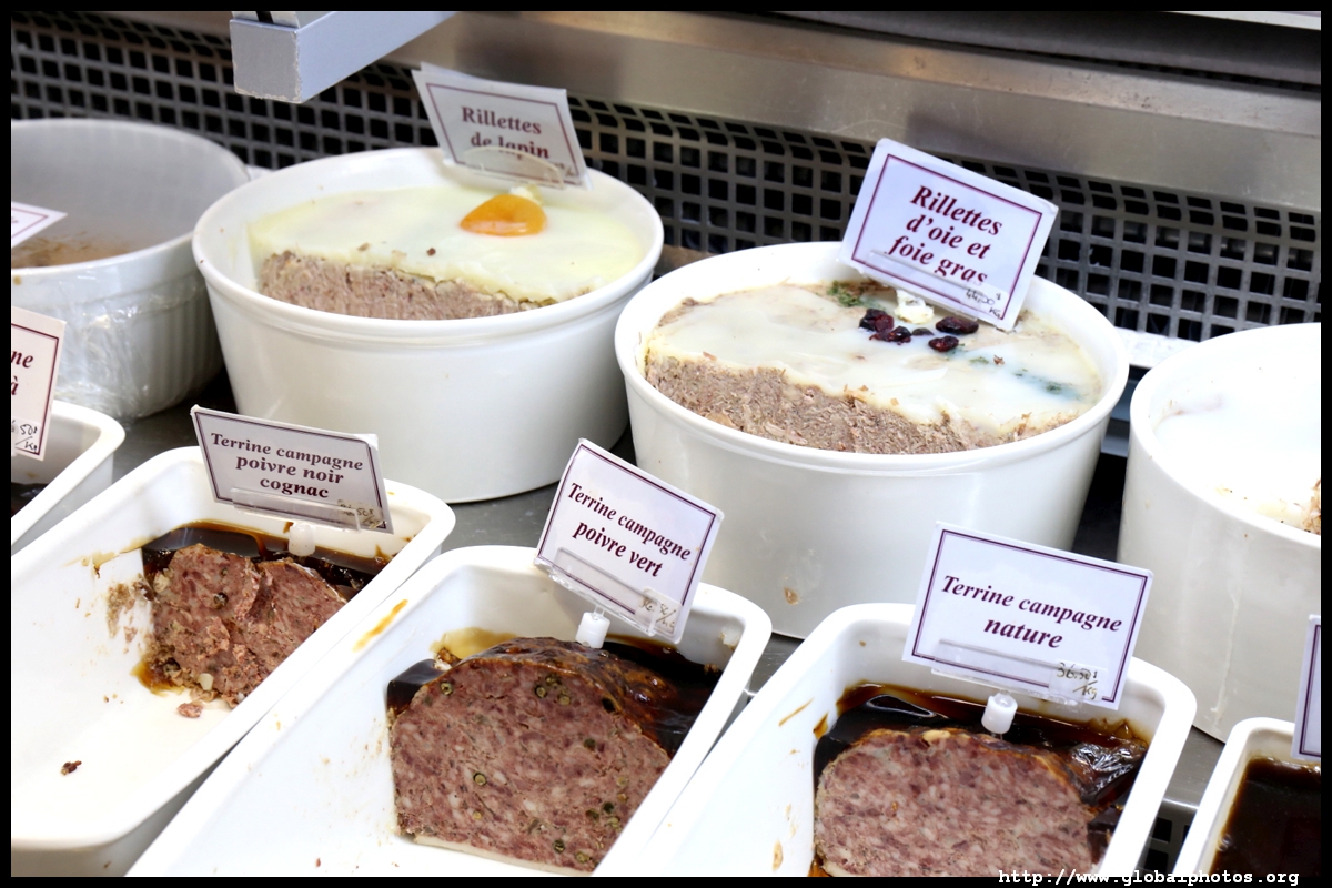 Inside and warming up, I found many shops selling meats, foie gras, preserves, and baked goods.