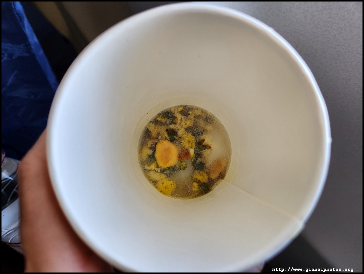 A hot meal was served although there was only 1 option - pork rice. I asked for a tea and it was surprisingly refreshing. It's actually a chrystanthemum tea, which Cathay doesn't offer.