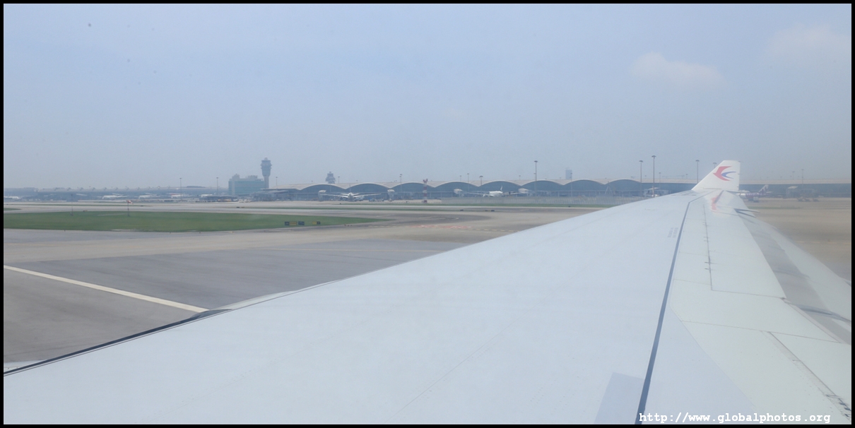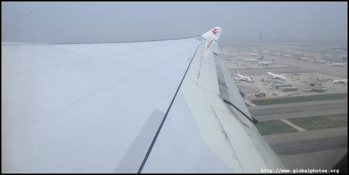 The check-in agent had asked whether I wanted to move up with an aisle seat after failing to get me a window, which I kindly declined so I kept my originally-assigned aisle seat. My seatmate agreed to switch with me so I made the best of the huge wing in front. The reason why I wanted the window so much is because the approach into Hongqiao should command a very decent skyline view since it's so close to the city. We pushed back at 1:01pm and made a short taxi to take off towards the west.