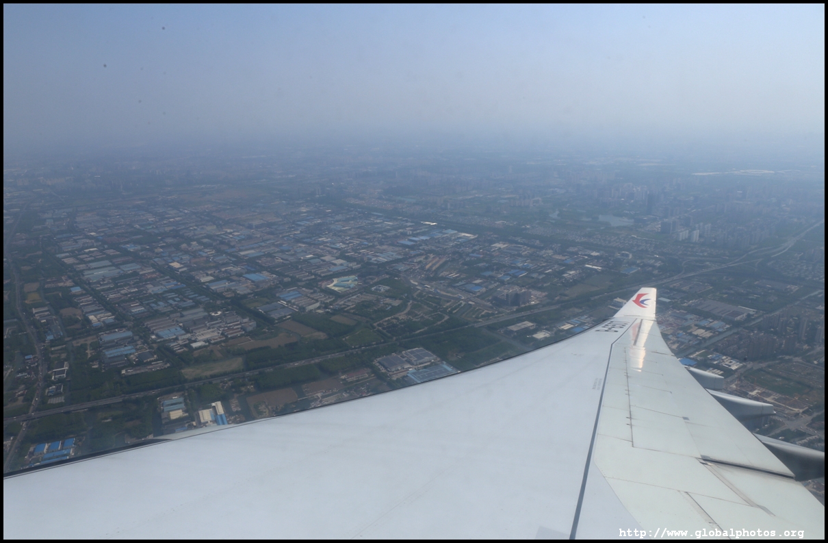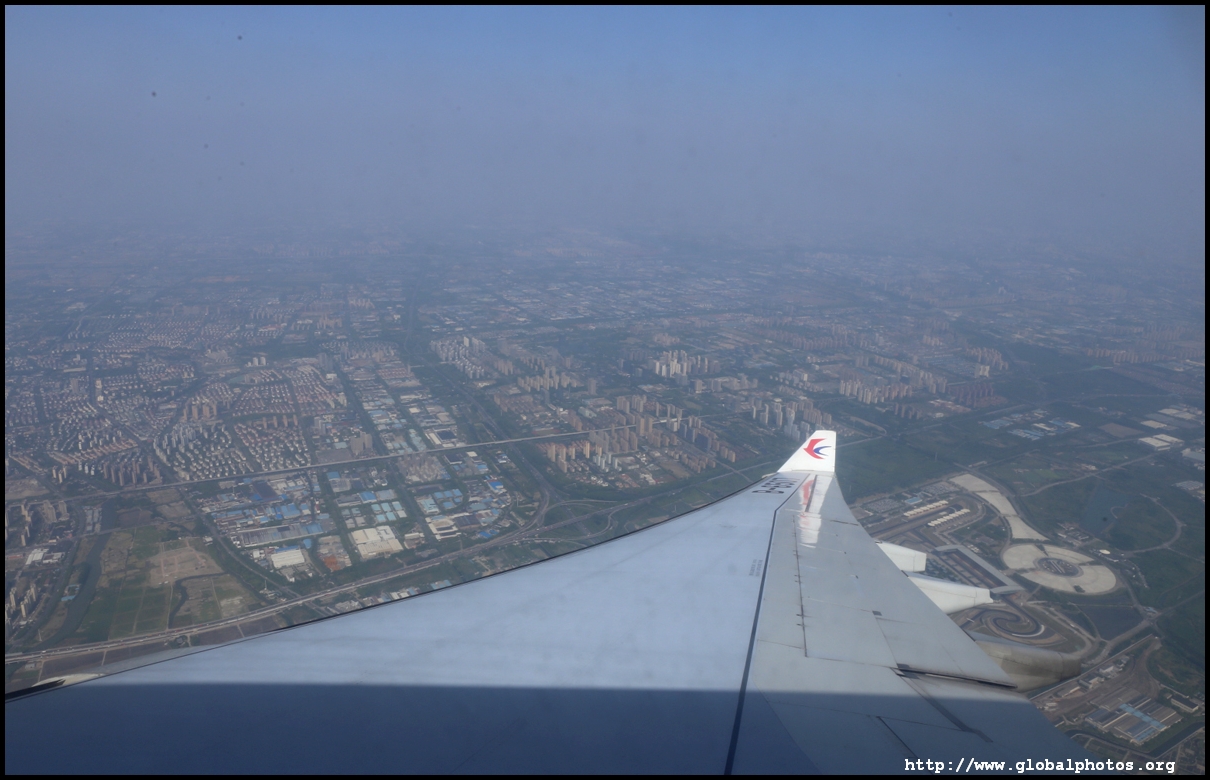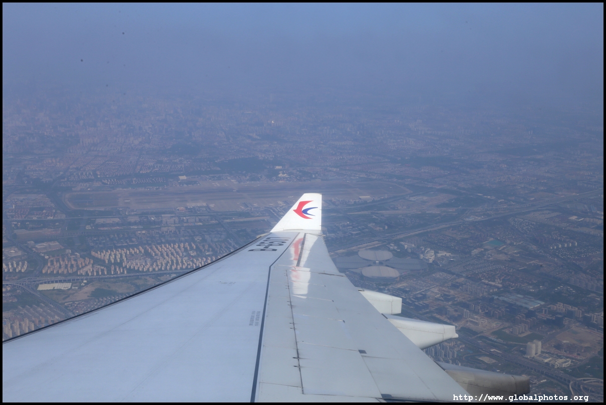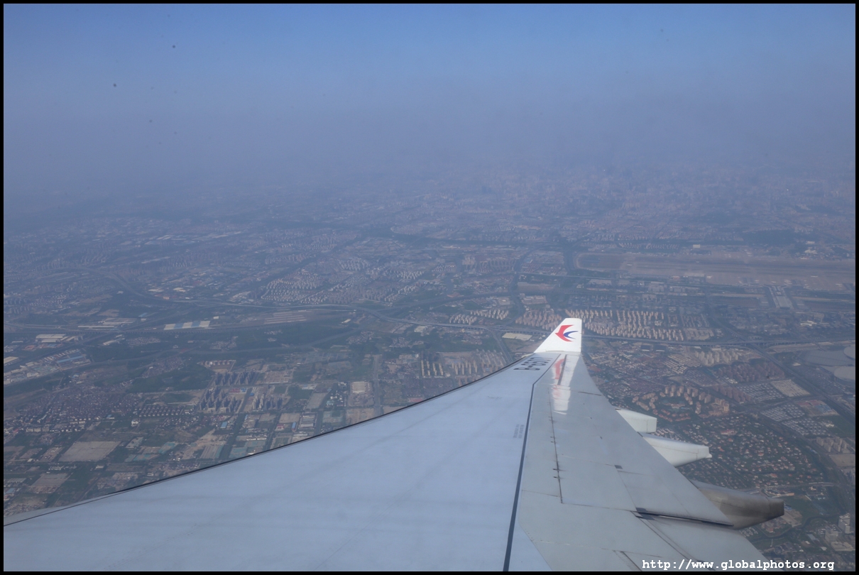 The skies were beautiful and the flight was smooth all the way to Shanghai. 2 short hours later, I was ready for a grand skyline view despite the wing in the way.