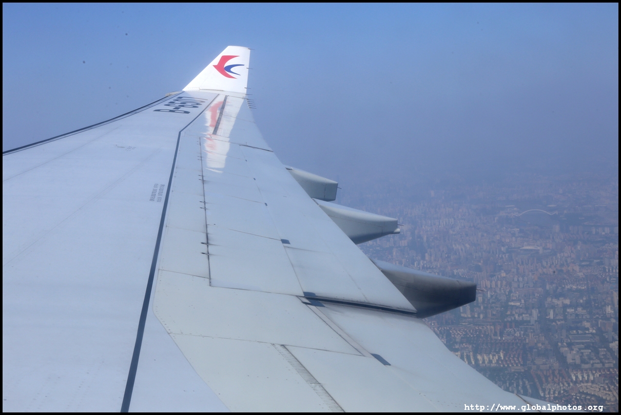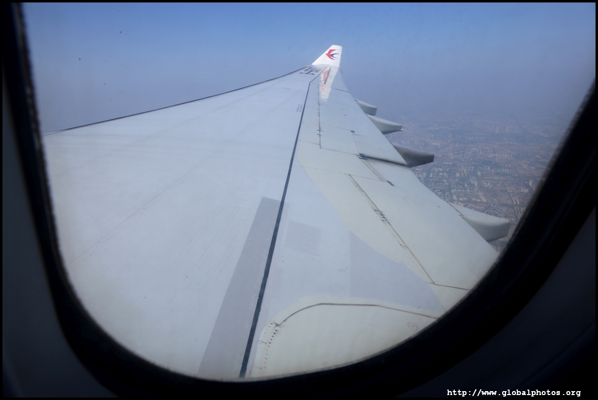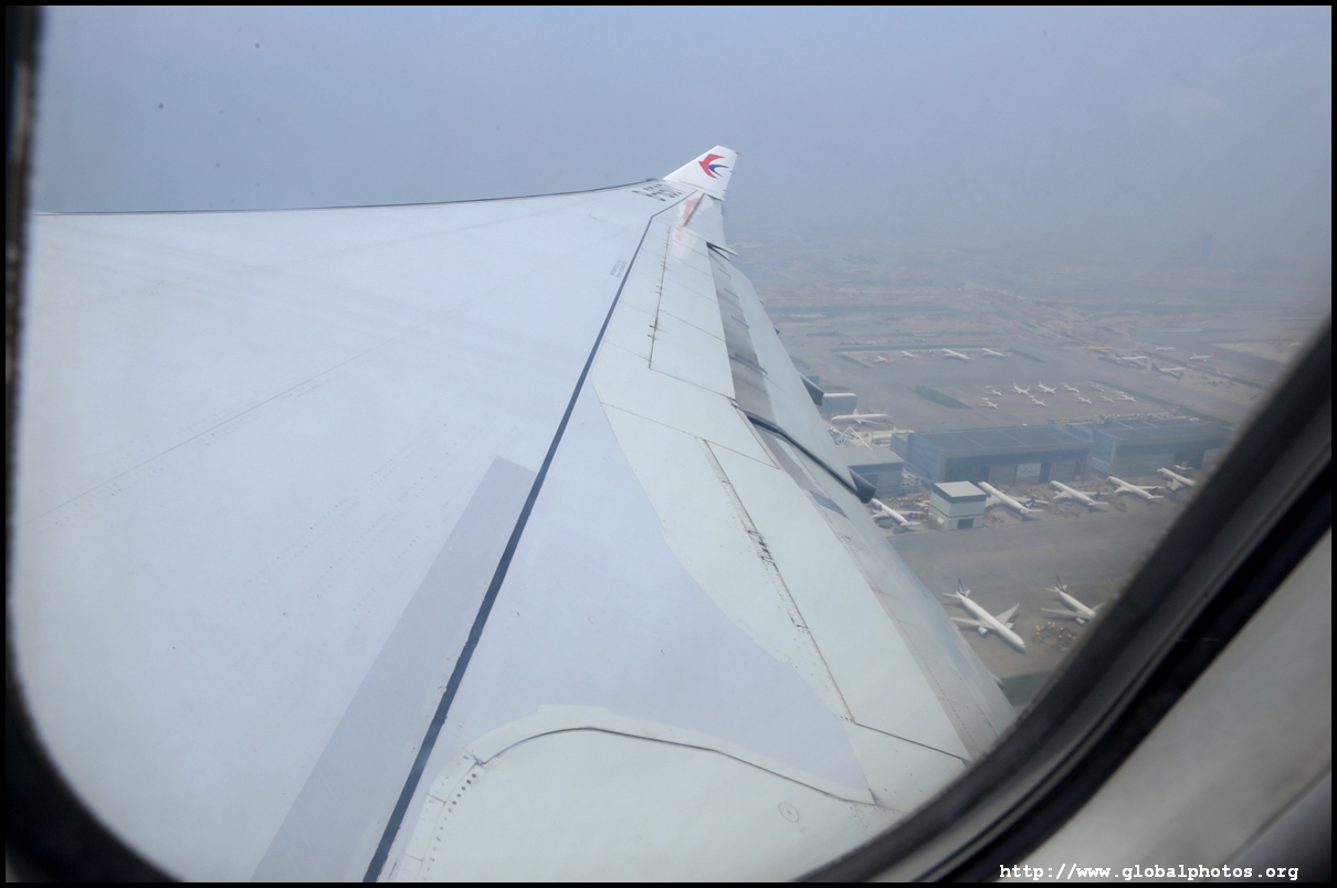 The skies were beautiful and the flight was smooth all the way to Shanghai. 2 short hours later, I was ready for a grand skyline view despite the wing in the way.