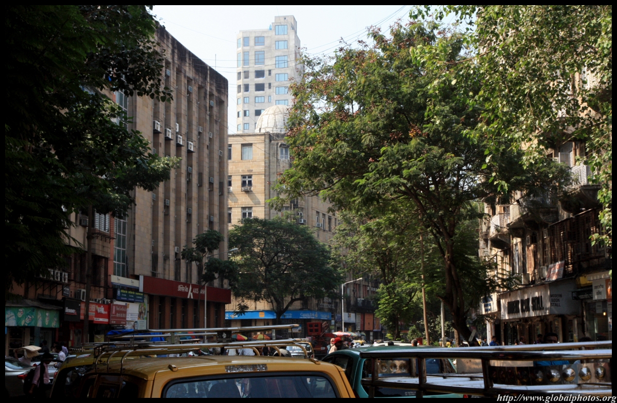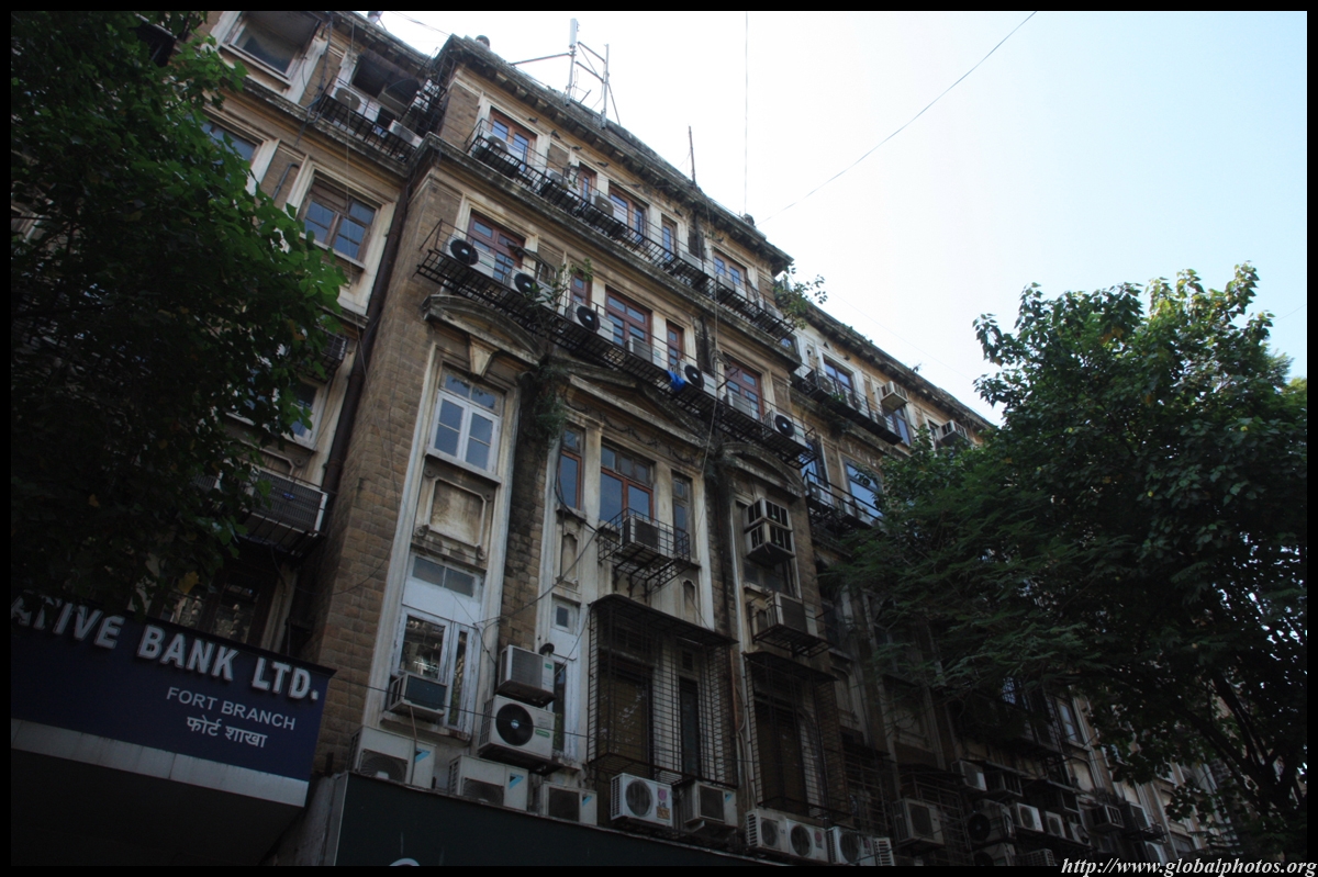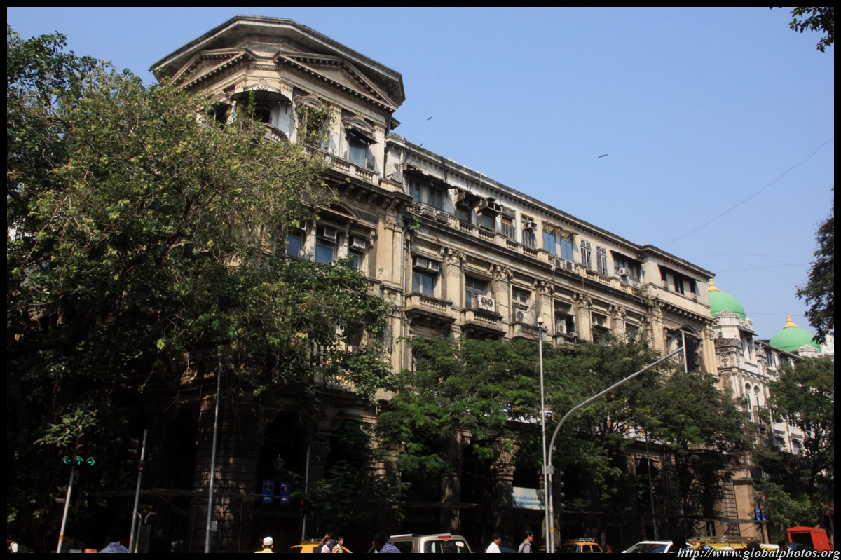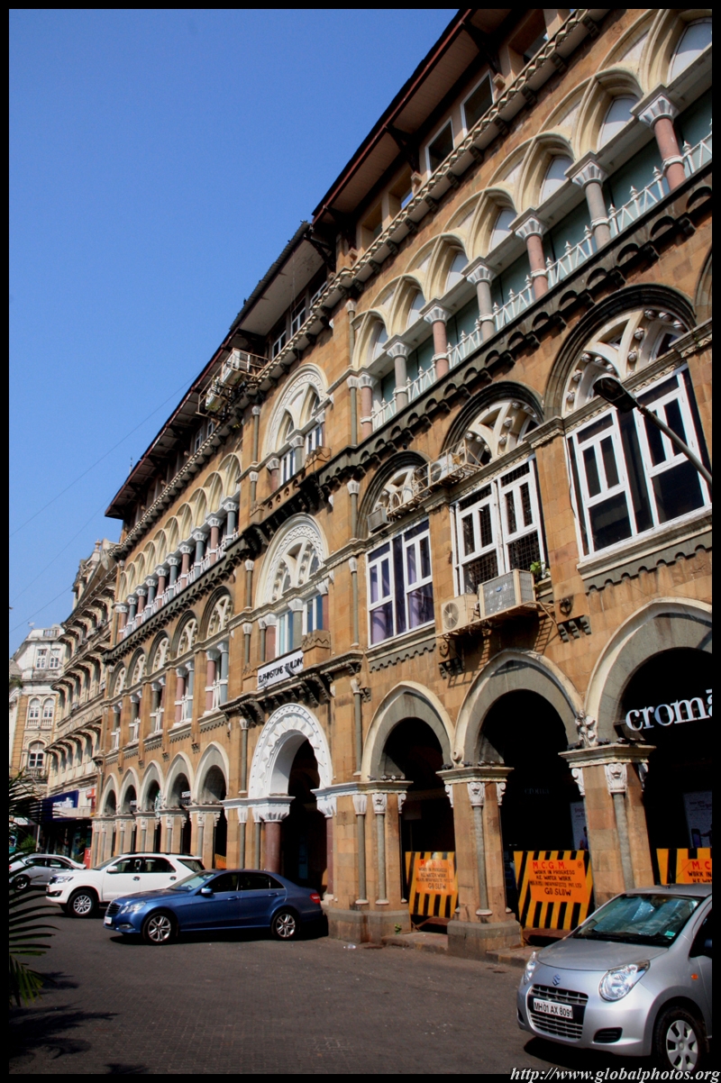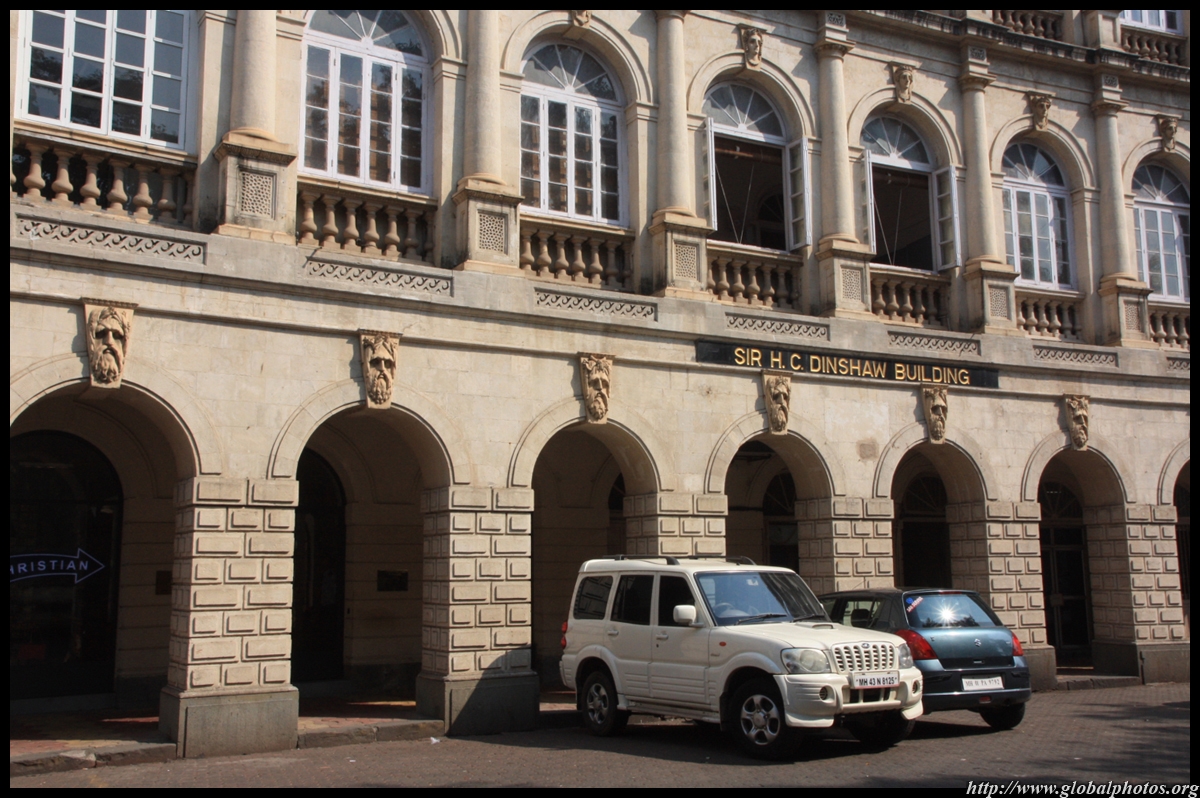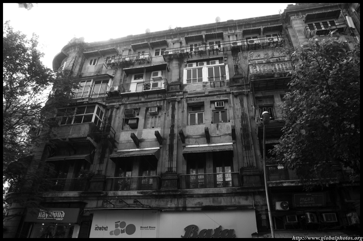 D Naoroji Road used to run parallel to the ramparts and was widened in 1865 to connect the public buildings near Flora Fountain with Victoria Terminus. On the western side of the street are well-laid-out buildings while the eastern side shows a more organic, chaotic side of the city. These buildings on the western side were built under strict design controls in 1896, with mandatory arcades and government approval of the designs.