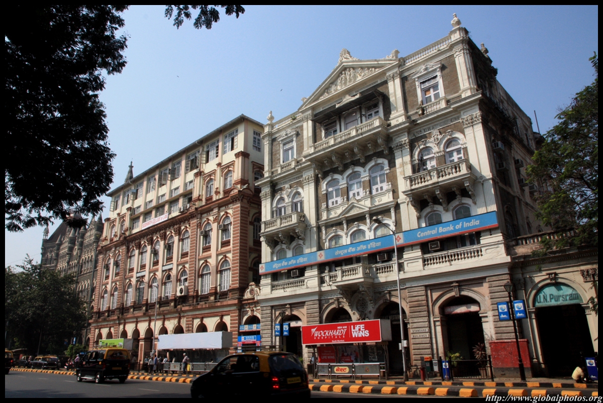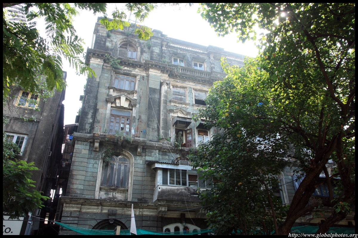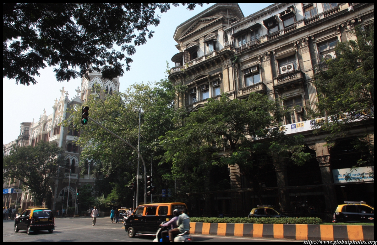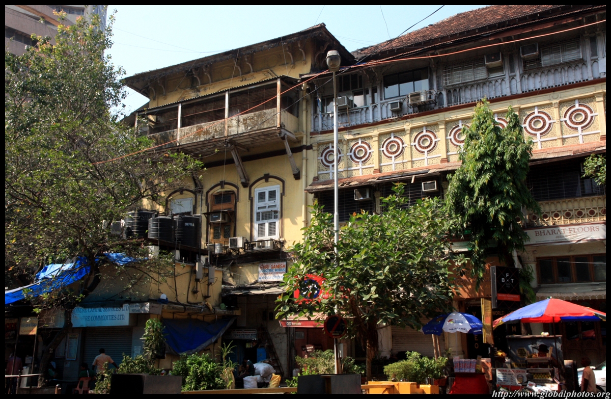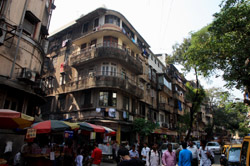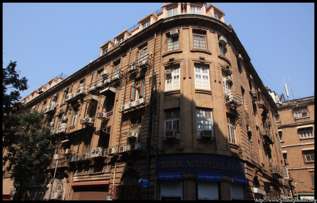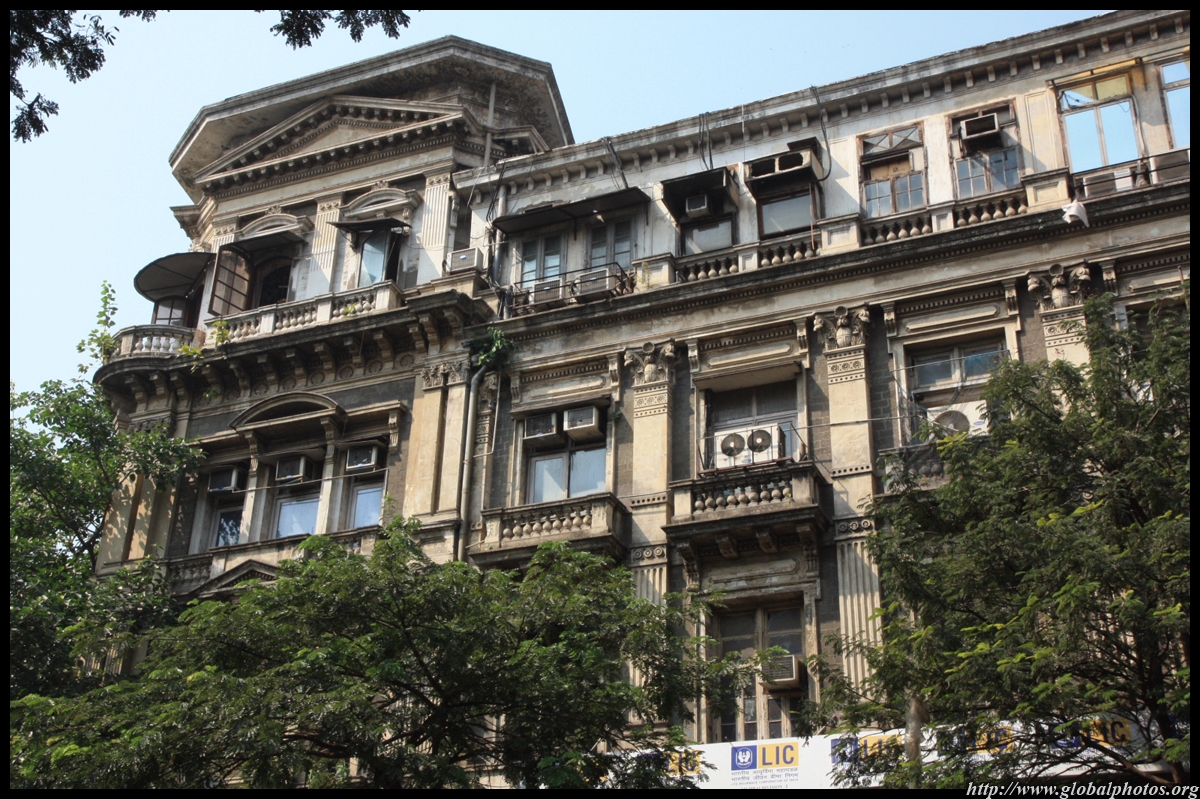 D Naoroji Road used to run parallel to the ramparts and was widened in 1865 to connect the public buildings near Flora Fountain with Victoria Terminus. On the western side of the street are well-laid-out buildings while the eastern side shows a more organic, chaotic side of the city. These buildings on the western side were built under strict design controls in 1896, with mandatory arcades and government approval of the designs.