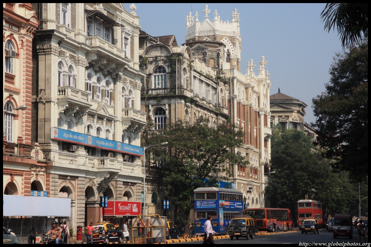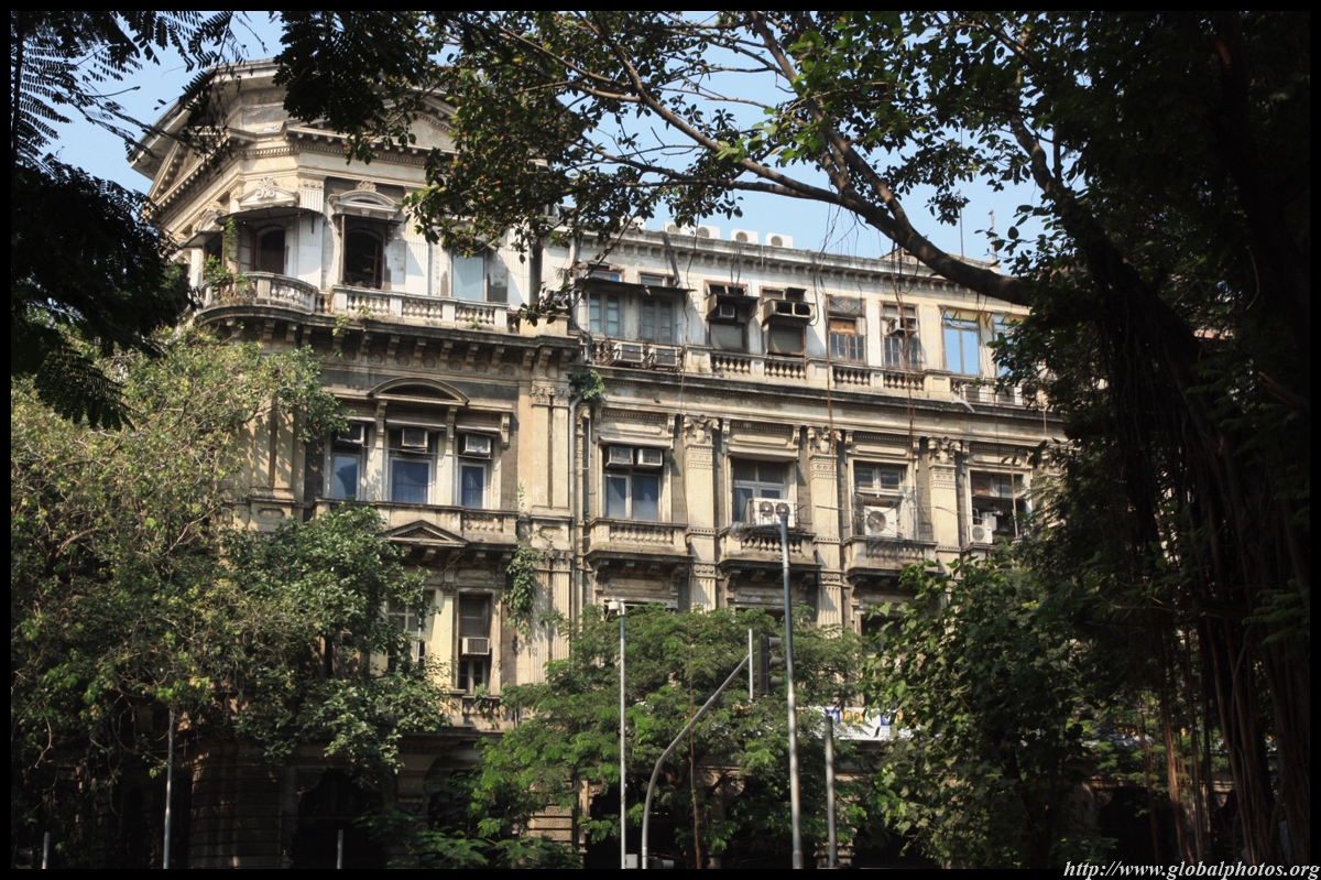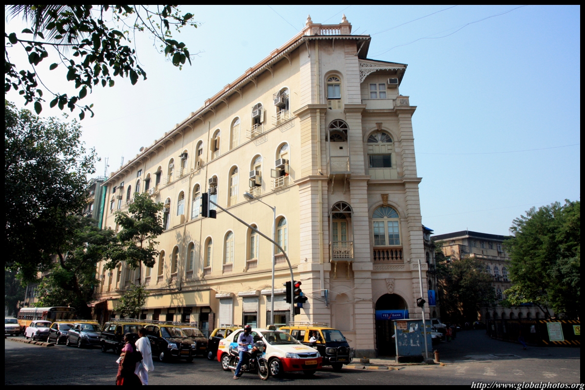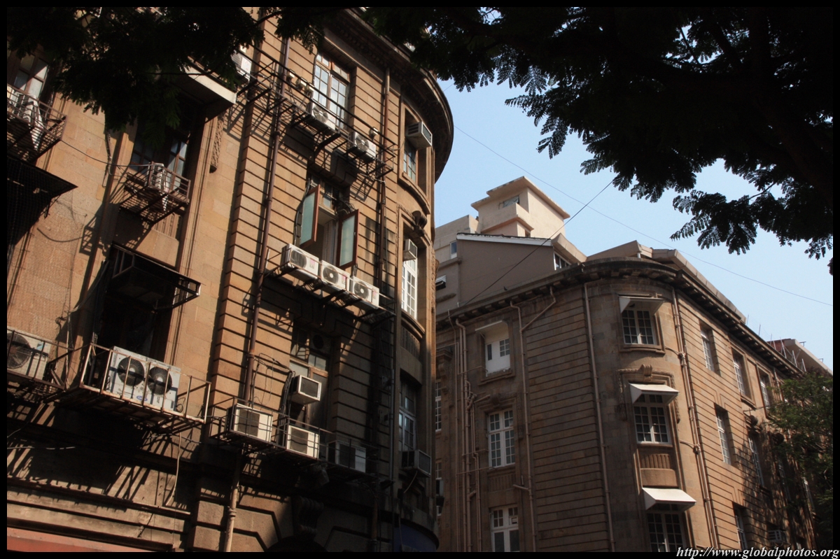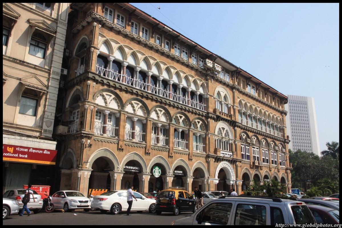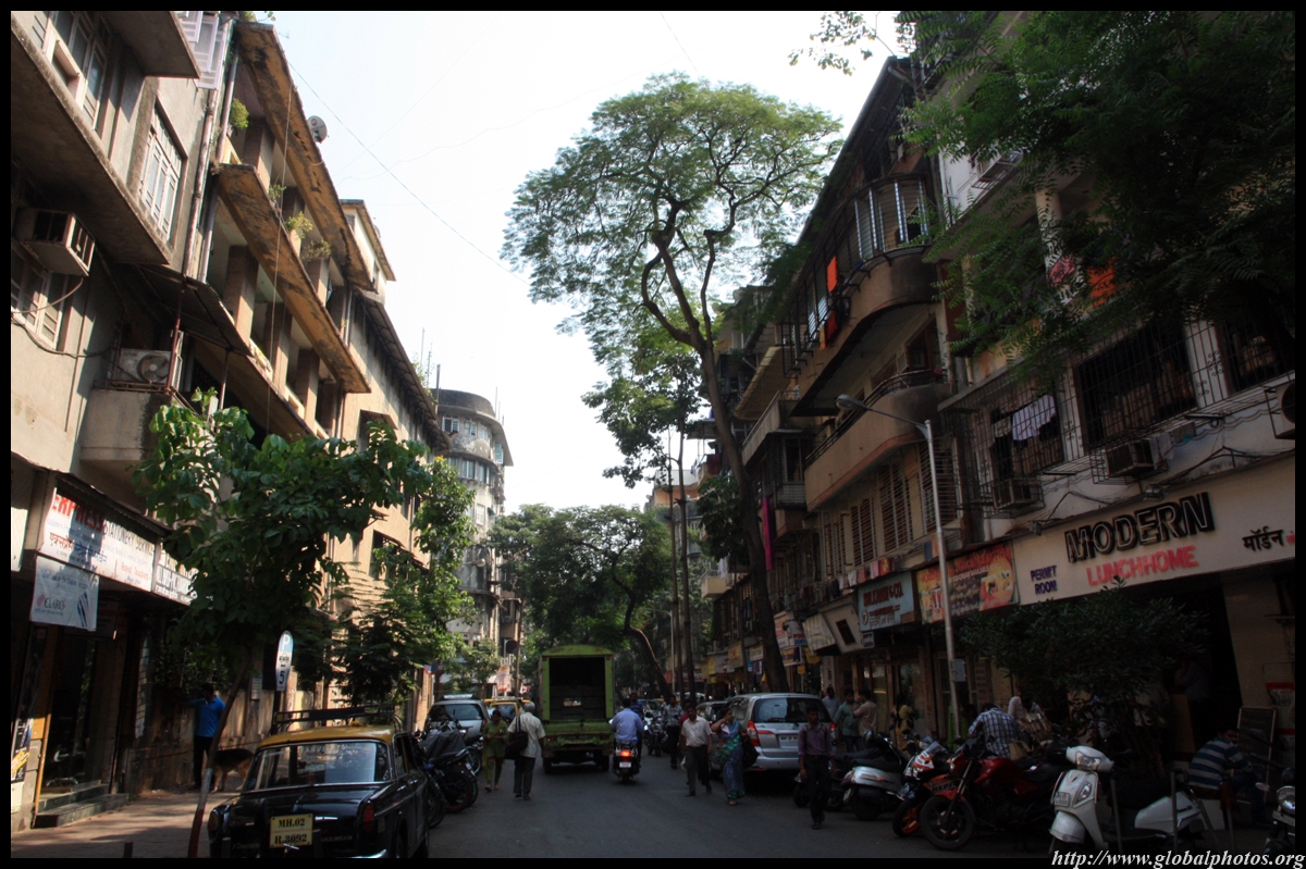 D Naoroji Road used to run parallel to the ramparts and was widened in 1865 to connect the public buildings near Flora Fountain with Victoria Terminus. On the western side of the street are well-laid-out buildings while the eastern side shows a more organic, chaotic side of the city. These buildings on the western side were built under strict design controls in 1896, with mandatory arcades and government approval of the designs.