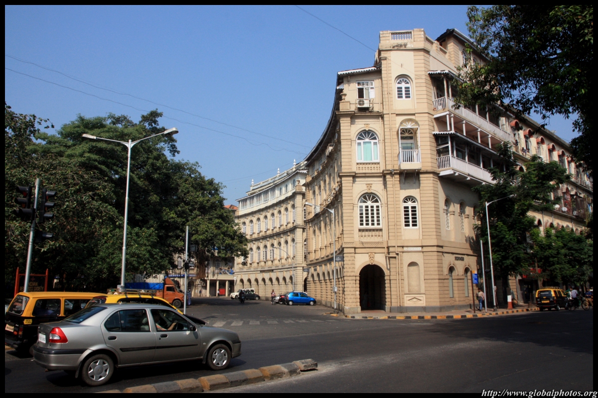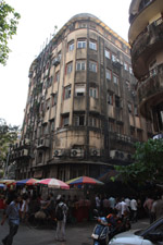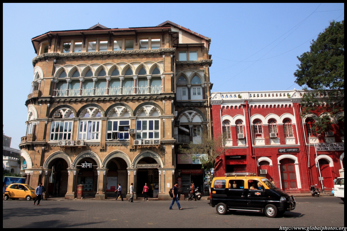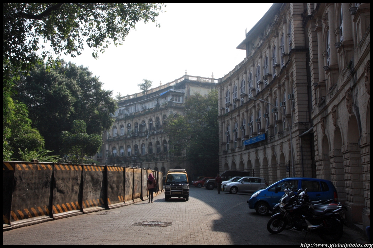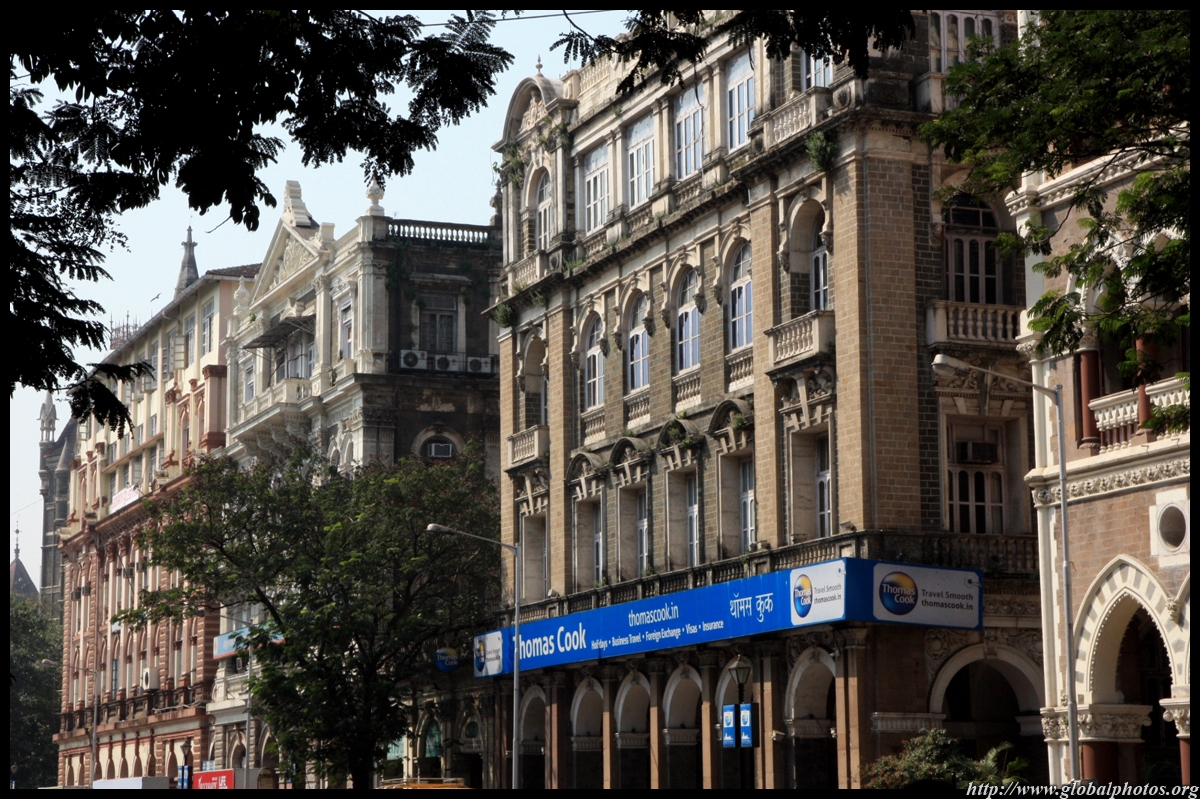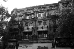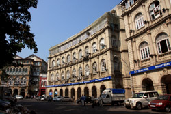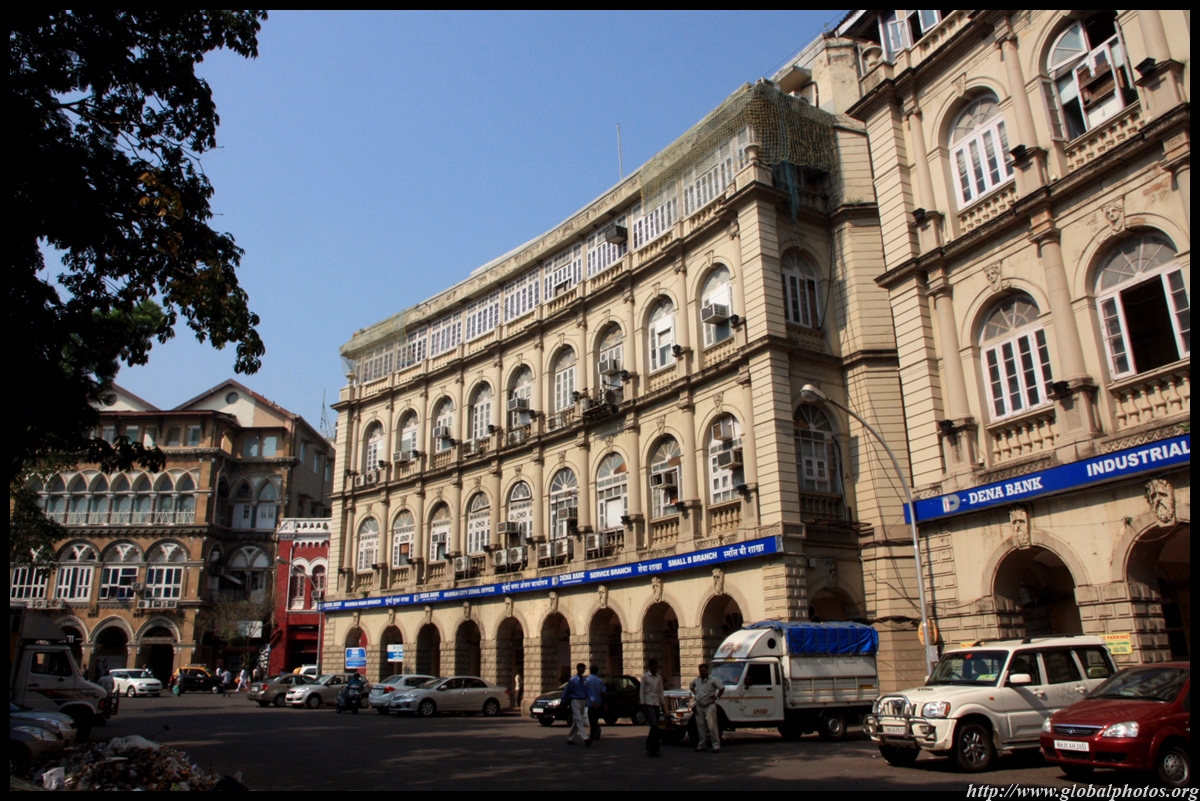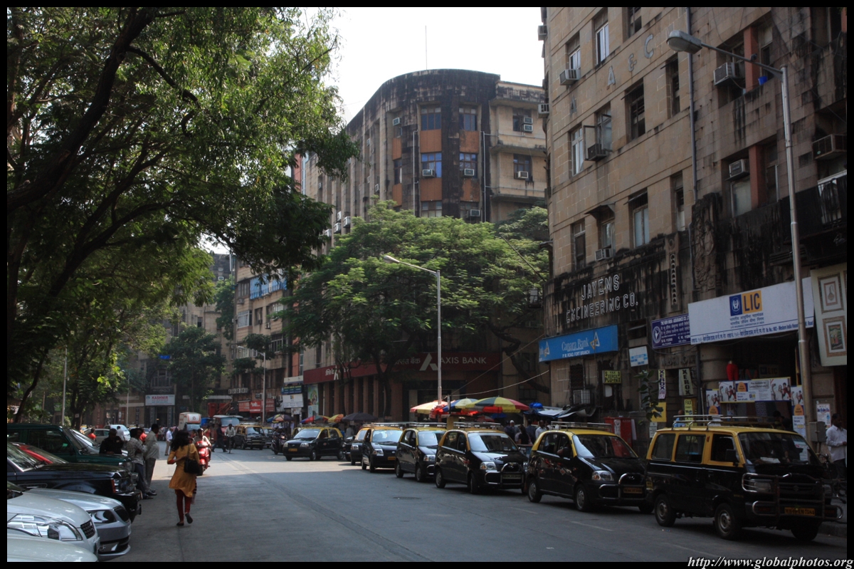 D Naoroji Road used to run parallel to the ramparts and was widened in 1865 to connect the public buildings near Flora Fountain with Victoria Terminus. On the western side of the street are well-laid-out buildings while the eastern side shows a more organic, chaotic side of the city. These buildings on the western side were built under strict design controls in 1896, with mandatory arcades and government approval of the designs.