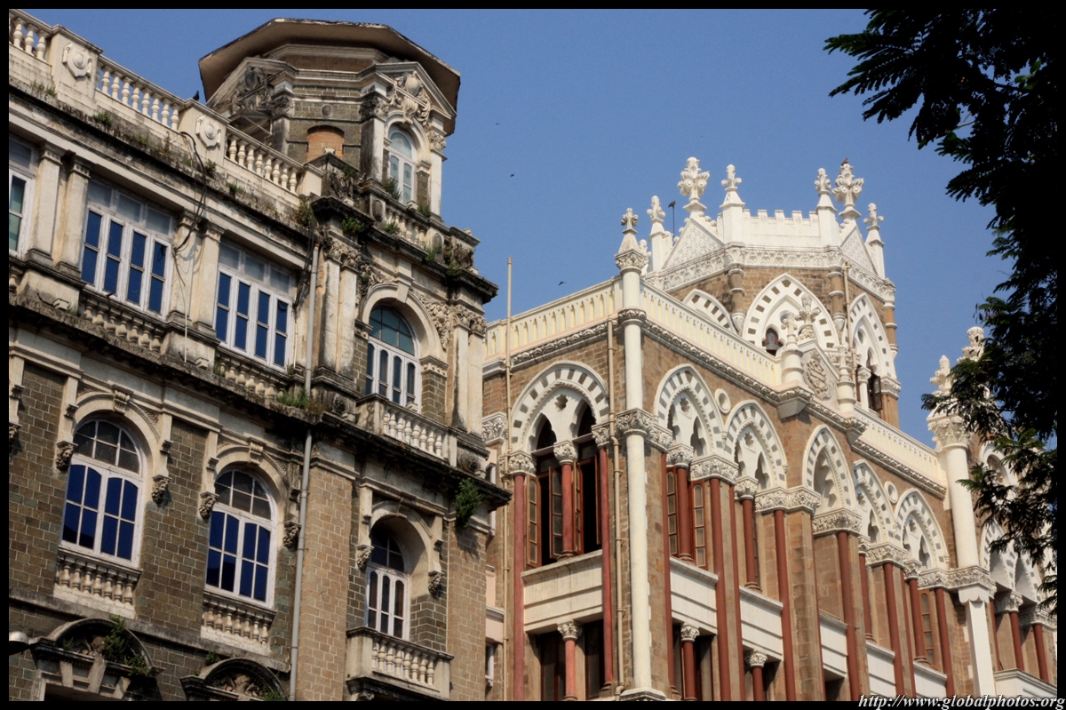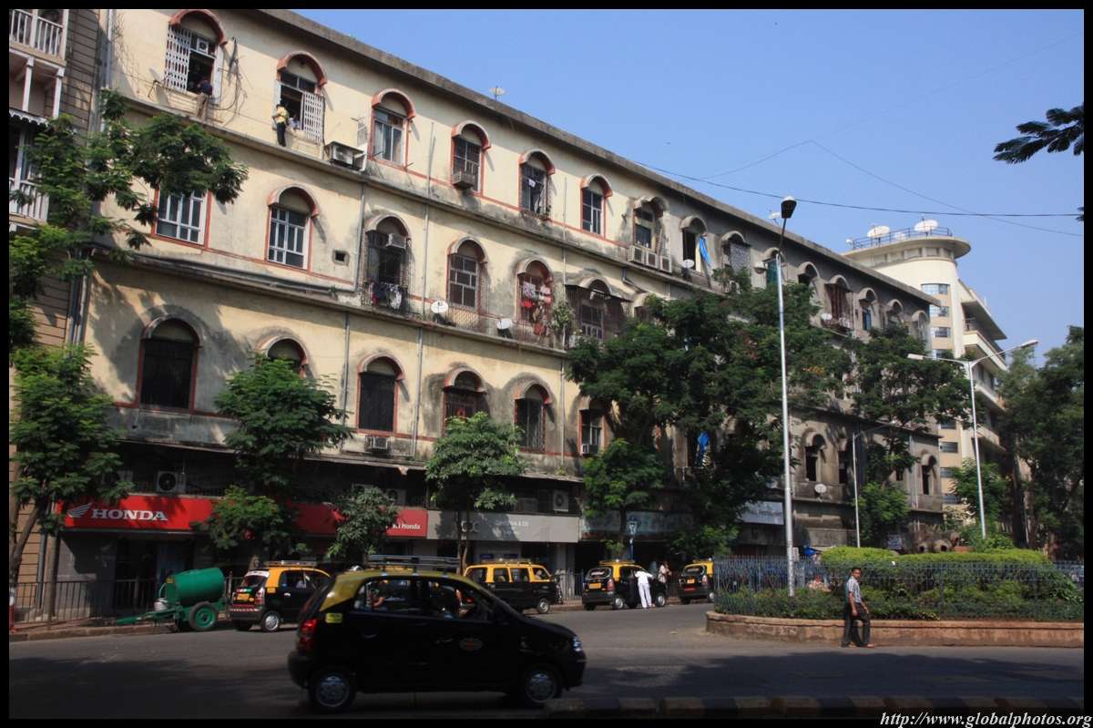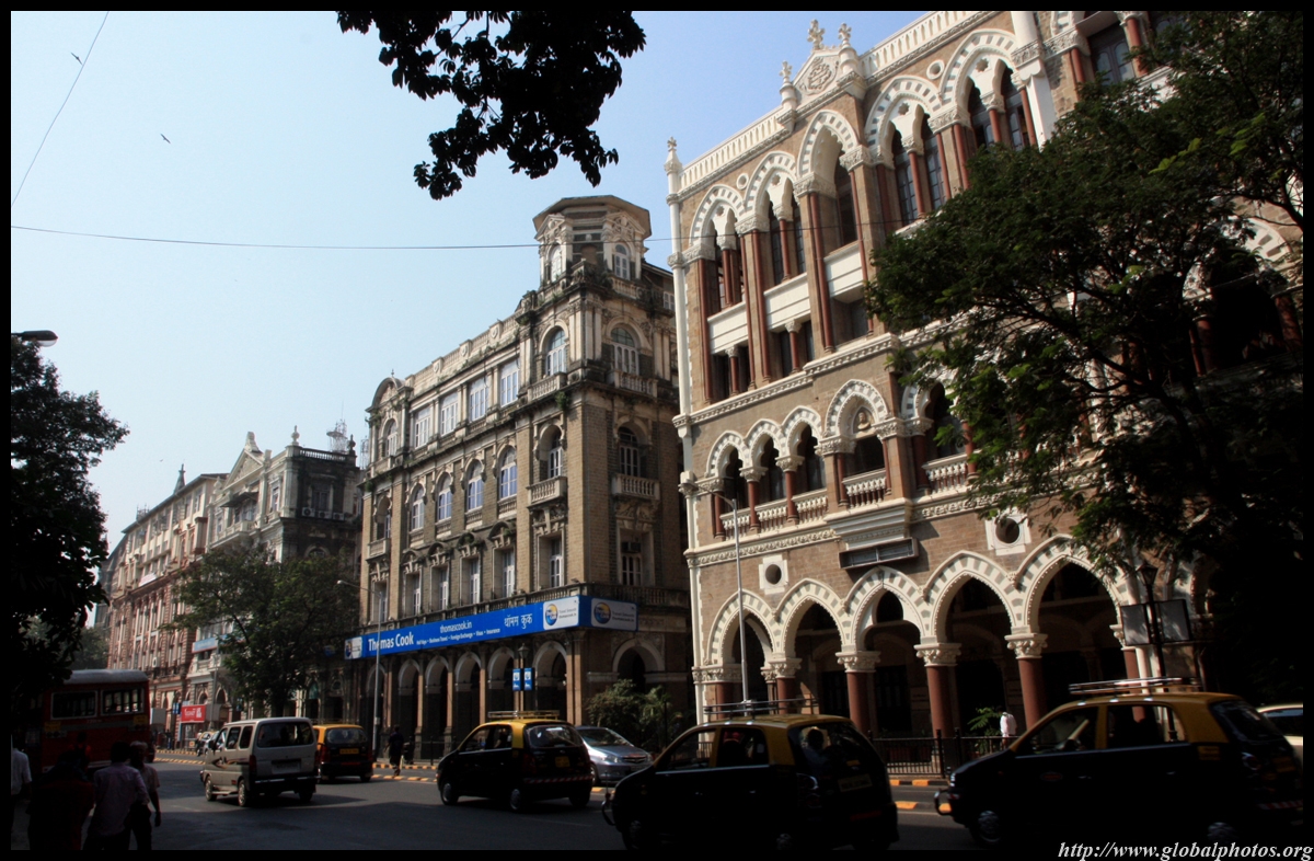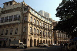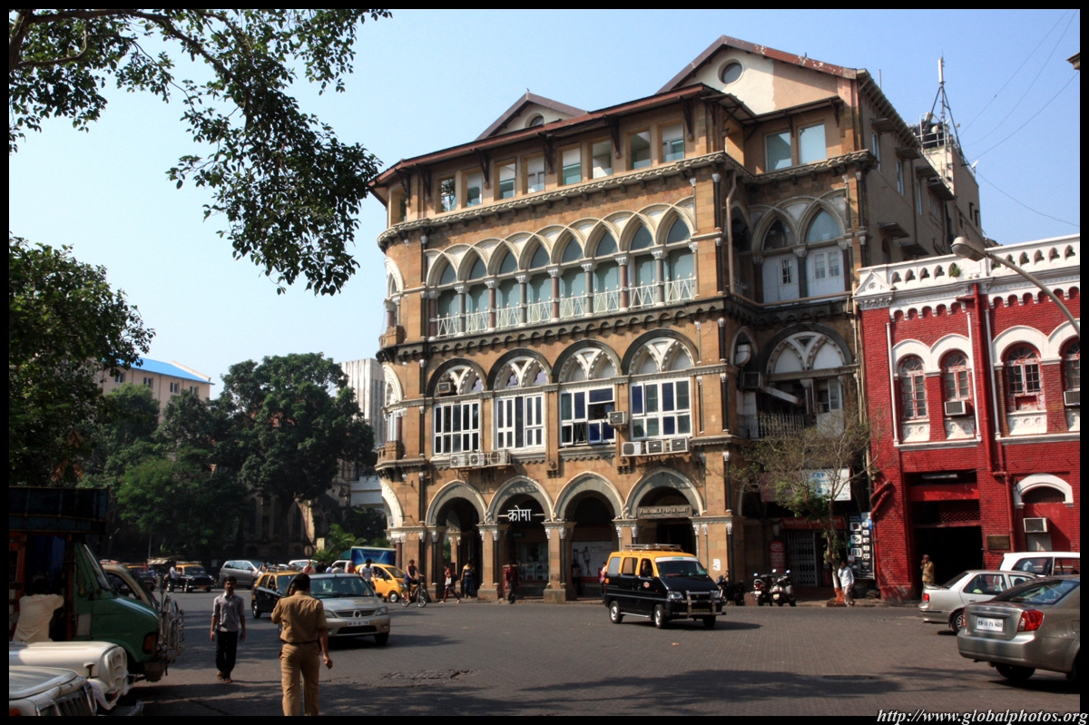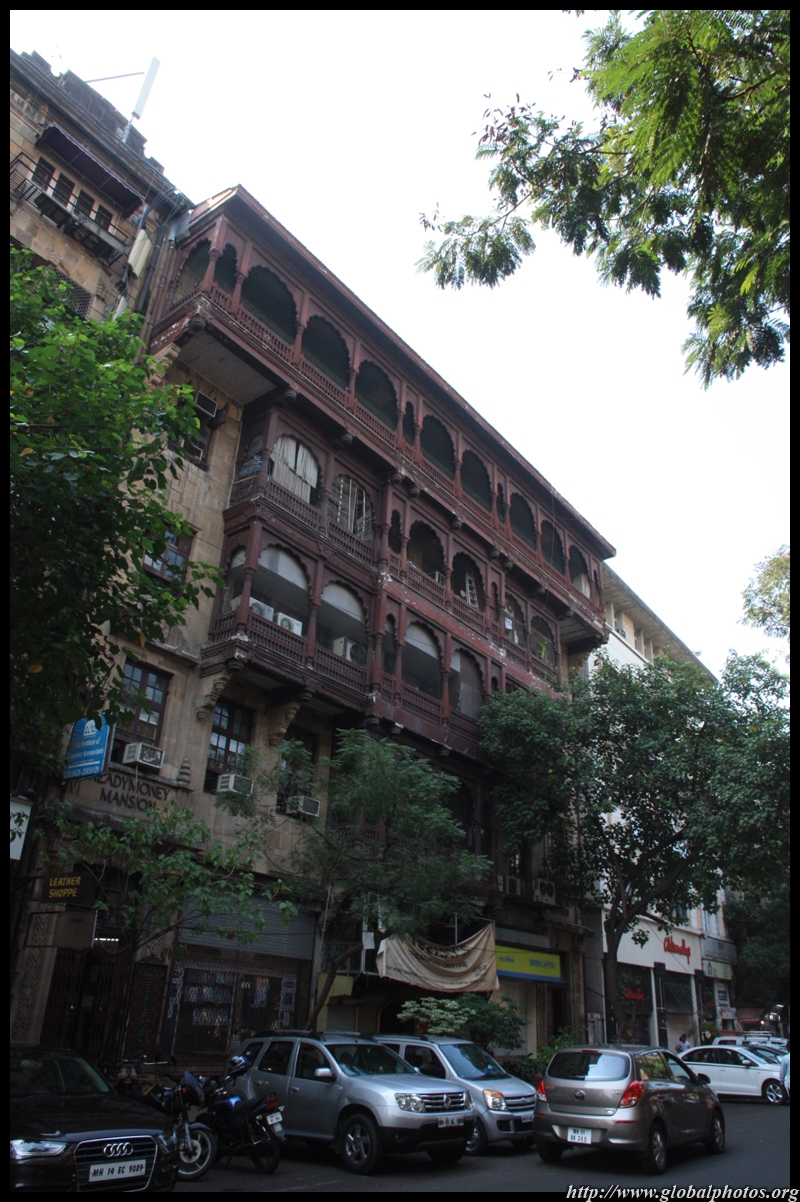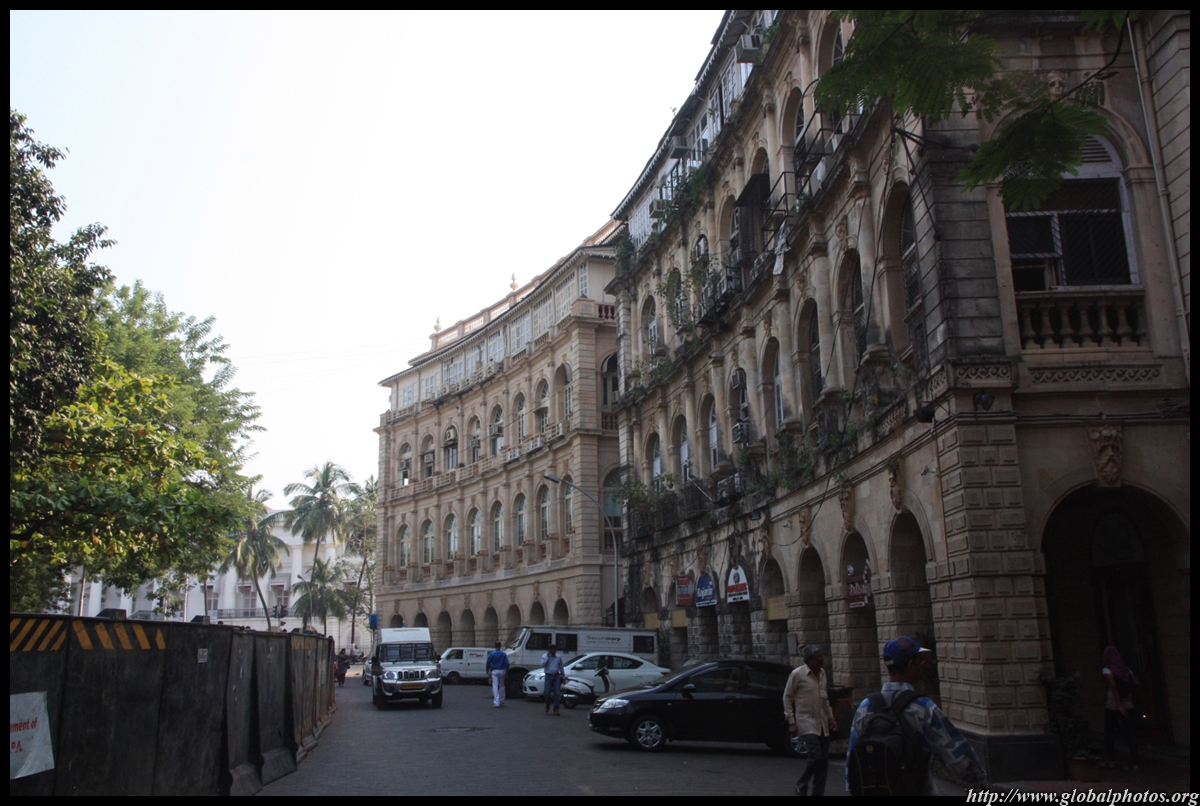 D Naoroji Road used to run parallel to the ramparts and was widened in 1865 to connect the public buildings near Flora Fountain with Victoria Terminus. On the western side of the street are well-laid-out buildings while the eastern side shows a more organic, chaotic side of the city. These buildings on the western side were built under strict design controls in 1896, with mandatory arcades and government approval of the designs.