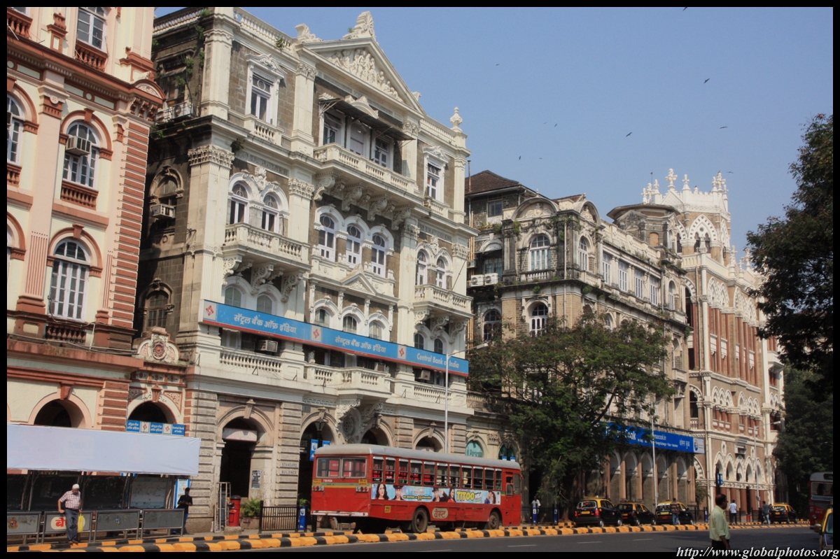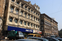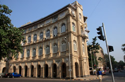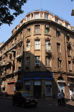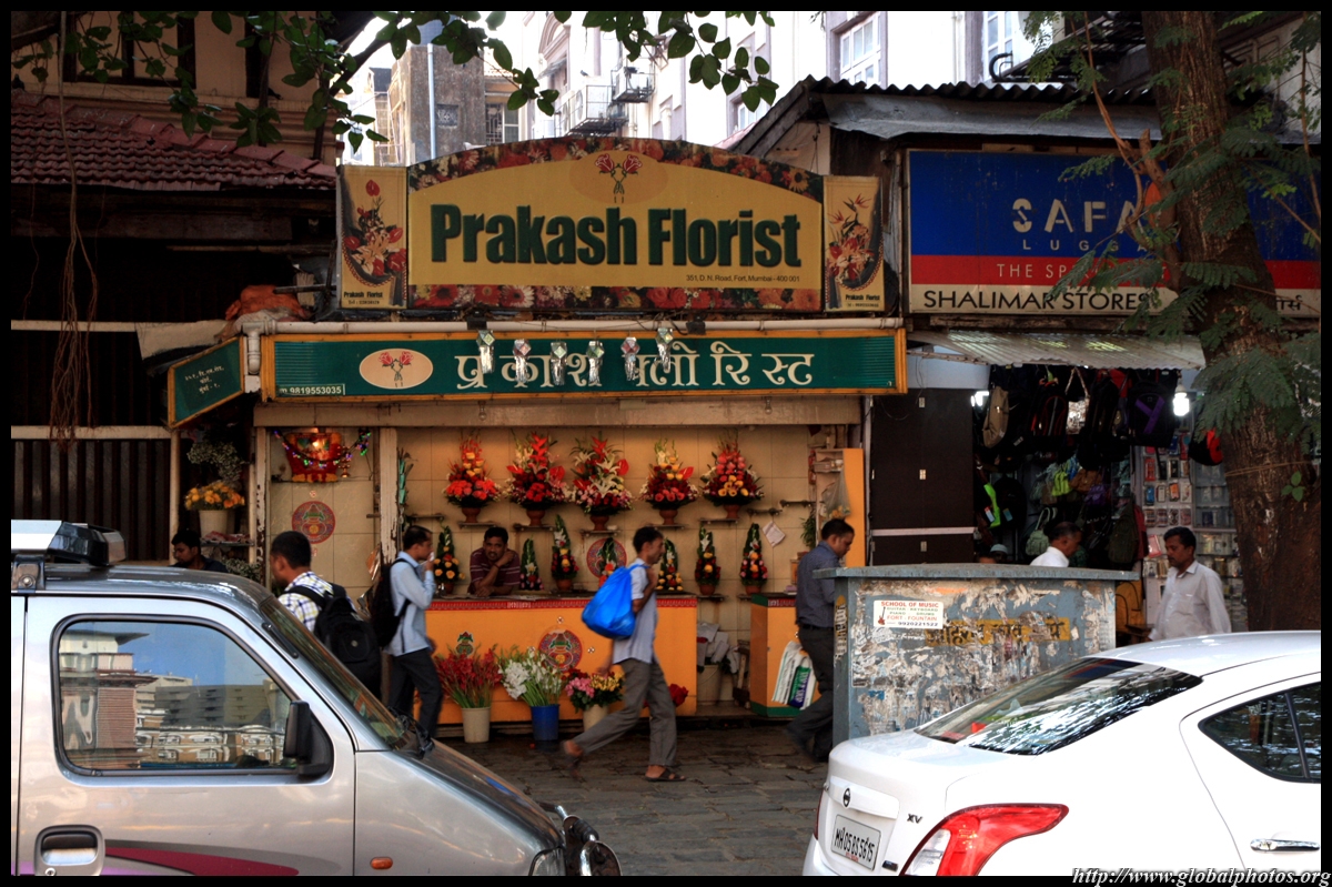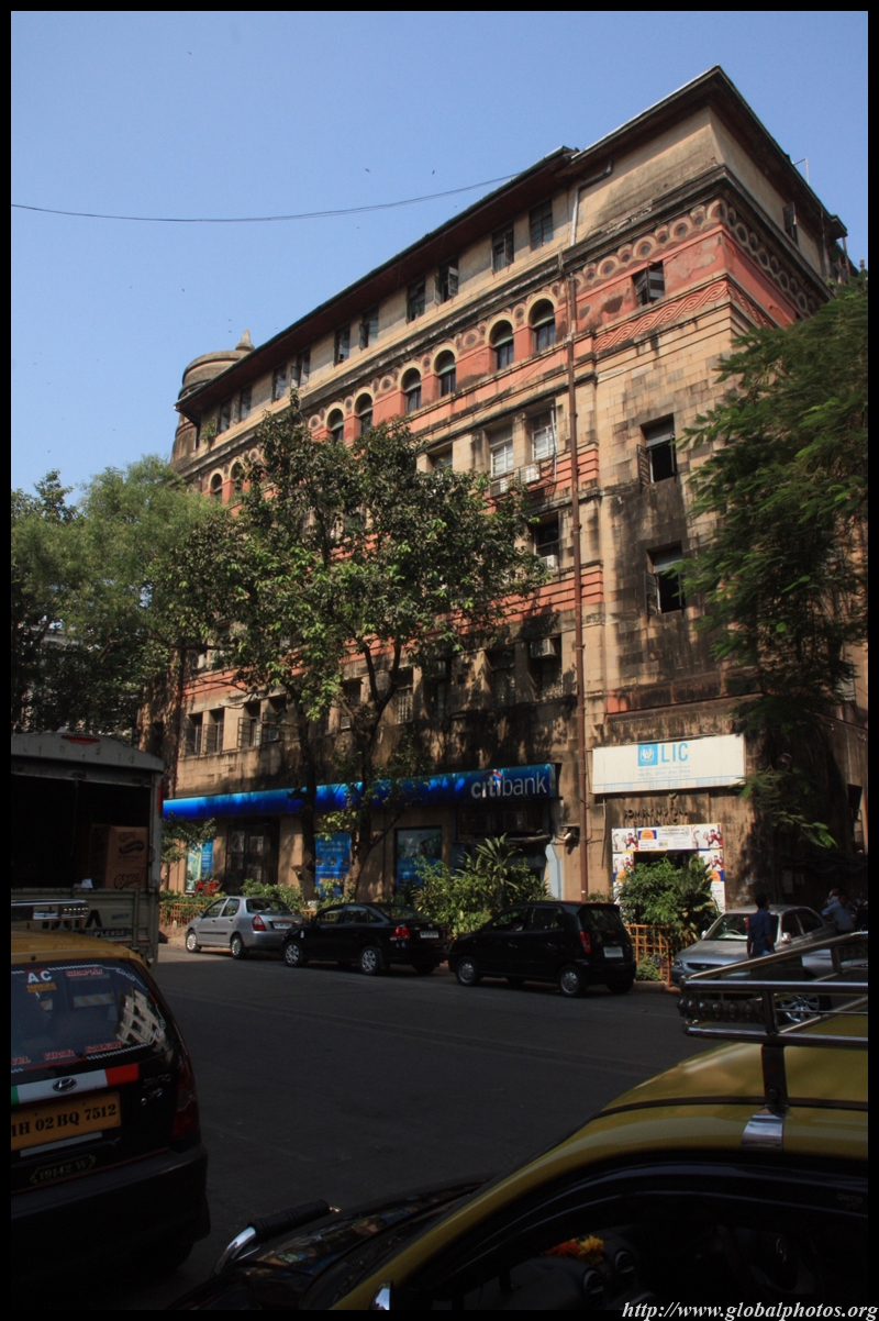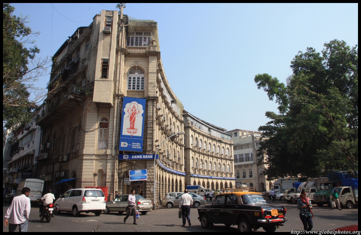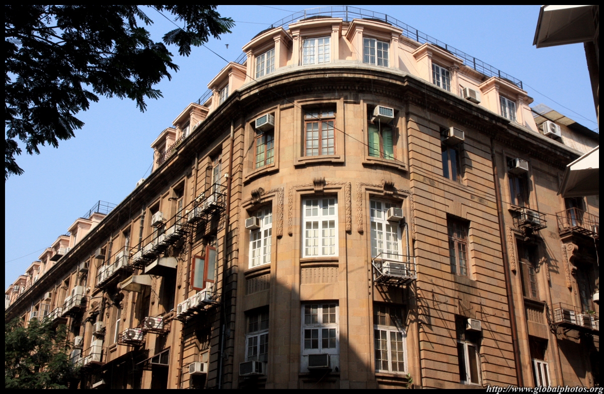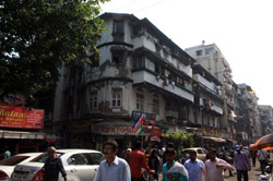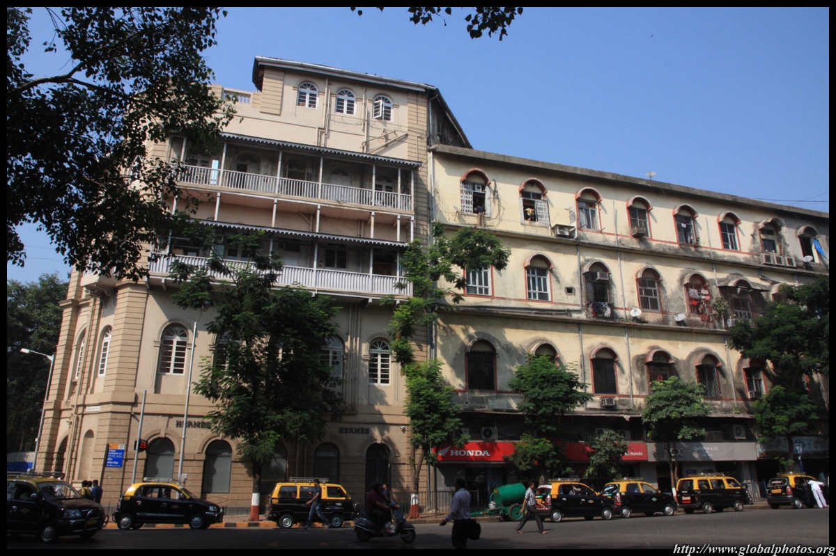 D Naoroji Road used to run parallel to the ramparts and was widened in 1865 to connect the public buildings near Flora Fountain with Victoria Terminus. On the western side of the street are well-laid-out buildings while the eastern side shows a more organic, chaotic side of the city. These buildings on the western side were built under strict design controls in 1896, with mandatory arcades and government approval of the designs.