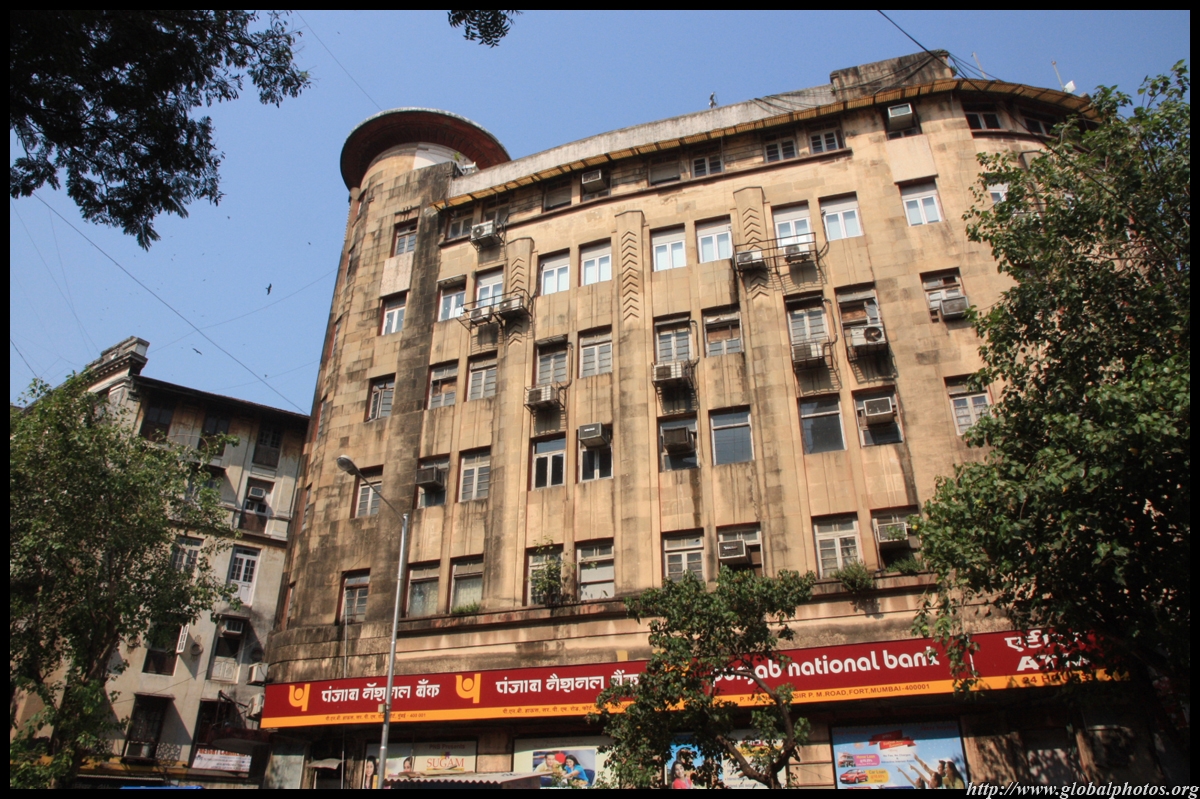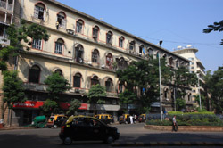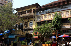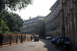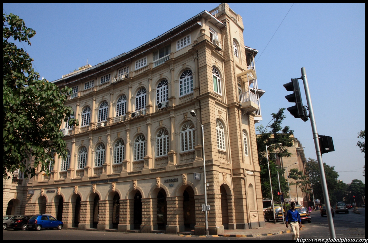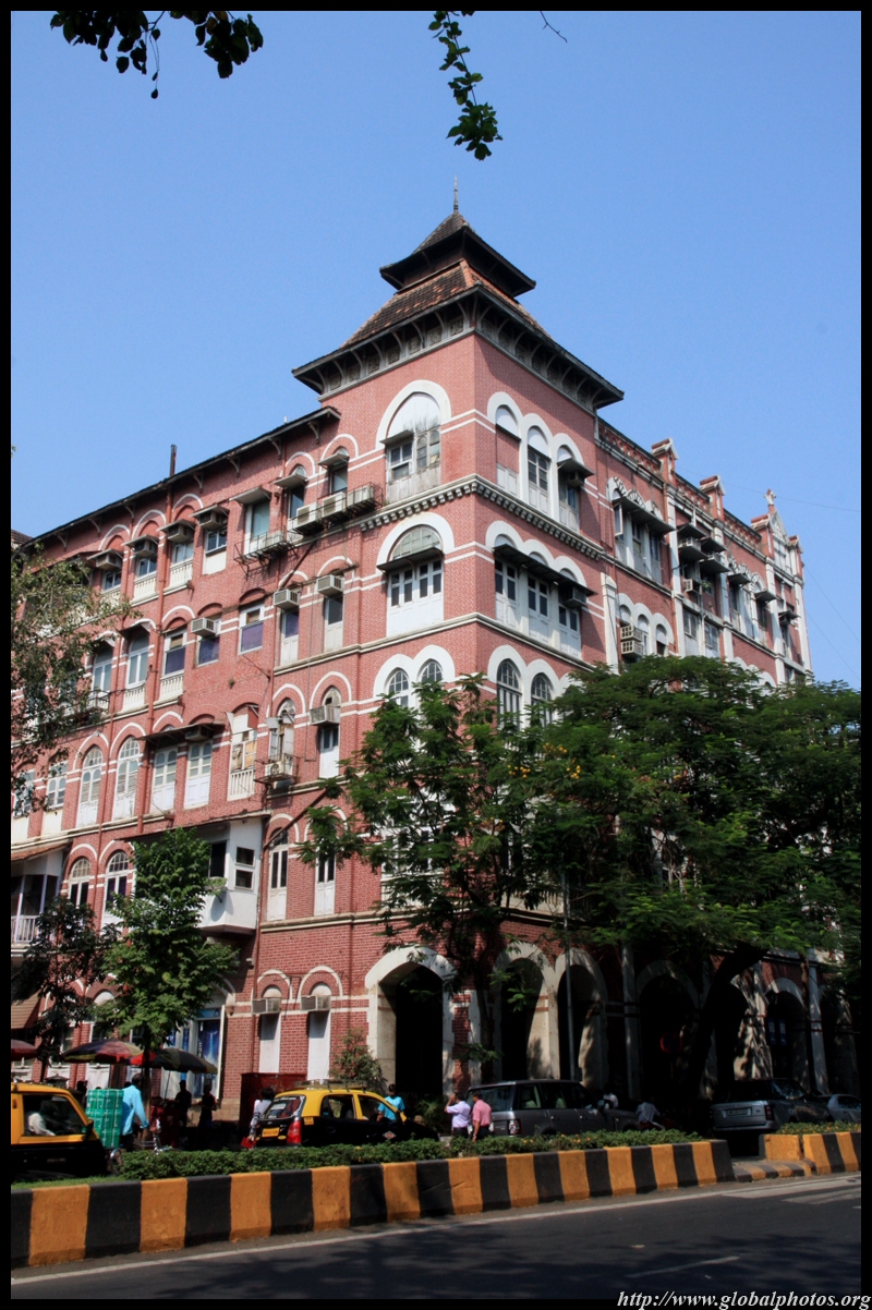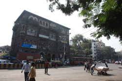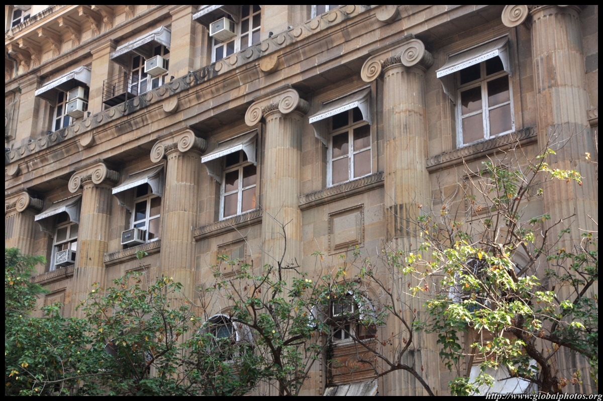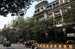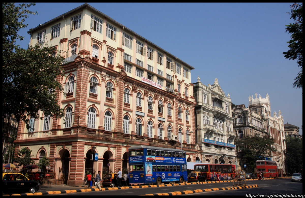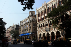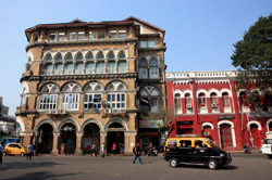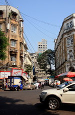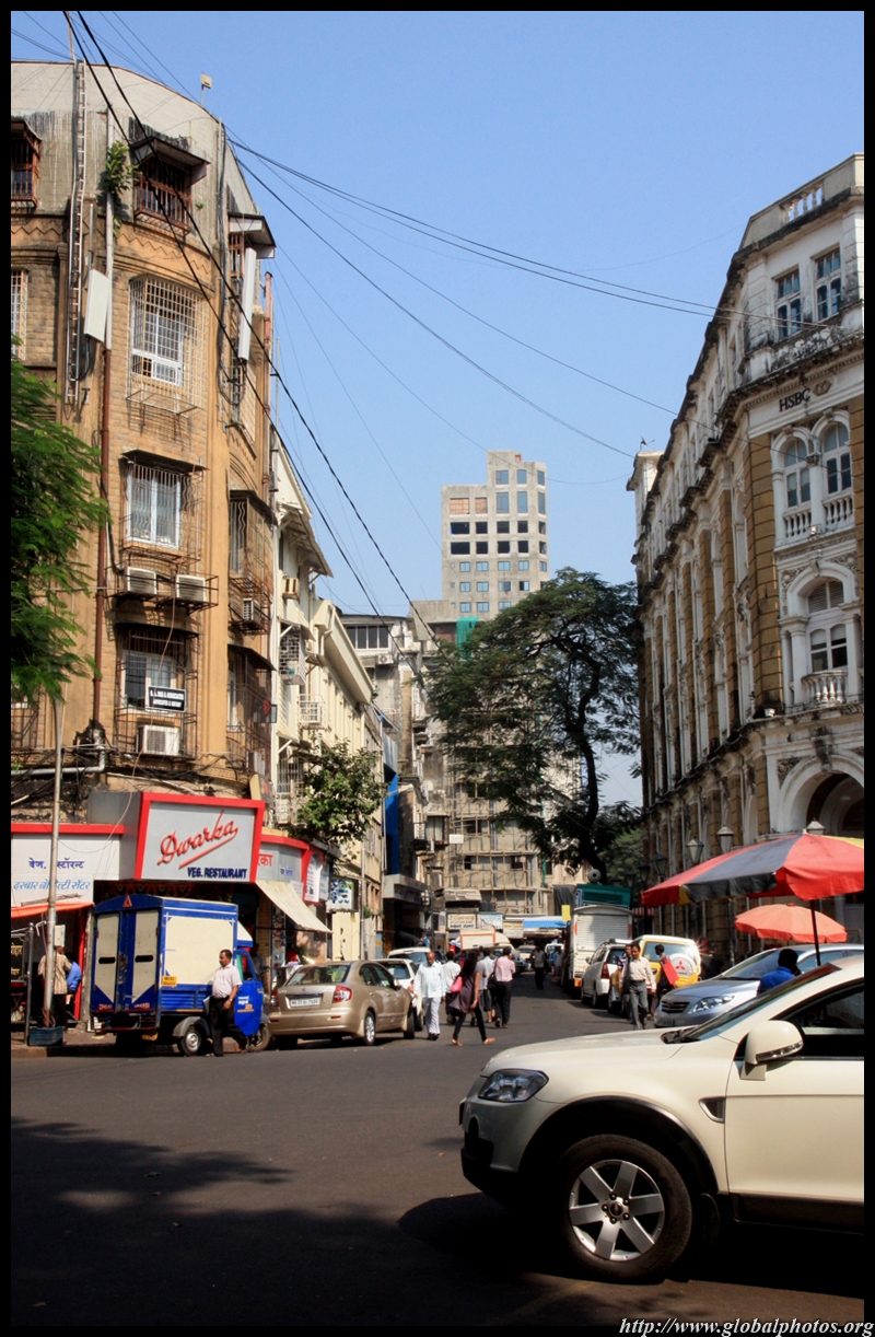 D Naoroji Road used to run parallel to the ramparts and was widened in 1865 to connect the public buildings near Flora Fountain with Victoria Terminus. On the western side of the street are well-laid-out buildings while the eastern side shows a more organic, chaotic side of the city. These buildings on the western side were built under strict design controls in 1896, with mandatory arcades and government approval of the designs.